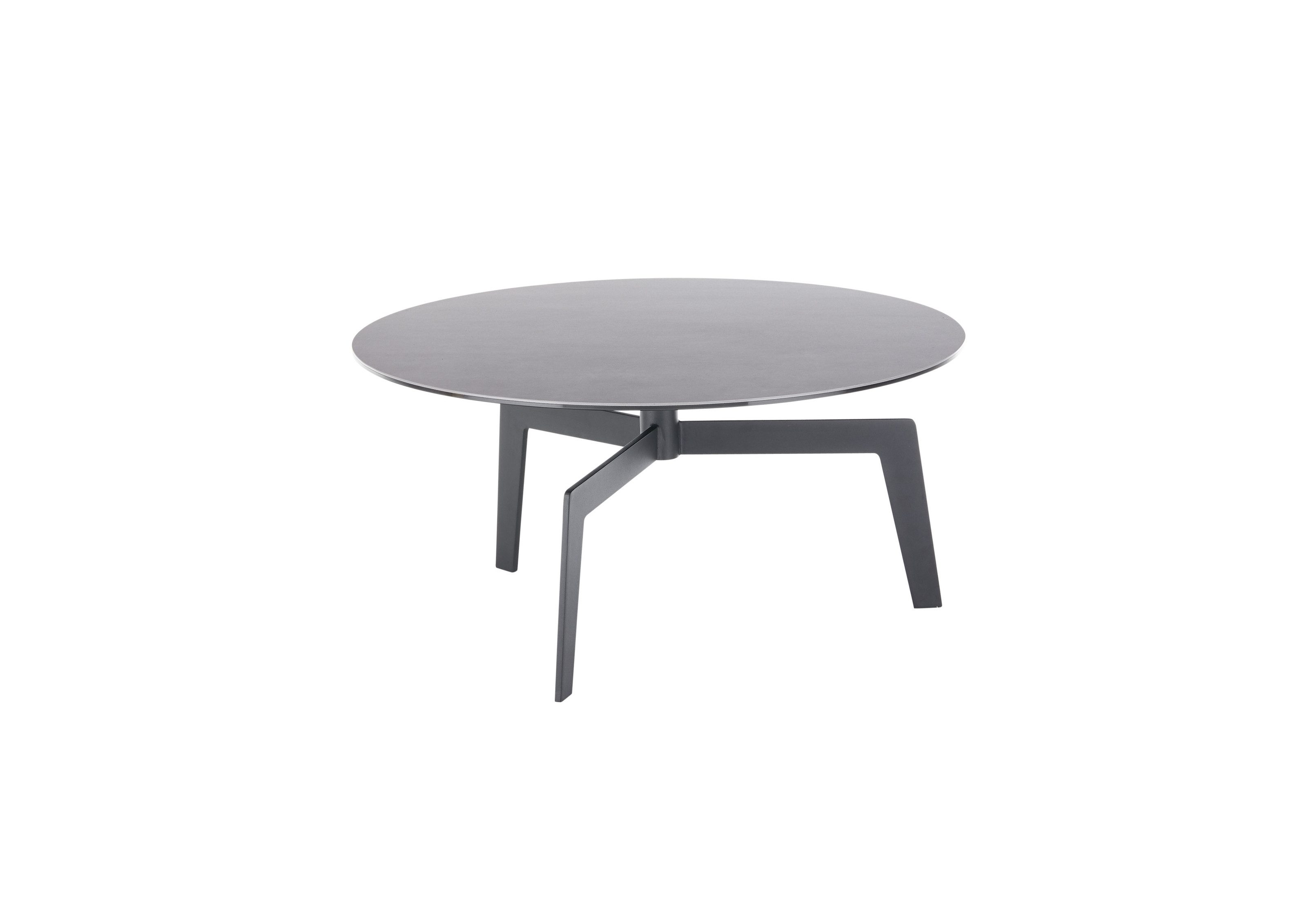 rund Top / Platte Keramik anthrazit auf Sicherheitsglas Gestell Metall schwarz matt pulverbeschichtet Deckplatte belastbar bis 10 kg