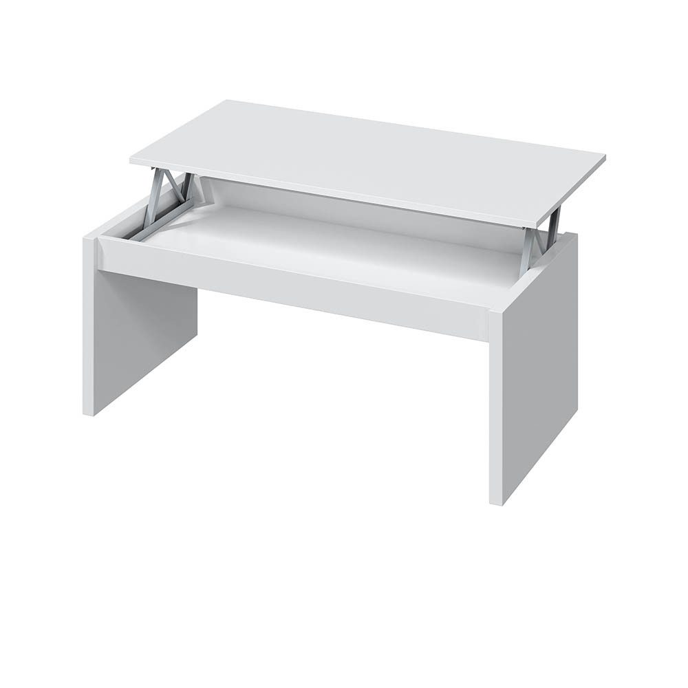 Verleihen Sie Ihrem Wohnzimmer mit dem Coffee Table einen Hauch zeitgemäßer Eleganz. Mit seinen Maßen von 102 cm Breite, 43 cm Höhe und 50 cm Tiefe bietet dieser Tisch die perfekte Kombination aus Stil und Funktionalität. Hergestellt in Spanien aus hochwertigem Holzwerkstoff und melaminbeschichtetem Material, garantiert der Couchtisch eine lange Lebensdauer und einfache Pflege. Seine weiße Glanzfarbe verleiht jedem Raum eine helle und moderne Atmosphäre. Der Lieferzustand ist zerlegt, aber dank der beiliegenden Aufbauanleitung und der einfachen Selbstmontage ist die Einrichtung ein Kinderspiel. Zusätzlich zur manuellen Höhenverstellung, die eine maximale Höhe von 54 cm ermöglicht, bietet der Coffee Table ein praktisches Ablagefach im Inneren des Tisches. Mit Abmessungen von 6 cm Höhe, 96 cm Breite und 44 cm Tiefe ist genügend Platz für Zeitschriften, Fernbedienungen oder andere Wohnaccessoires vorhanden. Dieser moderne Couchtisch ist nicht nur ästhetisch ansprechend, sondern auch funktional. Mit einer maximalen Belastbarkeit von 30 kg eignet er sich ideal für Bücher, Dekorationen oder sogar als zusätzliche Sitzgelegenheit. Die besondere Merkmale des Gehäuses ermöglichen zudem eine maximale Belastbarkeit im offenen Zustand von 5 kg, was zusätzliche Flexibilität bietet. Der Coffee Table ist die perfekte Ergänzung für jedes Wohnzimmer, das nach einem stilvollen und praktischen Möbelstück sucht. Entdecken Sie die vielseitigen Einsatzmöglichkeiten und bringen Sie mit diesem zeitgemäßen Design neuen Schwung in Ihr Zuhause. (Dekoobjekte nicht inbegriffen)