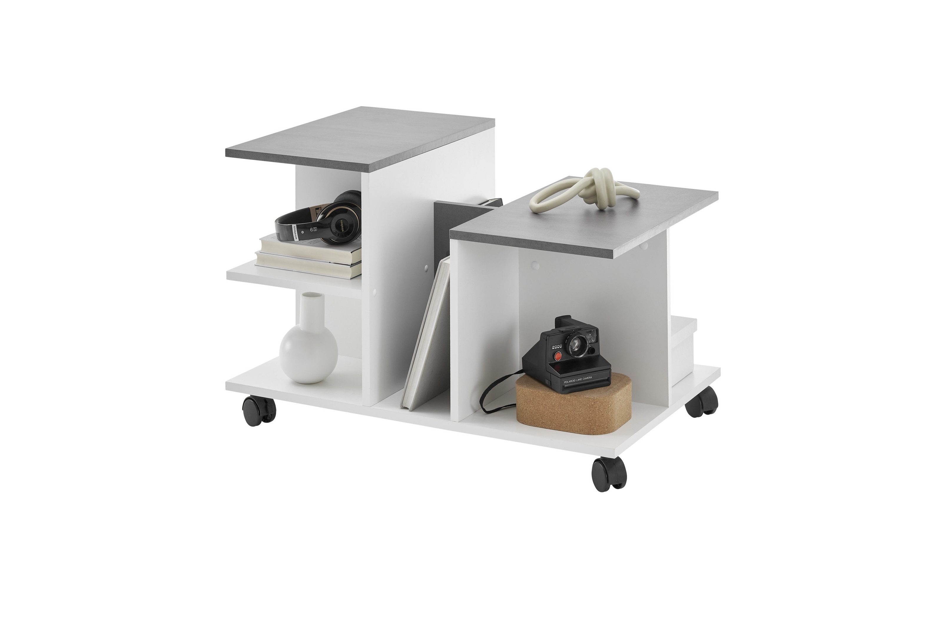 Der Couchtisch "Inga" ist ein zeitgemäßes Möbelstück, das durch seine Kombination aus modernem Design und hoher Funktionalität besticht. Mit großzügigen Abmessungen von 80 cm Breite, 52 cm Höhe und 50 cm Tiefe bietet er ausreichend Platz für Ihre Wohnaccessoires und Bücher. Gefertigt aus hochwertiger Spanplatte präsentiert sich der Couchtisch in einem attraktiven betonoxid Dekor mit weißen Akzenten, was ihm eine moderne und stilvolle Optik verleiht. Die Oberfläche ist nicht nur robust und strapazierfähig, sondern auch pflegeleicht. Besonders praktisch sind die 8 Ablageflächen, die genügend Raum für Bücher, Zeitschriften oder Dekorationsgegenstände bieten und Ihnen eine organisierte Aufbewahrung ermöglichen. Die 4 schwarzen Kunststoffrollen sorgen nicht nur für eine einfache Beweglichkeit des Tisches, sondern unterstreichen auch den industriellen Charme des Designs. Der Couchtisch "Inga" wird zerlegt geliefert, was den Transport und die Montage erleichtert. Eine detaillierte Montageanleitung ist im Lieferumfang enthalten, sodass Sie den Tisch problemlos selbst zusammenbauen können. Mit seinem attraktiven Erscheinungsbild, der praktischen Aufteilung und der stabilen Konstruktion ist der Couchtisch "Inga" die perfekte Wahl für Wohnzimmer, die Wert auf Funktionalität, Ästhetik und moderne Eleganz legen.