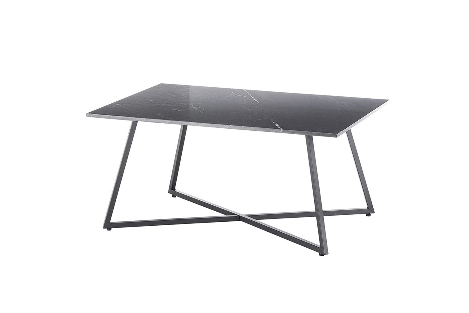 Schwarzes X-Gestell aus pulverbeschichtetem Metall – stabil, langlebig und optisch markant, verleiht dem Tisch einen modernen, industriellen Touch.