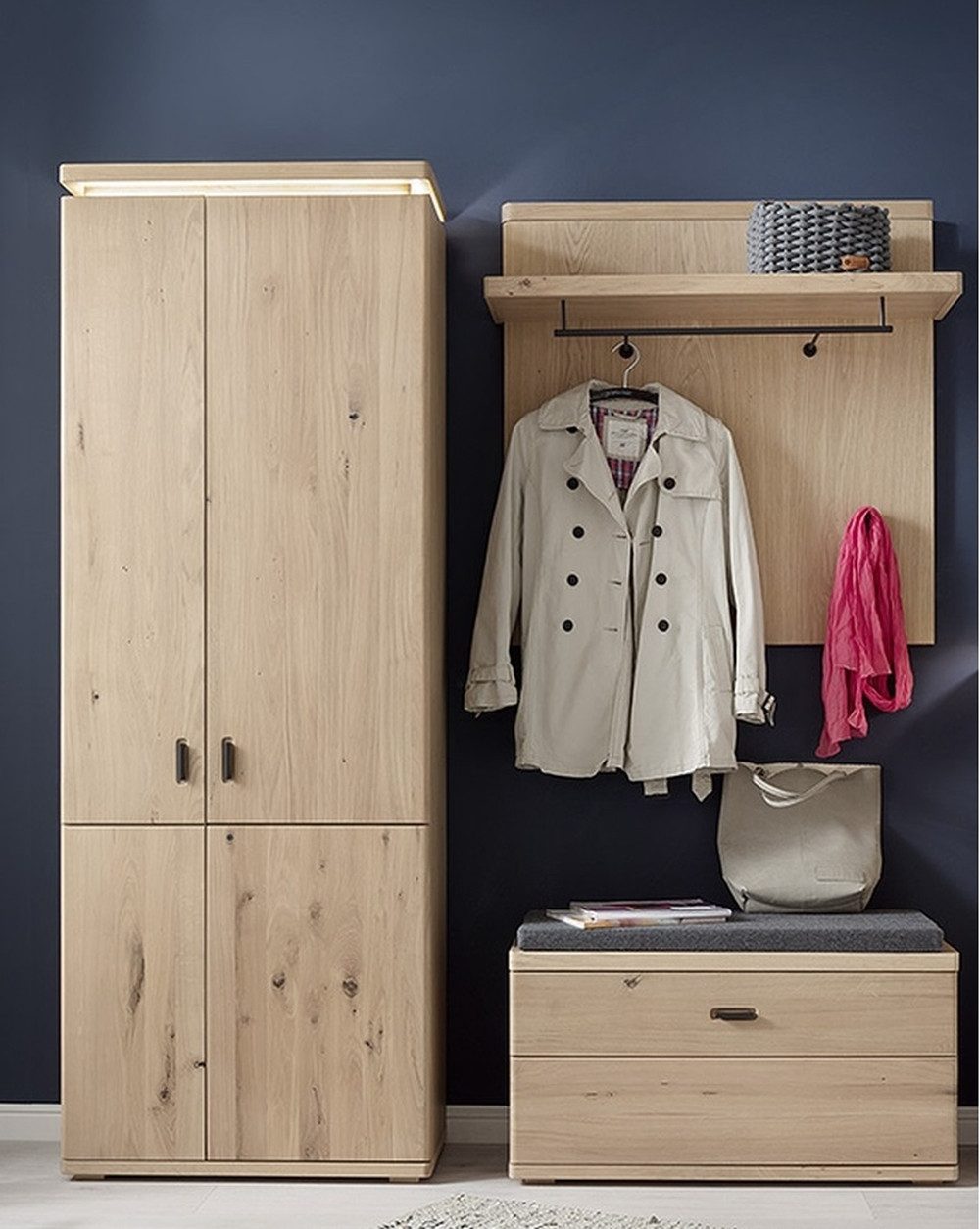 Set beinhaltet | Garderobenschrank 75x204x38cm, Schuhbank mit Kissen 90x47x38cm, Garderobenpaneel 98x93x30cm |