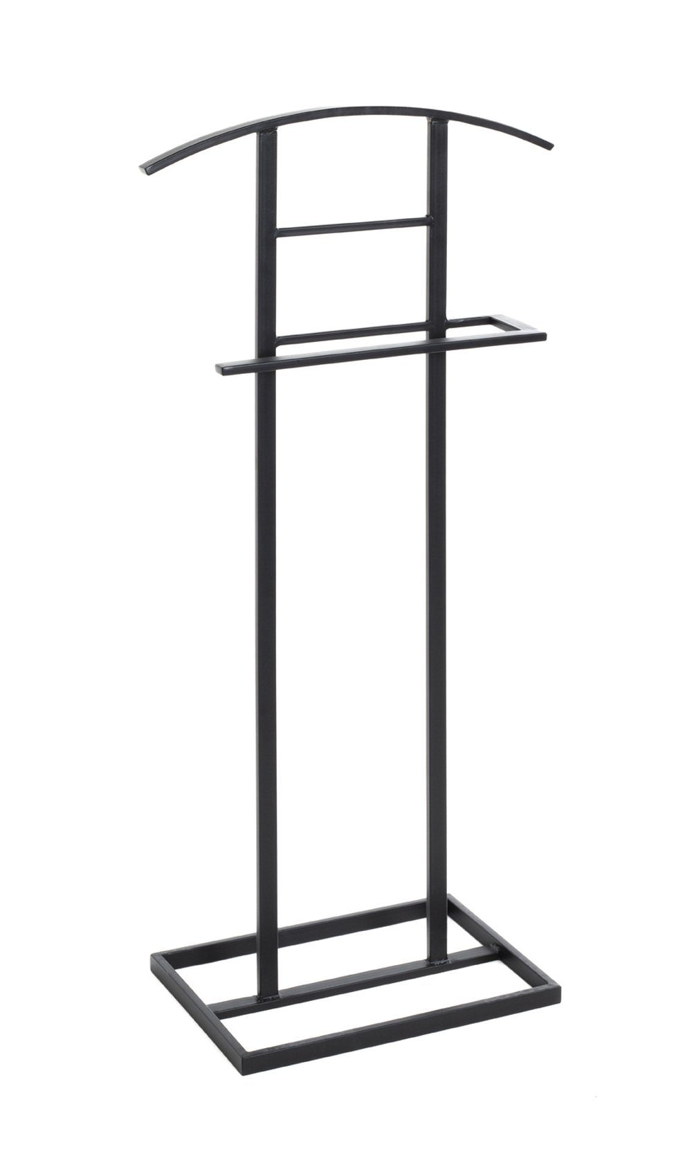 Der Herrendiener '23592' ist ein praktisches und stilvolles Möbelstück, das Ihnen dabei hilft, Ihre Kleidung ordentlich und griffbereit aufzubewahren. Mit seinen Maßen von 45 x 101 x 26 cm bietet er ausreichend Platz für Hemden, Hosen und Accessoires. Hergestellt aus robustem Metall in schwarz lackierter Ausführung, besticht der Herrendiener durch seine moderne Optik und Langlebigkeit. Die maximale Belastbarkeit von 12 kg ermöglicht es Ihnen, mehrere Kleidungsstücke sicher aufzuhängen. Der Herrendiener wird zerlegt geliefert, was eine einfache Montage ermöglicht. Mit einem Gewicht von nur 2,2 kg ist er leicht zu transportieren und flexibel im Raum platzierbar. Dank des praktischen Hosenhalters haben Sie die Möglichkeit, Ihre Hosen knitterfrei aufzuhängen. Mit einem Hosenhalter bietet der Herrendiener '23592' vielseitige Aufbewahrungsmöglichkeiten für Ihre Kleidung. Ob im Schlafzimmer, Ankleidezimmer oder Flur - dieser moderne Herrendiener fügt sich harmonisch in jede Einrichtung ein und sorgt für Ordnung und Stil zugleich. Gönnen Sie sich mit dem Herrendiener '23592' ein praktisches und elegantes Möbelstück für Ihr Zuhause!