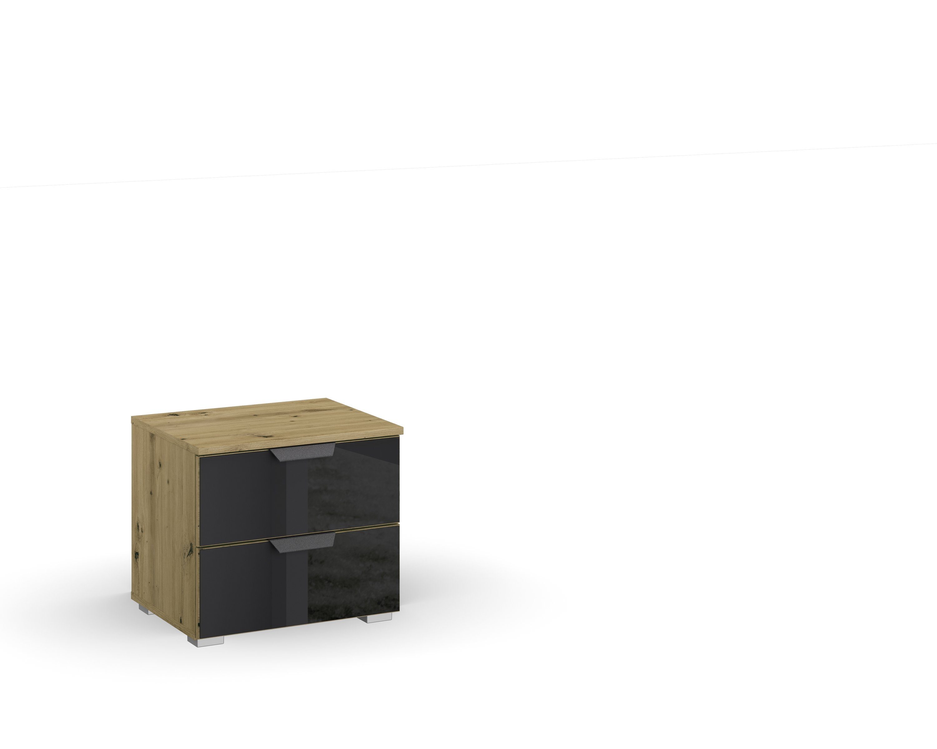 Der Nachttisch ARTEMIS von rauch mit zwei Schubladen überzeugt durch sein gradliniges Design im modernen Look. Die Kombination aus warmen Dekor-Druck Farben mit hochwertigen Glasfronten schaffen dabei eine attraktive Optik. Mit handlichen Griffen in Grau-metallic öffnest du die beiden geräumigen Schubladen des Nachttisches. Der Nachttisch bietet nützlichen Stauraum und sorgt für Ordnung rund ums Bett. Darin lassen sich Schlafmaske, Ohrstöpfel und Co. ordentlich verstauen. Ebenso trägt die Ablagefläche dazu bei, deine Lesebrille, dein Lieblingsbuch oder eine Tischleuchte darauf abzulegen. Kombinieren den Nachttisch mit weiteren Möbel der Serie ARTEMIS von rauch und schaffe ein rundum gelungenes Wohlfühl-Schlafzimmer.