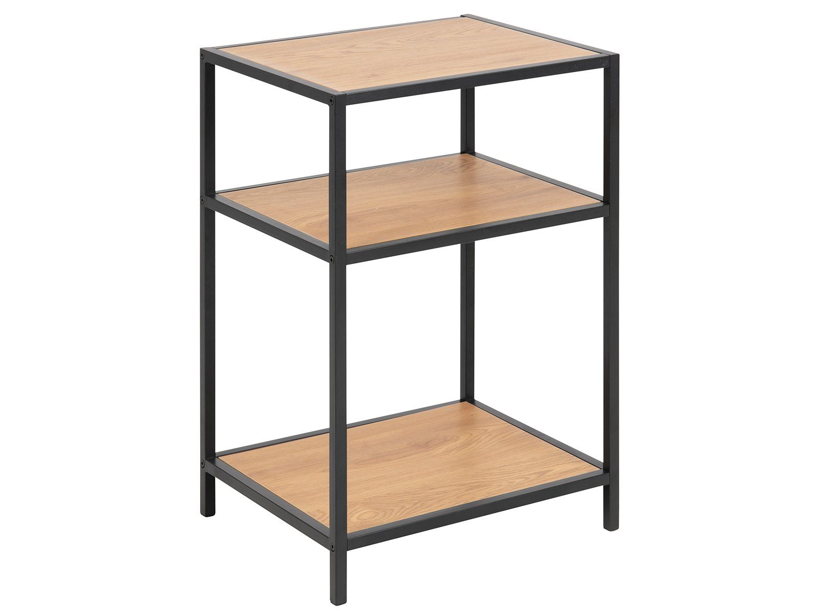 Der Nachttisch "Carney I" ist mit einem schwarz-matten Metallgestell erhältlich, welches stilvoll mit Ablageflächen in charakterstarker Wildeiche Nachbildung kombiniert wird. Beide Farben bilden einen attraktiven Kontrast zueinander, der für eine gefällige Ausstrahlung sorgt. Die Holznachbildung ist qualitativ sehr hochwertig mit täuschend echter Maserung.