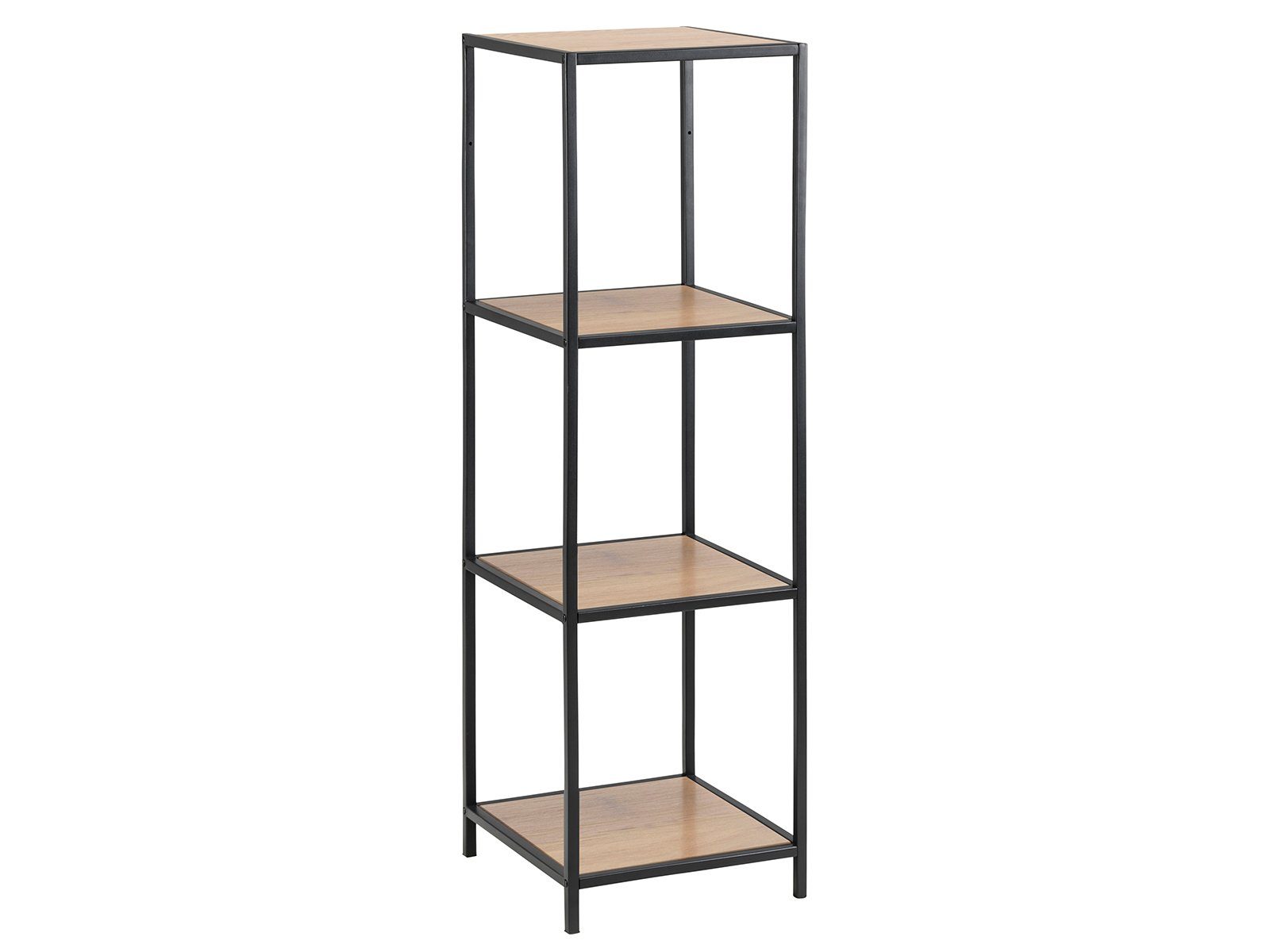 Das Regal "Carney XVI" ist mit einem schwarz-matten Metallgestell erhältlich, welches stilvoll mit Ablageflächen in charakterstarker Wildeiche Nachbildung kombiniert wird. Beide Farben bilden einen attraktiven Kontrast zueinander, der für eine gefällige Ausstrahlung sorgt. Die Holznachbildung ist qualitativ sehr hochwertig mit täuschend echter Maserung.