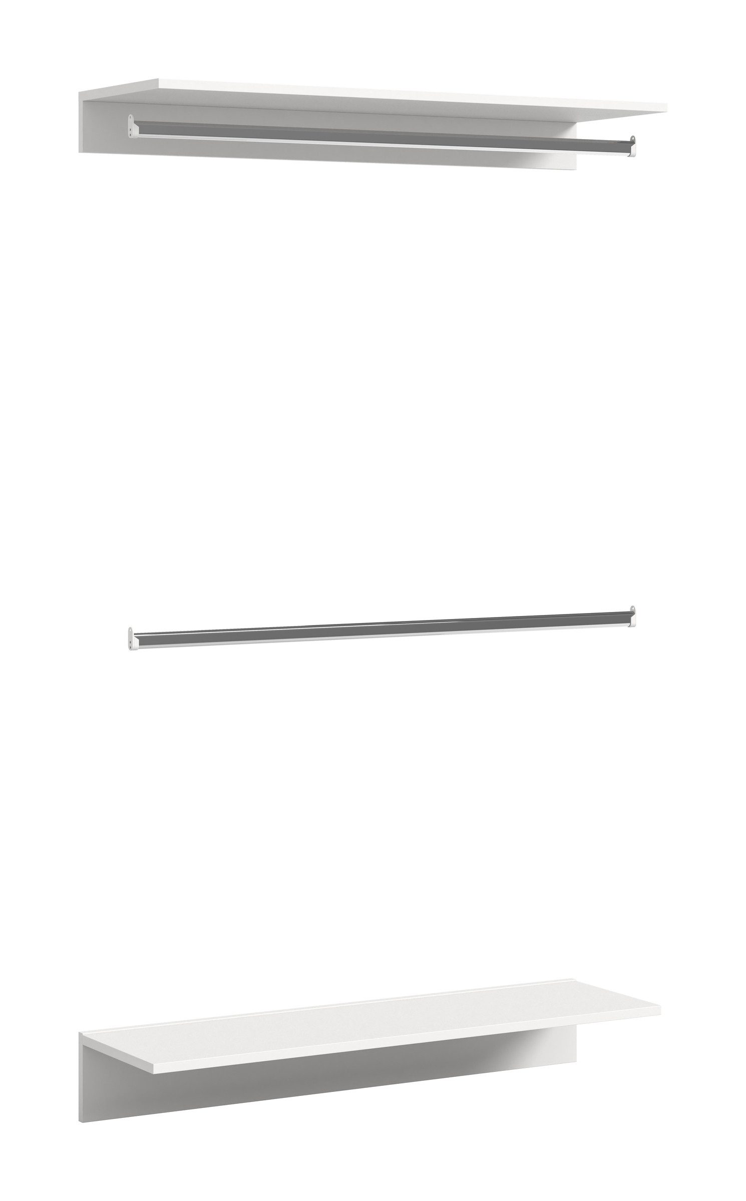Projekt X ist ein funktionaler Regaleinsatz in modernem Stil, der speziell als Zwischenbauelement für die Montage zwischen zwei Schränken konzipiert wurde. Mit den Maßen 110 cm in der Breite, 191 cm in der Höhe und 34 cm in der Tiefe bietet das Möbelstück ausreichend Stauraum und Struktur für unterschiedlichste Wohnräume. Dank der zwei integrierten Kleiderstangen eignet sich Projekt X ideal zur Nutzung in Fluren, Garderoben, Hauswirtschaftsräumen oder Ankleidezimmern, um Kleidung übersichtlich und griffbereit aufzubewahren. Gefertigt ist Projekt X aus hochwertiger Spanplatte mit melaminbeschichteter Oberfläche, was die Pflegeleichtigkeit und Strapazierfähigkeit des Möbels unterstreicht. Die weiße Farbgebung in Nachbildung sorgt für ein freundliches und neutrales Erscheinungsbild, das sich harmonisch in verschiedenste Einrichtungsstile einfügt. Die Metallbeschläge garantieren dabei eine stabile und langlebige Verbindung der Bauteile, was insbesondere bei häufiger Nutzung ein wichtiges Qualitätsmerkmal darstellt. Die Montage von Projekt X erfolgt ausschließlich zwischen zwei Schränken, was bei der Planung des Einsatzes unbedingt zu berücksichtigen ist. Im Lieferumfang enthalten sind alle für die Befestigung notwendigen Garderoben-Zwischenbauelemente sowie eine leicht verständliche Aufbauanleitung. Mit einer maximalen Belastbarkeit von 5 kg pro Einlegeboden eignet sich der Einsatz für alltägliche Kleidungsstücke oder Accessoires, die platzsparend organisiert werden sollen. Projekt X wird zerlegt geliefert und kann mit Hilfe der beiliegenden Aufbauanleitung unkompliziert montiert werden. Dabei ist zu beachten, dass Dekorationsartikel nicht im Lieferumfang enthalten sind. Das Produkt trägt das FSC® Mix-Zertifikat (FSC-C170479), was bedeutet, dass das verwendete Holz aus verantwortungsvoller, nachhaltiger Forstwirtschaft stammt. Projekt X kombiniert Umweltbewusstsein mit hoher Funktionalität und modernem Design – eine perfekte Lösung für strukturierte Ordnung im