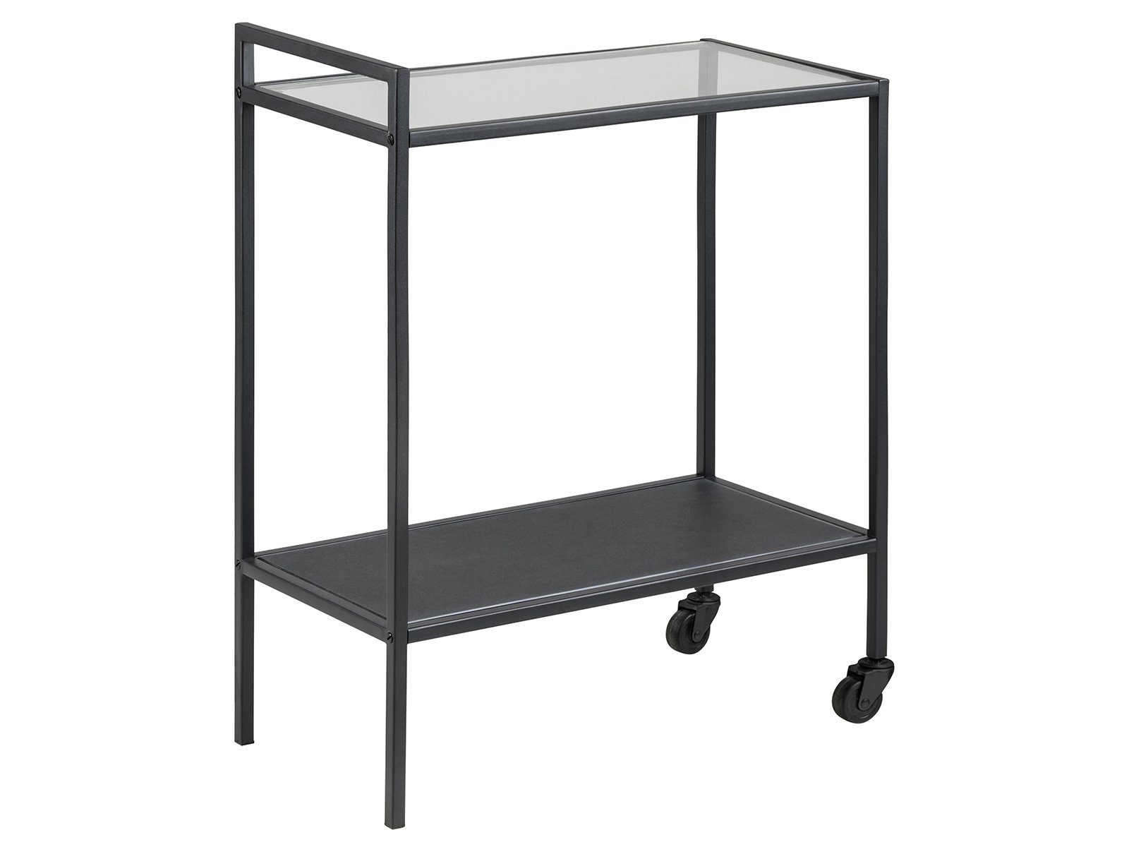 Der Küchenwagen "Carney II" ist mit einem schwarz-matten Metallgestell erhältlich, welches stilvoll mit 1 Ablagefläche aus gehärtetem Klarglas kombiniert wird. Beide Materialien bilden einen attraktiven Kontrast zueinander, der für eine gefällige Ausstrahlung sorgt.