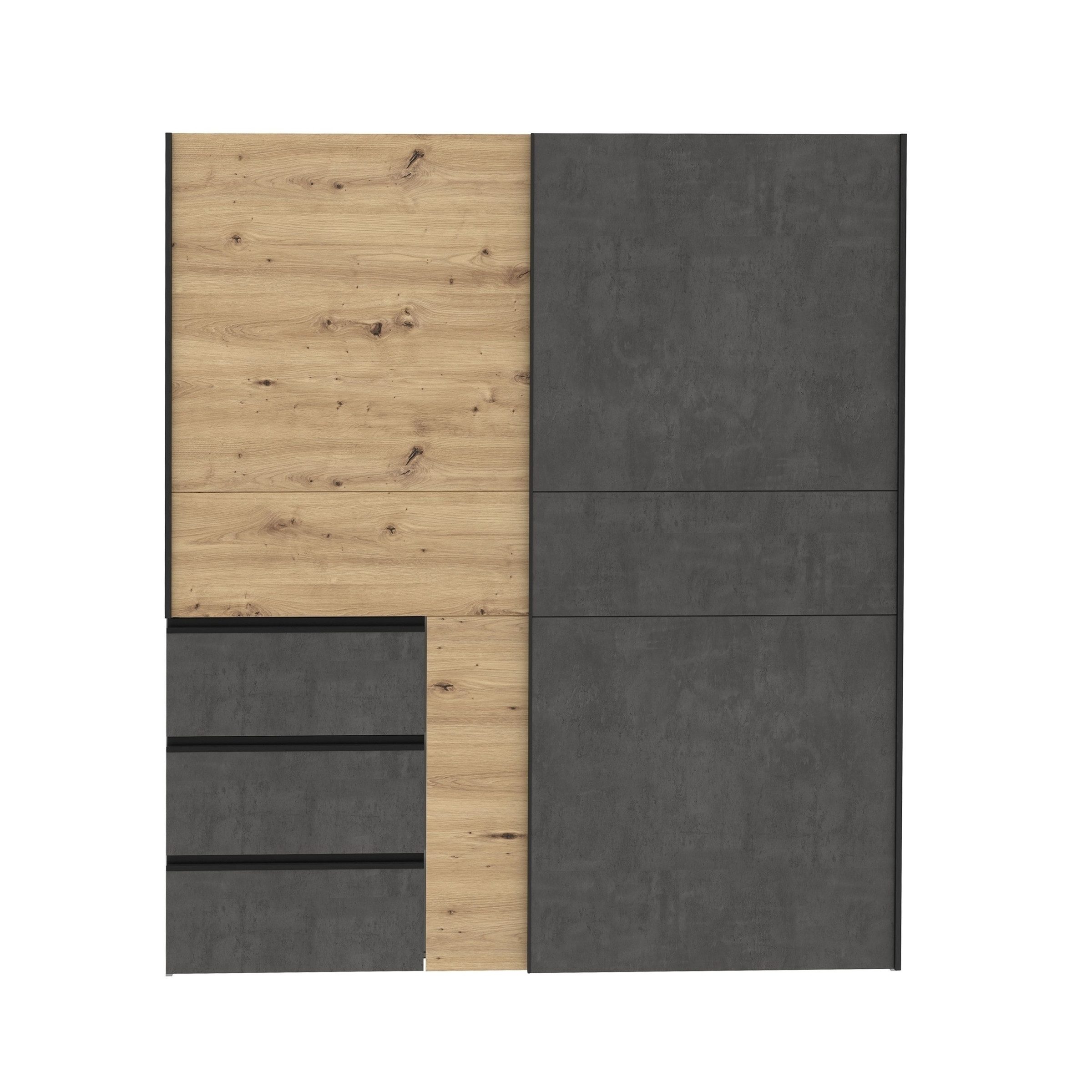freiraum Schiebetürenschrank Winn 2 in Betonoptik / Artisan Eiche - 170,3x200,5x61,2cm B/H/T