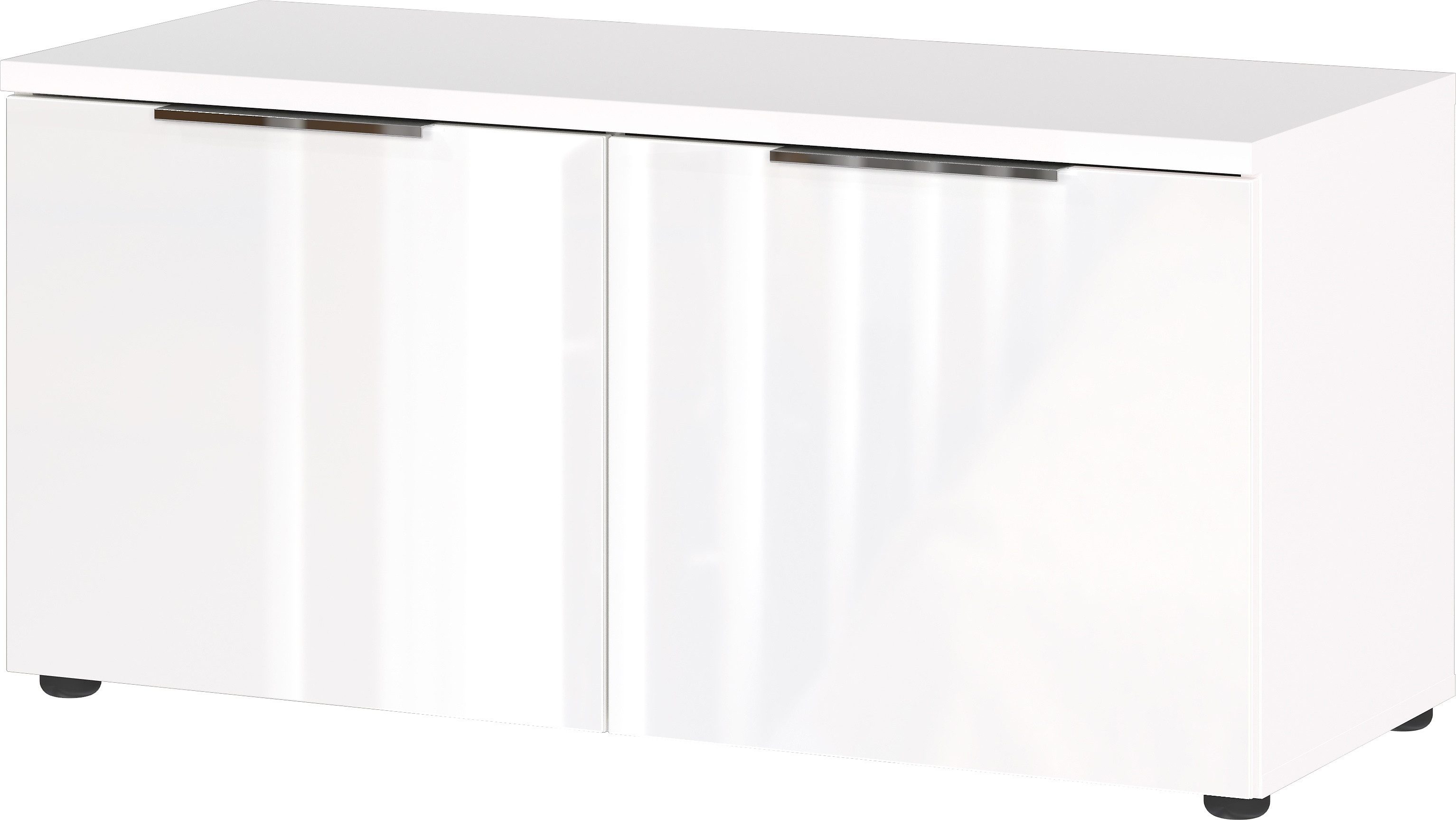 Die Schuhbank GW-GENOVA vereint modernes Design mit hoher Funktionalität und ist die perfekte Ergänzung für Flur, Diele oder Schlafzimmer. Mit einer Breite von 97 cm, einer Höhe von 47 cm und einer Tiefe von 40 cm bietet sie ausreichend Platz für die Aufbewahrung von bis zu 12 Paar Schuhen. Der weiße Korpus und die Glasauflagen auf den Fronten sorgen für eine elegante Optik, während die melaminharzbeschichtete Oberfläche nicht nur hochwertig aussieht, sondern auch kratzfest und pflegeleicht ist. Die Möbelgleiter in Schwarz garantieren einen stabilen Stand und schützen den Boden. Hinter den zwei Drehtüren mit integrierter Türdämpfung befinden sich je zwei verstellbare Einlegeböden, die jeweils mit bis zu 15 kg belastbar sind. Der Oberboden trägt dauerhaft bis zu 20 kg und ist sogar kurzzeitig bis zu 80 kg belastbar – ideal, um beim Anziehen der Schuhe bequem Platz zu nehmen. Die hochwertigen ABS-Kanten sorgen für zusätzliche Langlebigkeit und schützen vor Stößen und Abnutzung. Die beiden Metall-Kantengriffe in Chromoptik fügen sich dezent ins Design ein und ermöglichen ein komfortables Öffnen der Türen. Die Schuhbank GW-GENOVA ist aus melaminharzbeschichteter Spanplatte gefertigt und verfügt über eine strapazierfähige Glasauflage aus Einscheibensicherheitsglas auf den Fronten. Diese Kombination verleiht dem Möbelstück eine moderne, zeitlose Ausstrahlung. Die weiße Farbgebung lässt sich vielseitig kombinieren und passt sowohl in minimalistische als auch in klassische Einrichtungen. Die glatte Oberfläche lässt sich leicht mit einem feuchten Tuch reinigen, sollte jedoch nicht mit alkoholhaltigen oder scheuernden Mitteln behandelt werden. Hergestellt in Deutschland, steht die Schuhbank GW-GENOVA für Qualität und Langlebigkeit. Der Artikel wird zerlegt geliefert, lässt sich mit Hilfe der beiliegenden Aufbauanleitung jedoch einfach und schnell montieren. Für zusätzlichen Sitzkomfort kann ein optionales Sitzkissen mit der Artikelnummer 3439-58 separat erworben