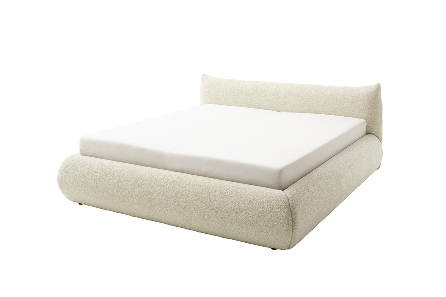 Der Stoffbezug Marietta 9440 in Creme besteht zu 100 % aus Polyester und ist pflegeleicht und strapazierfähig. Der bauchige Bettrahmen sorgt für ein elegantes Design.