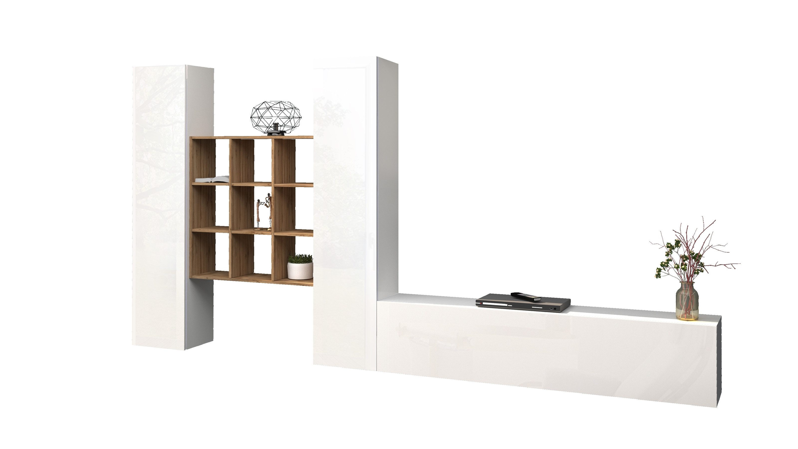 Set beinhaltet | 2 Schränken, 1 TV-Lowboard, 1 Hängeregal |