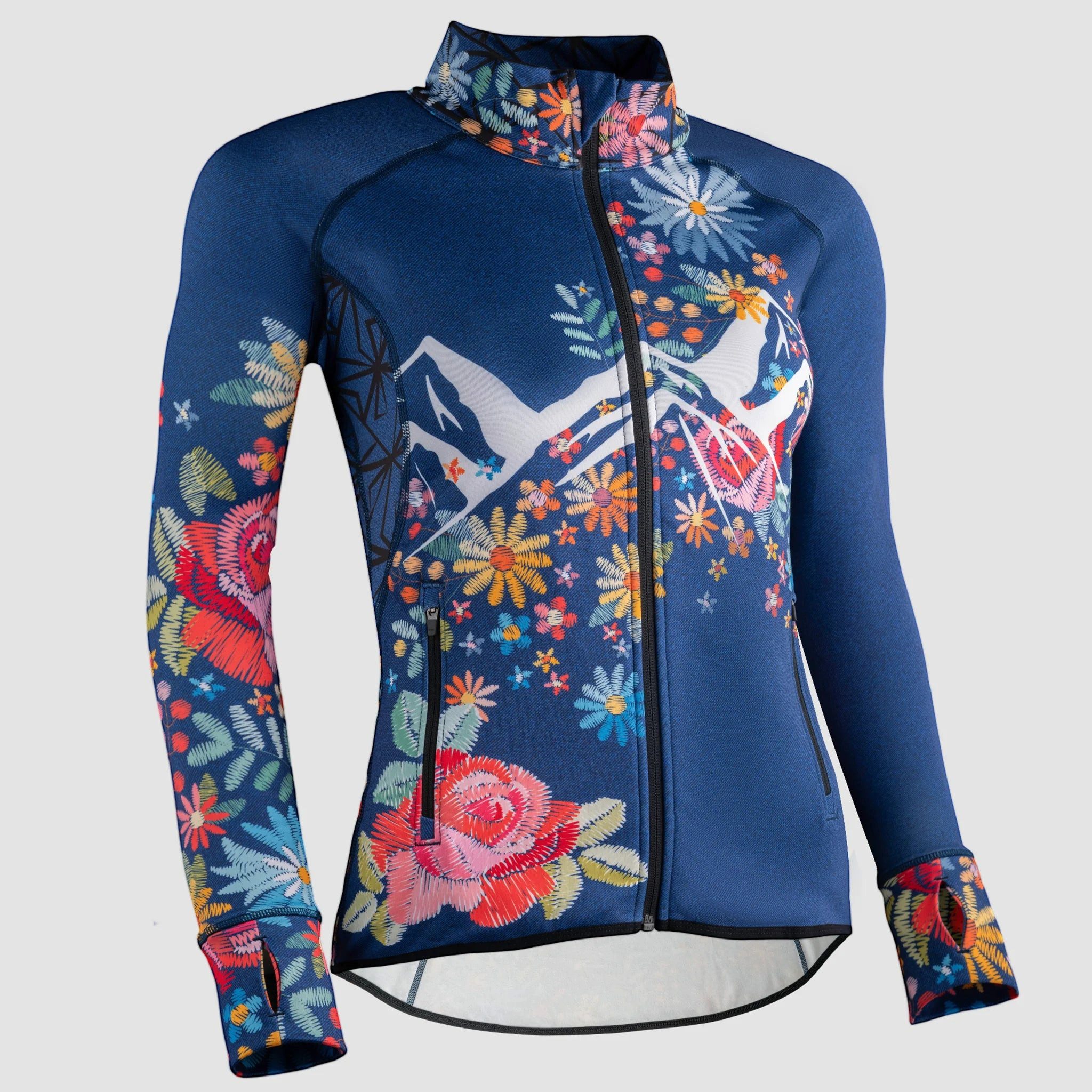 Entdecken Sie unsere stilvolle und wärmende Funktionsjacke mit einem attraktiven Allover Blütenprint, perfekt für Ihre Berg- und Freizeithosen!