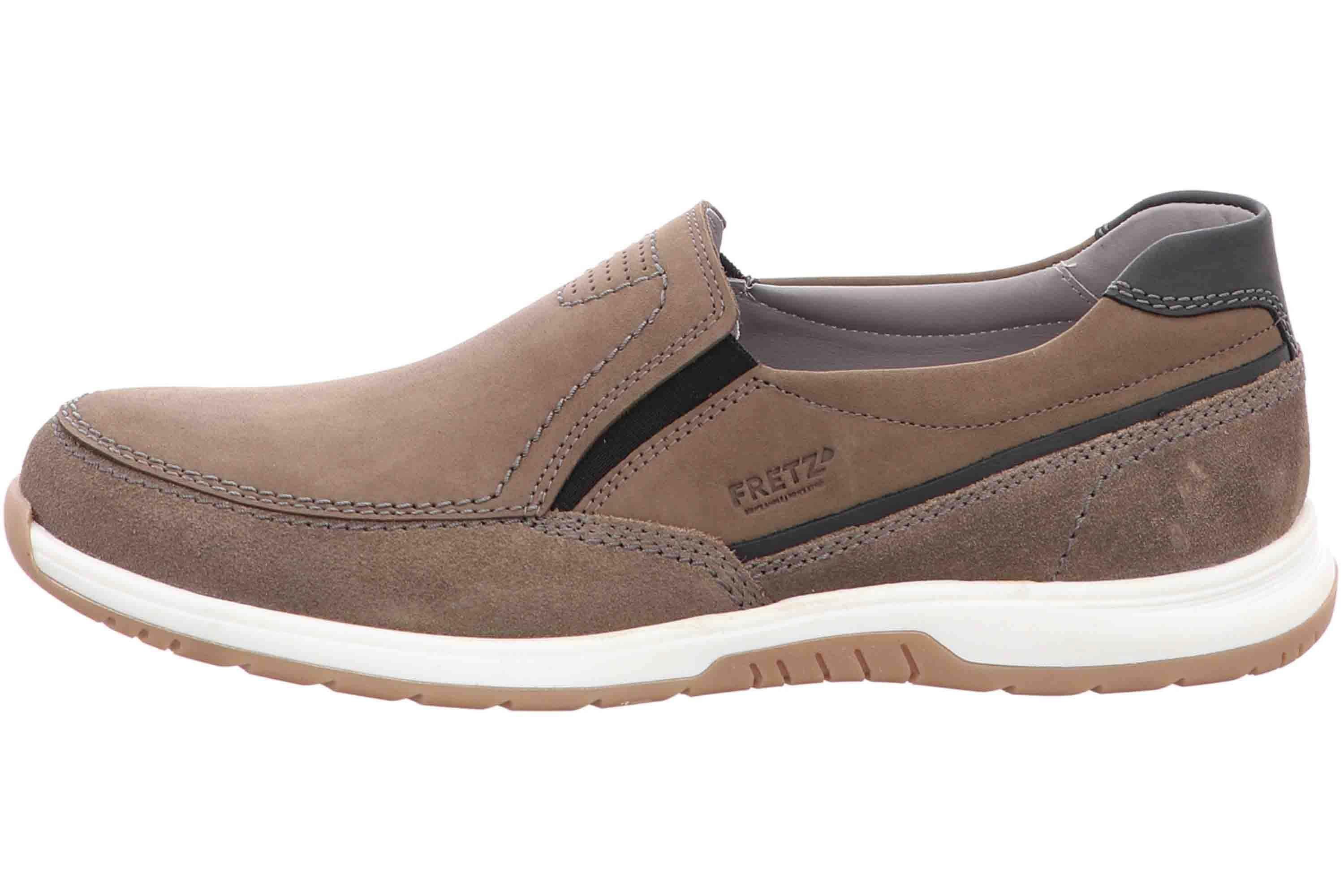 Bei diesem formschönen Schuh der Marke Fretz Men handelt es sich um ein Modell aus der Kategorie Slipper. Diese Herrenschuhe in der Farbe Braun überzeugen durch ein klares Design und unterstreichen die aktuelle Schuhmode. Große Schuhe von Fretz Men lassen sich perfekt mit dem urbanen Modegeist kombinieren und verleihen jedem modernen aber auch einem klassisch-sportivem Outfit den passenden Schliff. Das Außenmaterial bei diesem Modell wurde aus Veloursleder hergestellt, als Innenmaterial wurde Leder verwendet. Bei diesen Schuhen kann als Weite Volle Weite (H-Weite) berücksichtigt werden. Die TR-Sohle sorgt jederzeit für einen guten Auftritt und ein mit einer Höhe von sorgt für die harmonische Silhouette.
