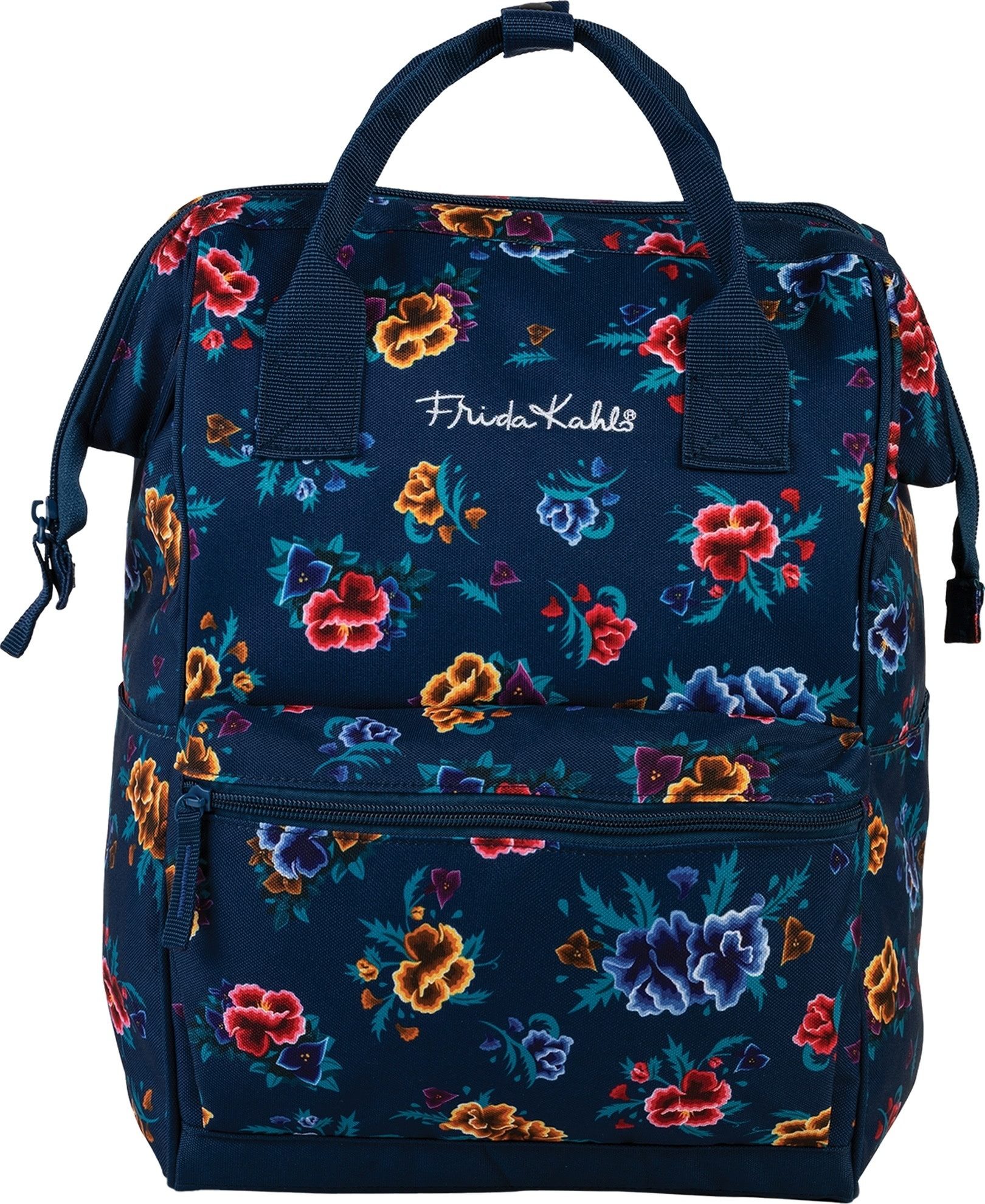 Ein modischer Cityrucksack für Damen der Marke Frida Kahlo in der Farbe royalblau. Dieser elegante Rucksack besteht aus besonderen Polyester.