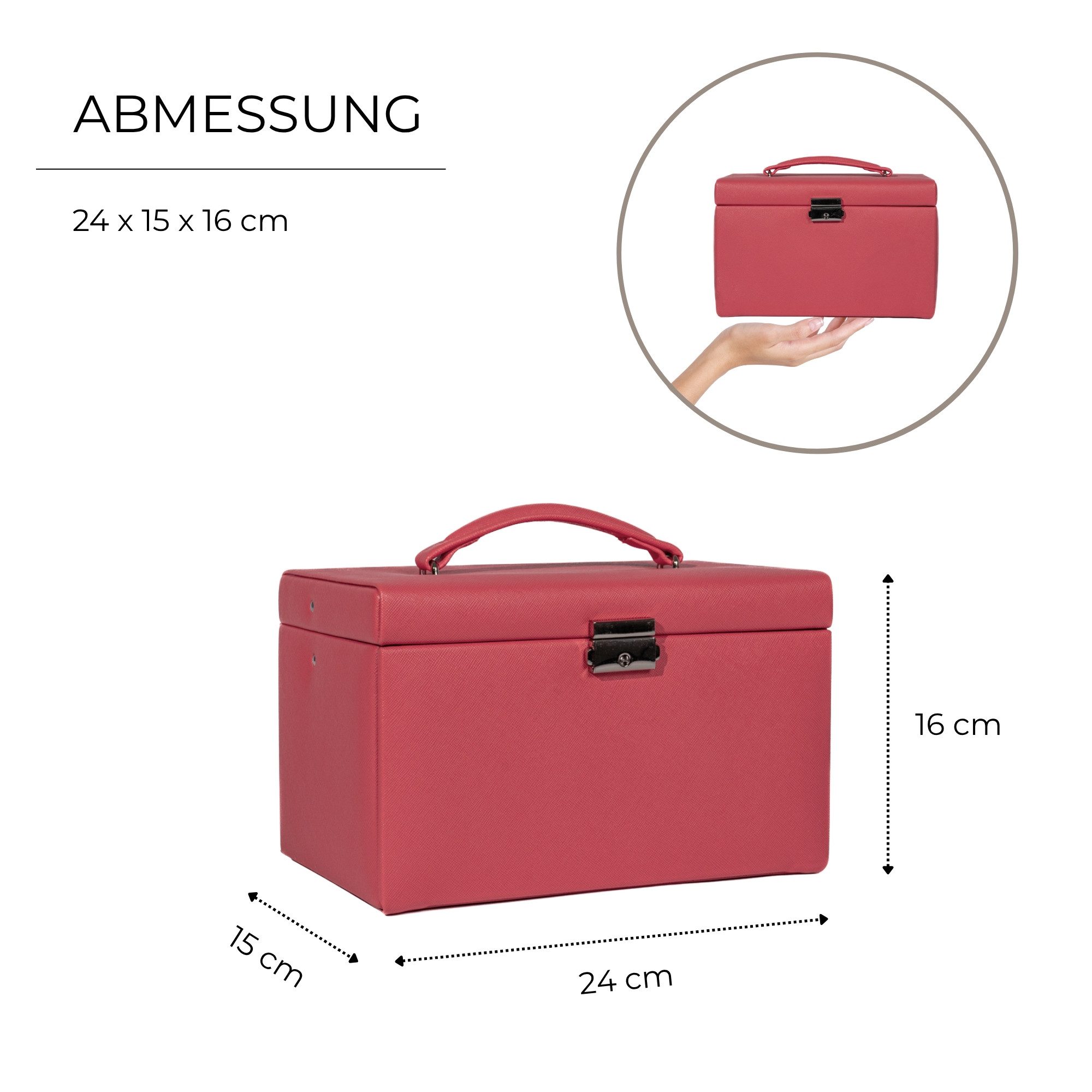 Ausstattung | 2 Fächer mit Abdeckkissen, Ringleisten, 3 Schubladen mit Unterteilungen |