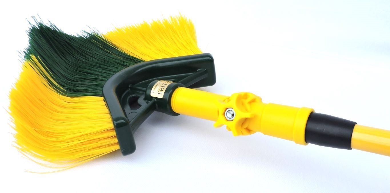 Ecken und Kanten sind die Feinde vieler Besen. Für Krallenbesen gilt dies dank der abgewinkelten Form Ihrer Borsten nicht. Der Krallen-Eckenbesen setzt dem Ganzen jedoch die Krone auf. Zwei Seiten, die im 90°-Winkel zueinander stehen und mit abgewinkelten Borsten bestückt sind - mehr geht nicht. Der Krallen-Eckenbesen kann mit einem schwenkbaren Gelenkstück und einem bis auf eine Длина von 1,40 Meter ausziehbaren Teleskopstiel ausgestattet werden (beides im Lieferumfang enthalten). In dieser Kombination ist der Krallen-Eckenbesen prädestiniert für die Beseitigung von Spinnenweben und Schmutz aus verwinkelten Bereichen. Zugesetzte Dachrinnen können vom Schmutz befreit werden, auch um Ecken herum und in größerer Entfernung. Die maximale Gesamtlänge aus Krallen-Eckenbesen, Gelenkstück und Teleskopstiel beträgt ca. 1,65 m. Es handelt sich um ein hochwertiges Gelenkstück aus massivem Kunststoff.