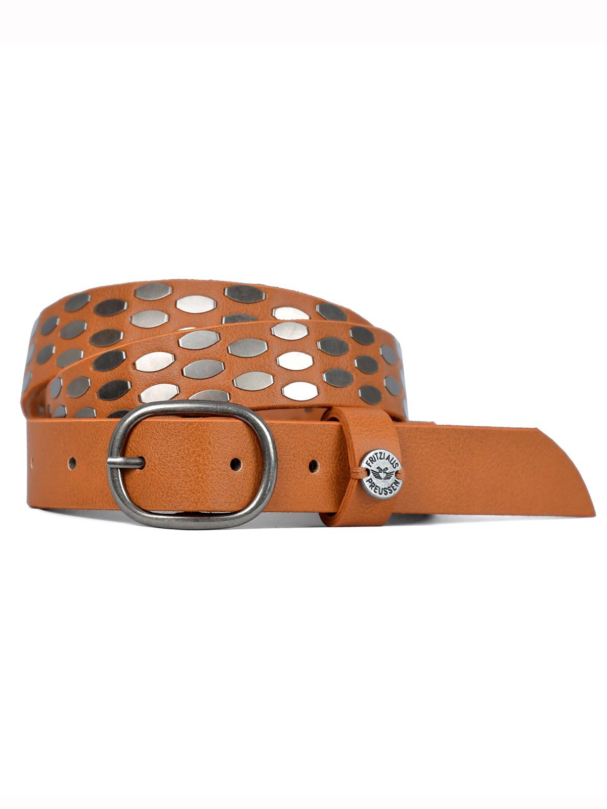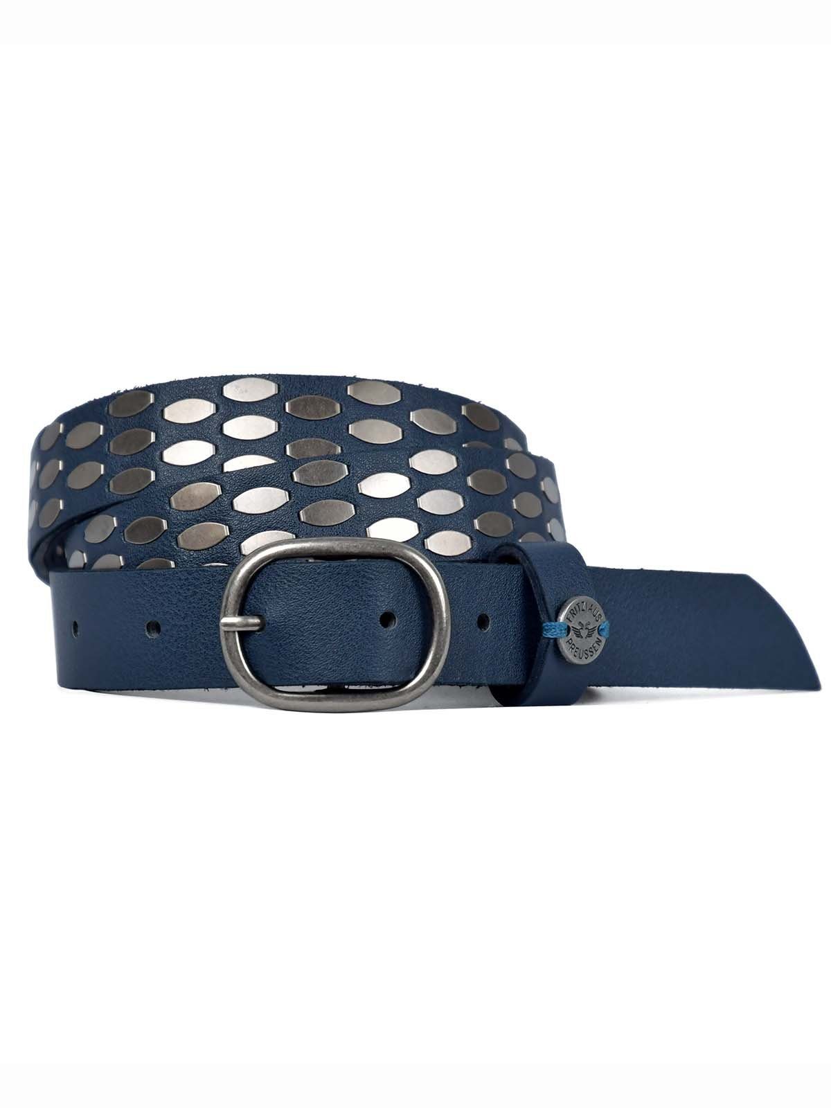 Außergewöhnliches Design: Einzigartiger Look durch die symmetrische Besetzung mit ovalen Metallplättchen, die über 80% der Gürtellänge einen glamourösen Akzent verleihen.