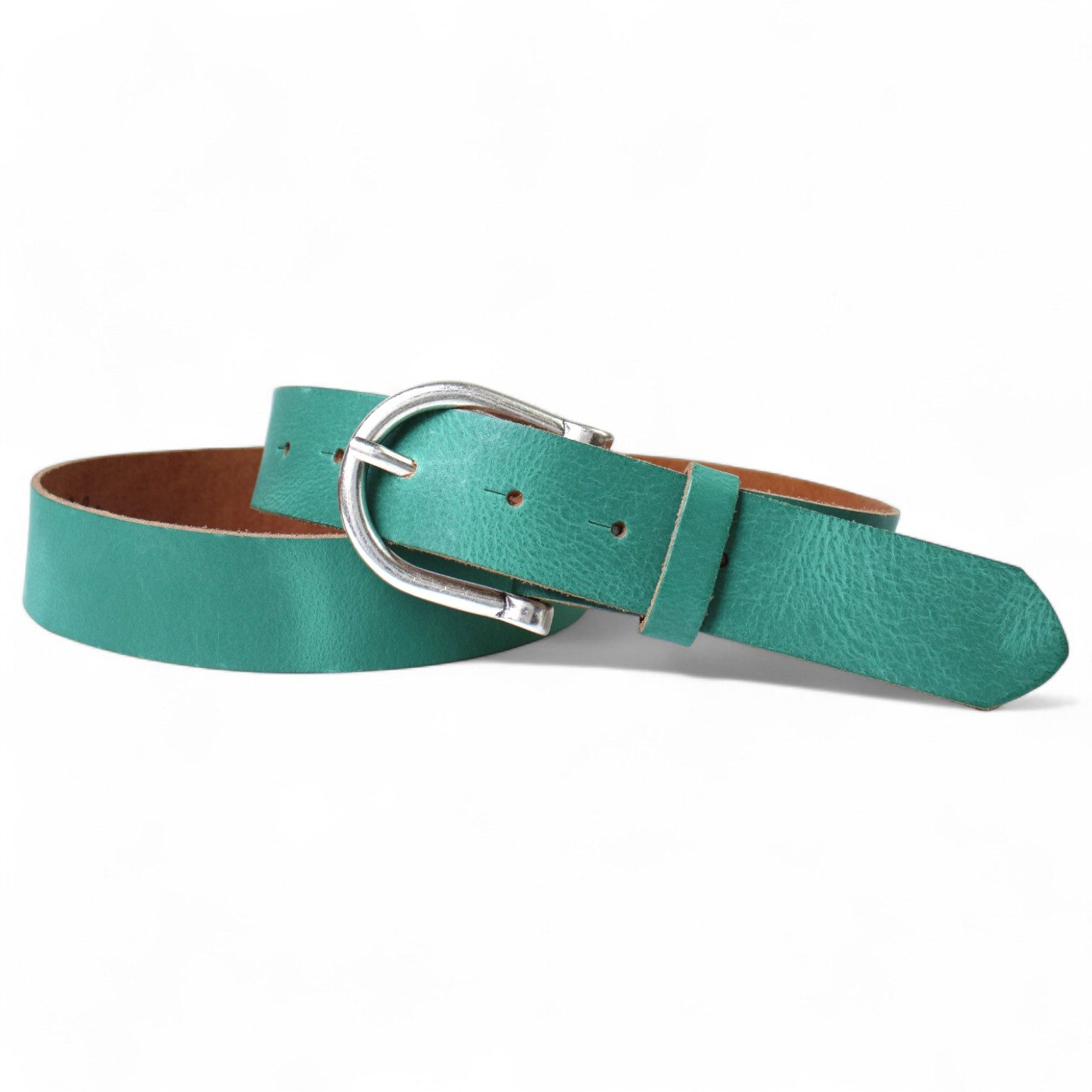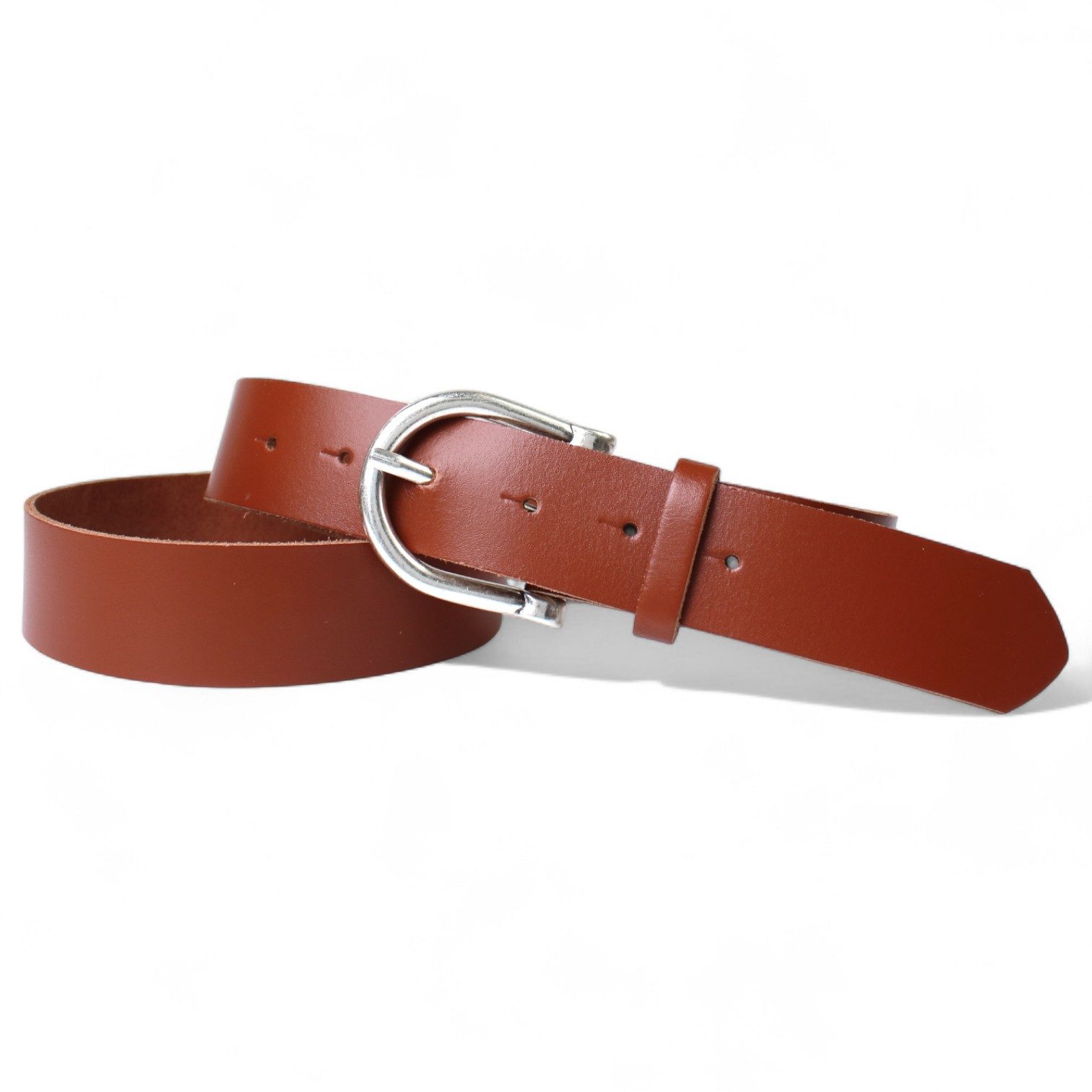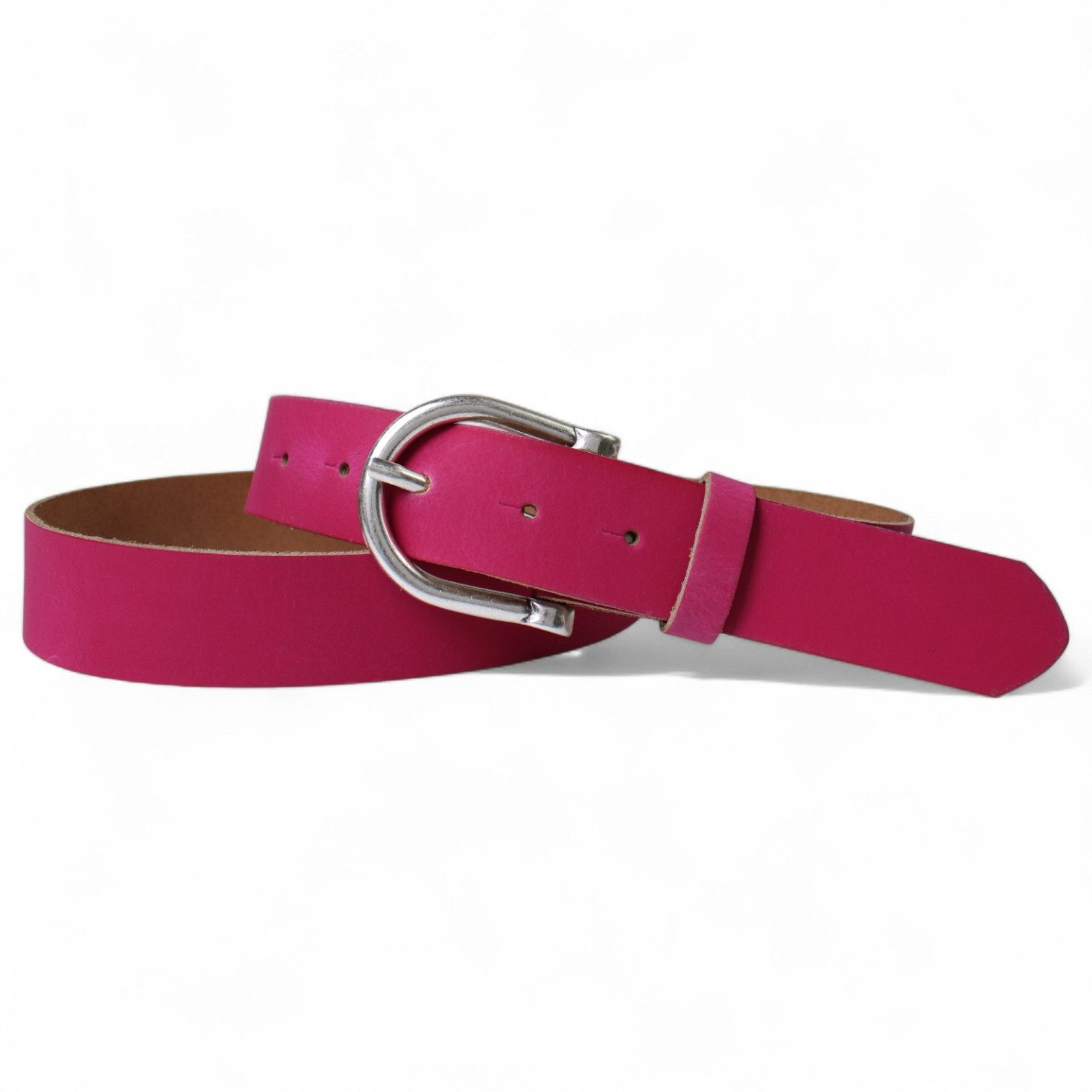 Zeitlos schöner Damengürtel mit einer modischen Dornschnalle. Der Gürtelriemen ist aus Rindsleder und in großer Farbauswahl erhältlich. Der Gürtel passt zu Kleidern und Hosen. Der Gürtel ist ca. 3,5 cm breit und aus echtem Rindsleder (kein Lederimitiat!).
