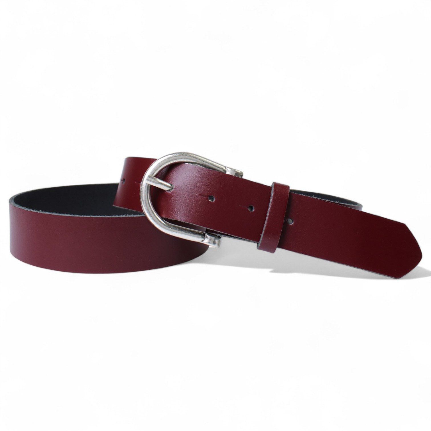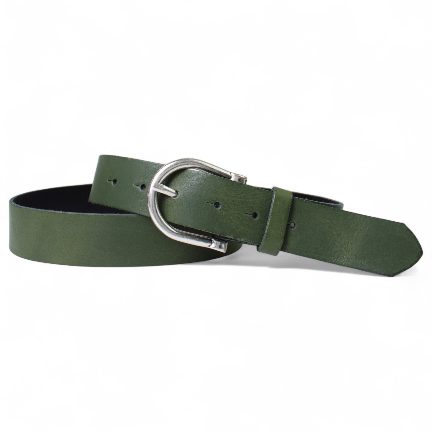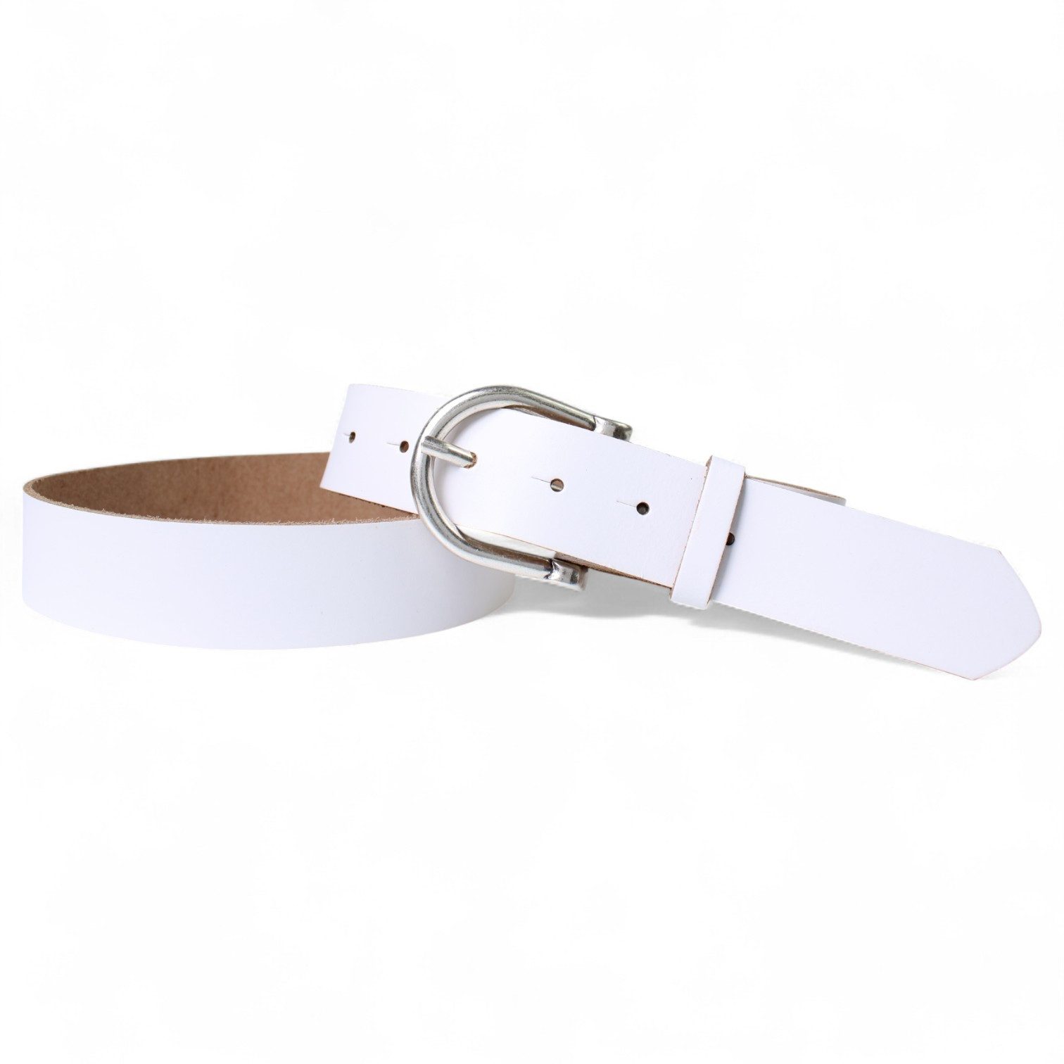 Zeitlos schöner Damengürtel mit einer modischen Dornschnalle. Der Gürtelriemen ist aus Rindsleder und in großer Farbauswahl erhältlich. Der Gürtel passt zu Kleidern und Hosen. Der Gürtel ist ca. 3,5 cm breit und aus echtem Rindsleder (kein Lederimitiat!).