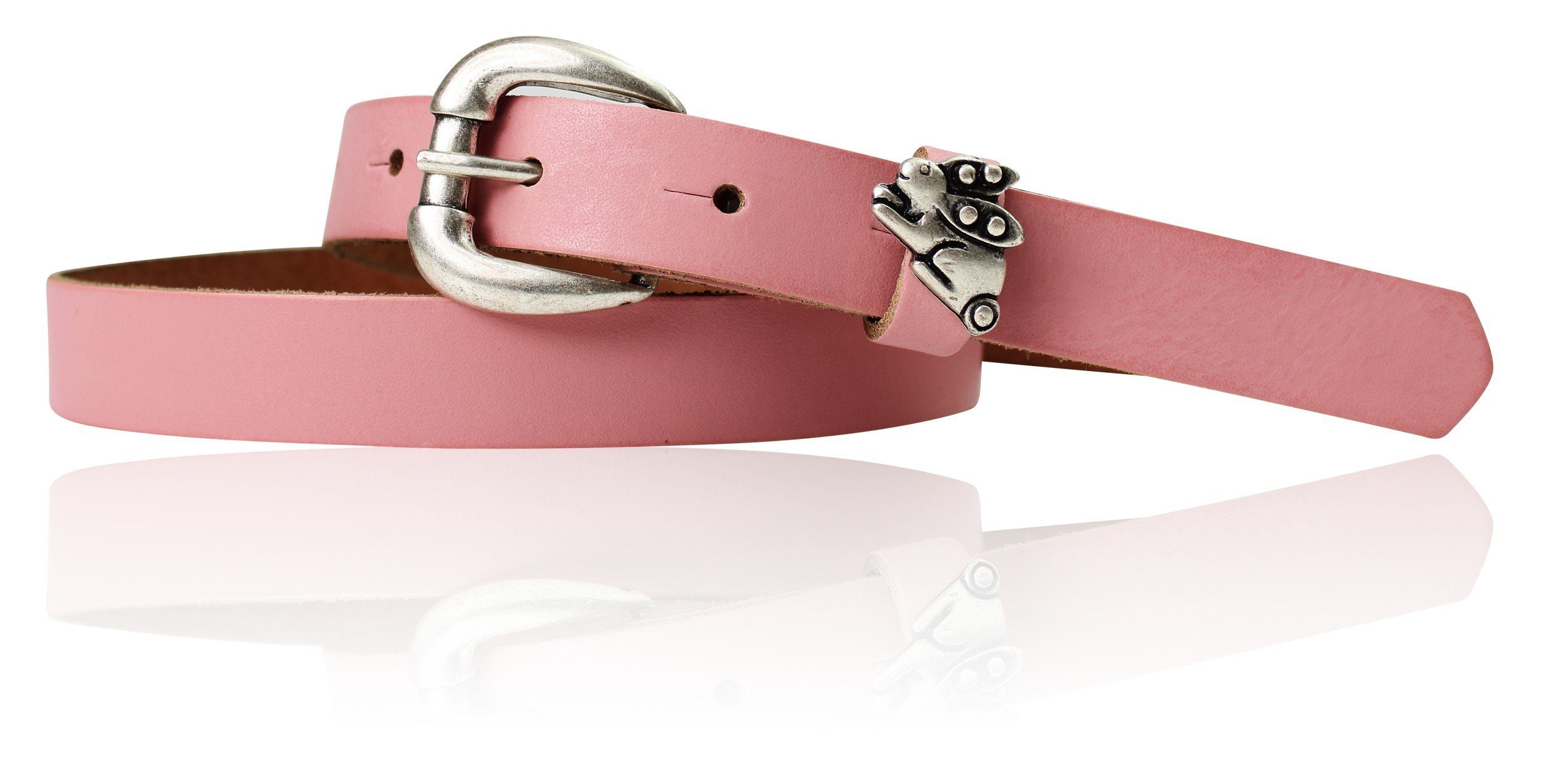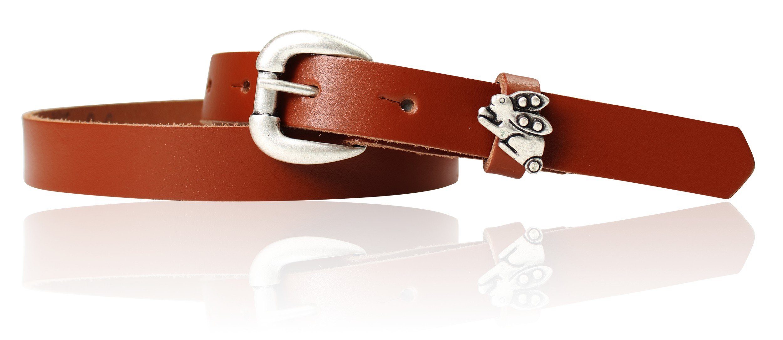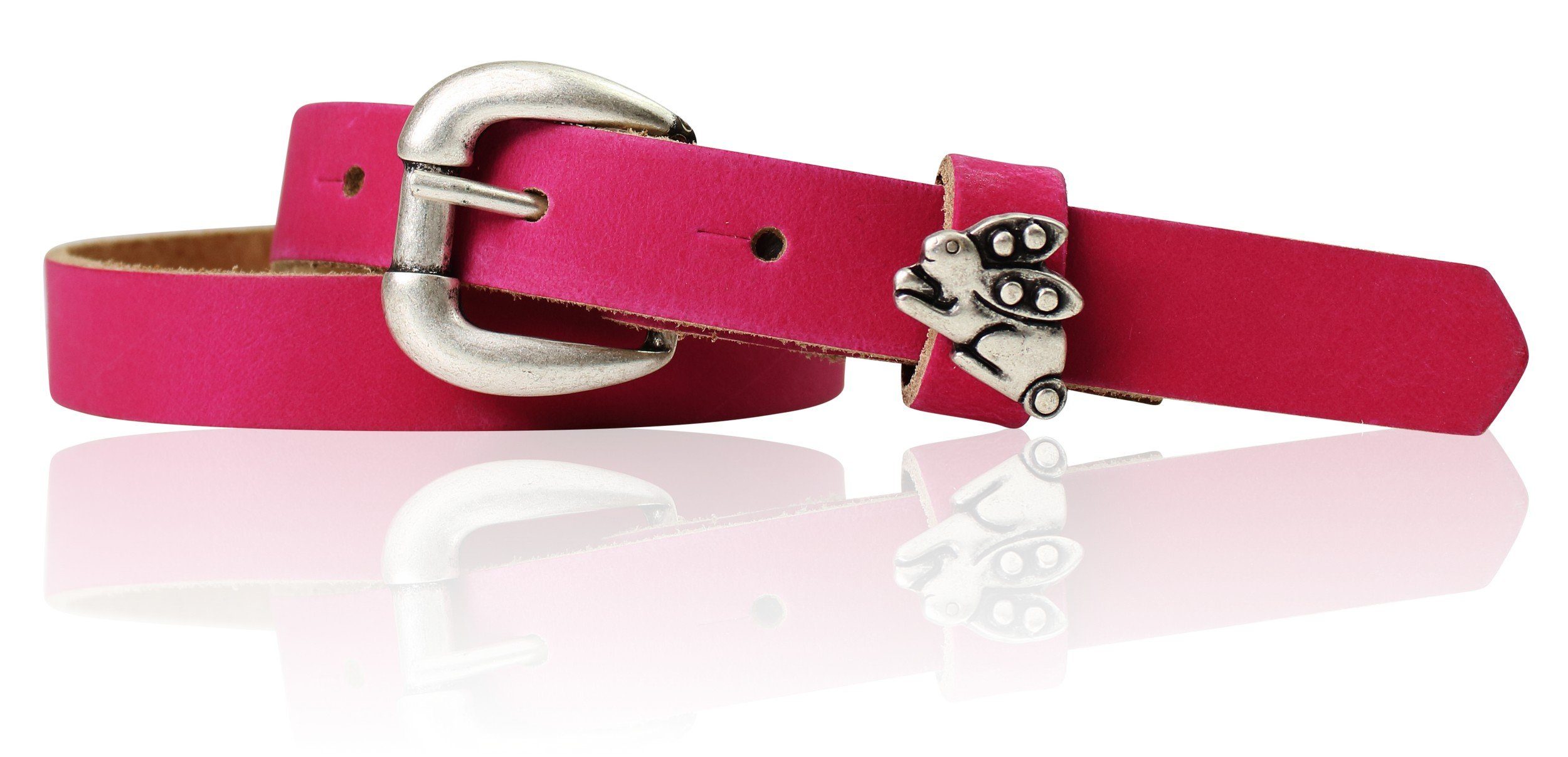 Ein süßer Häschen-Kindergürtel den die Kleinen lieben werden. Auf die Gürtelschlaufe ist ein süßer Hase aufgenietet. Die 7-fache Lochung sorgt für eine längere Tragezeit. Auch die kleine, modische Dornschnalle macht viel her. Der Riemen ist aus echtem Leder, EXTRA dünn geschnitten: trägt nicht auf, ist leicht, reißt nicht und ist plastikfrei! Made in Germany.