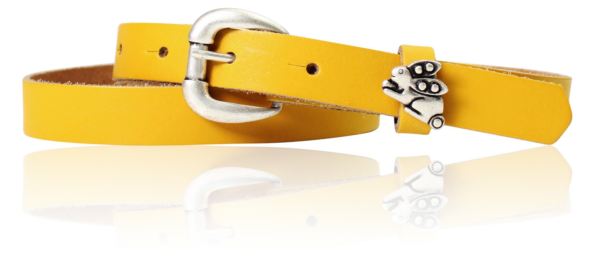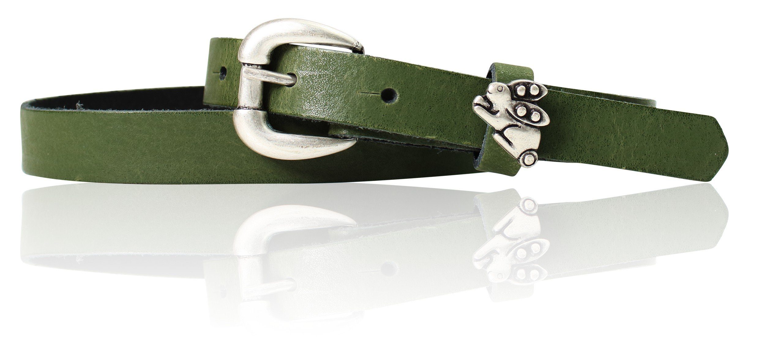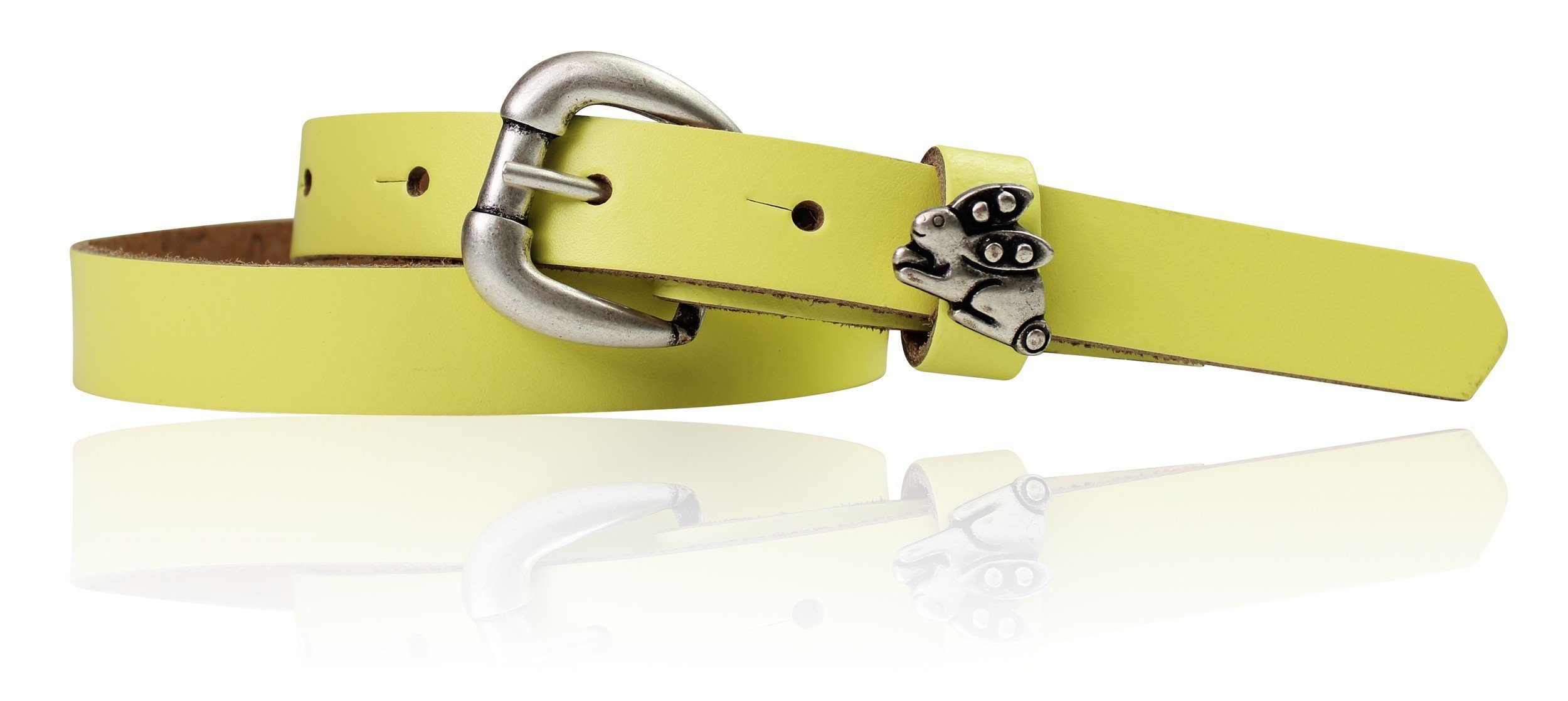 Ein süßer Häschen-Kindergürtel den die Kleinen lieben werden. Auf die Gürtelschlaufe ist ein süßer Hase aufgenietet. Die 7-fache Lochung sorgt für eine längere Tragezeit. Auch die kleine, modische Dornschnalle macht viel her. Der Riemen ist aus echtem Leder, EXTRA dünn geschnitten: trägt nicht auf, ist leicht, reißt nicht und ist plastikfrei! Made in Germany.