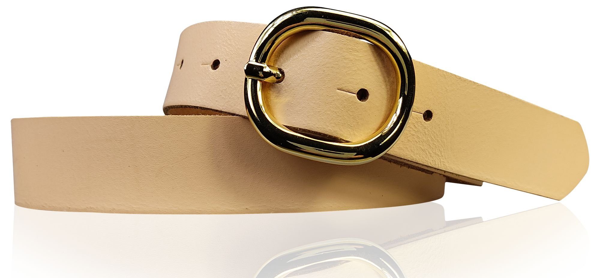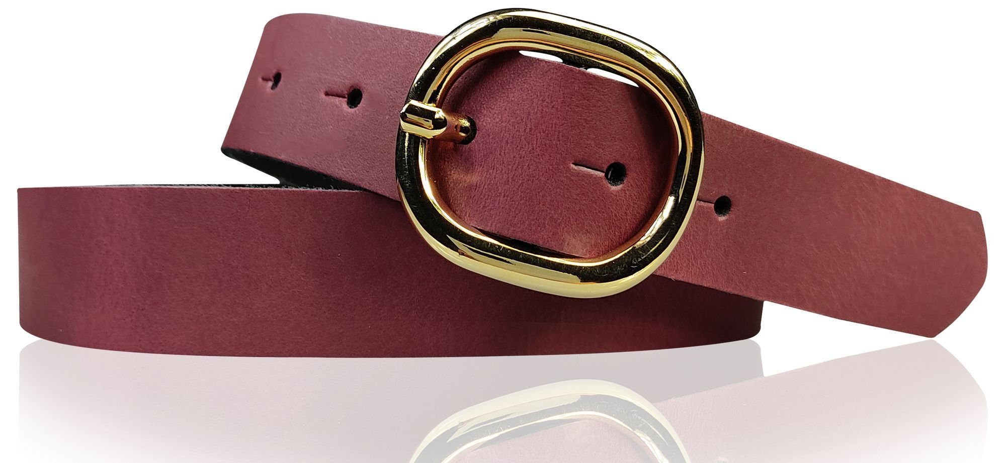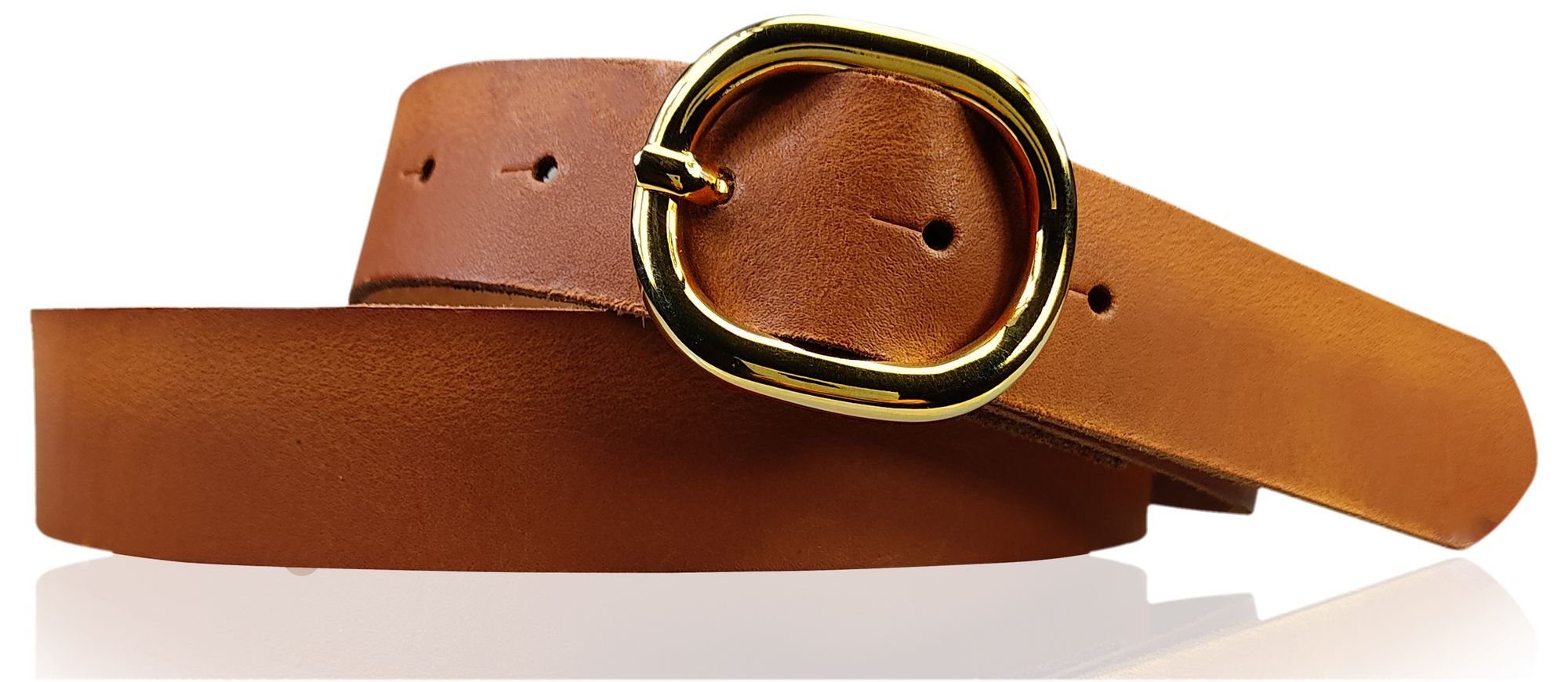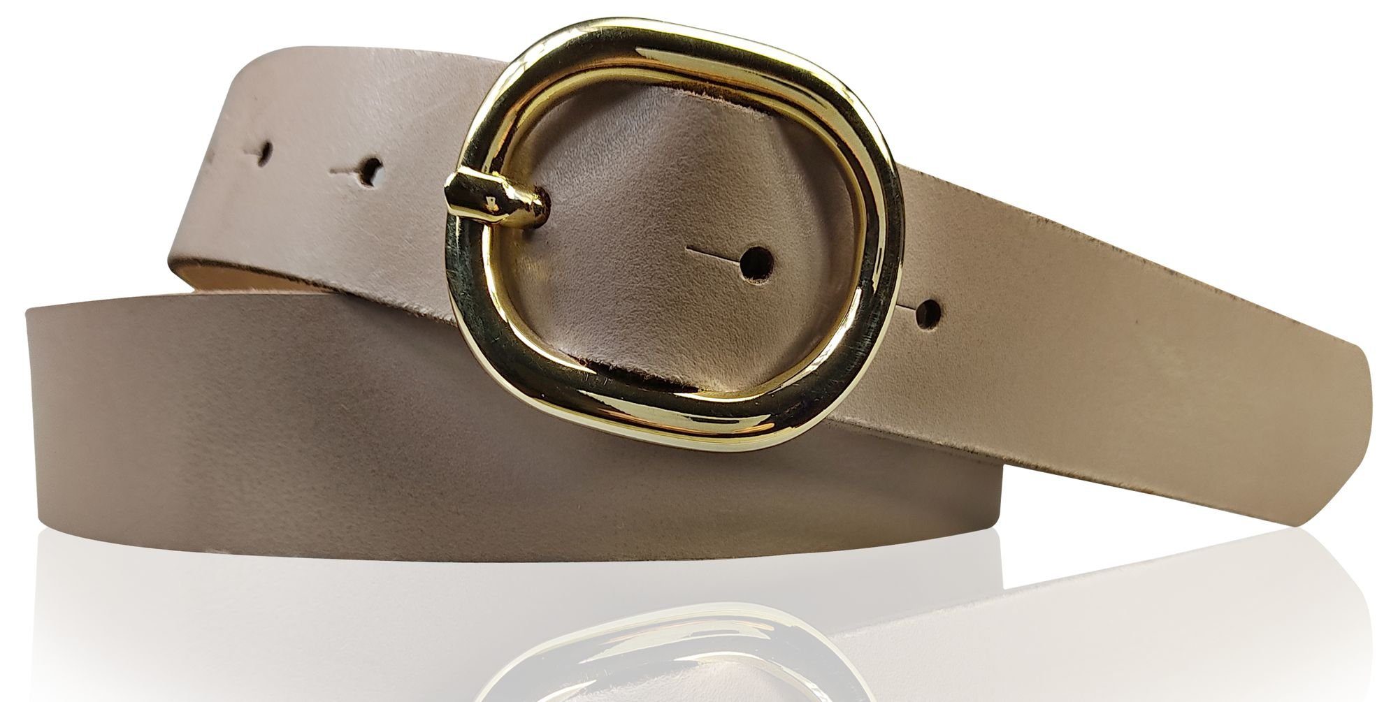 Besondere Merkmale | Damengürtel 3 cm goldene ovale Schnalle, echt Ledergürtel plastikfrei |