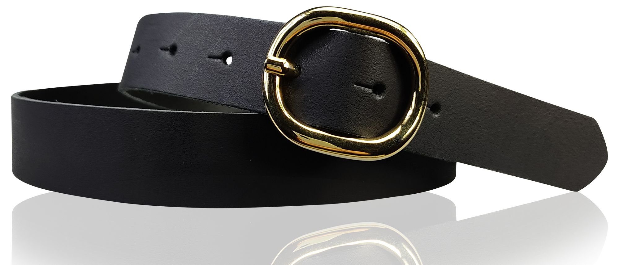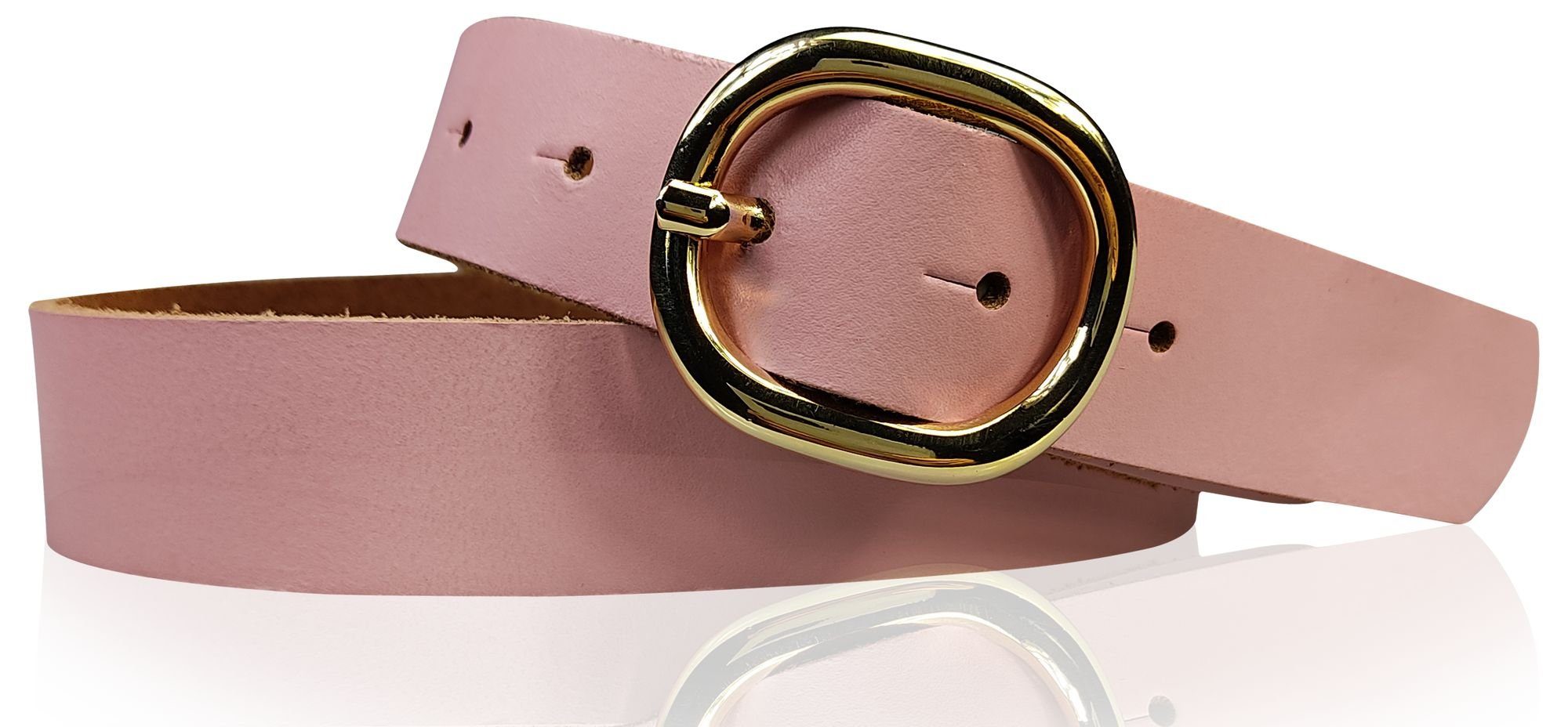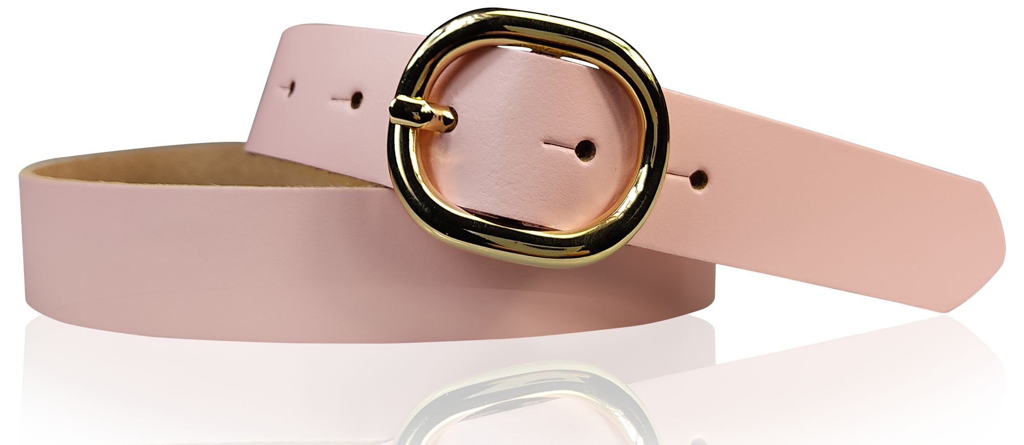 Besondere Merkmale | Damengürtel 3 cm goldene ovale Schnalle, echt Ledergürtel plastikfrei |