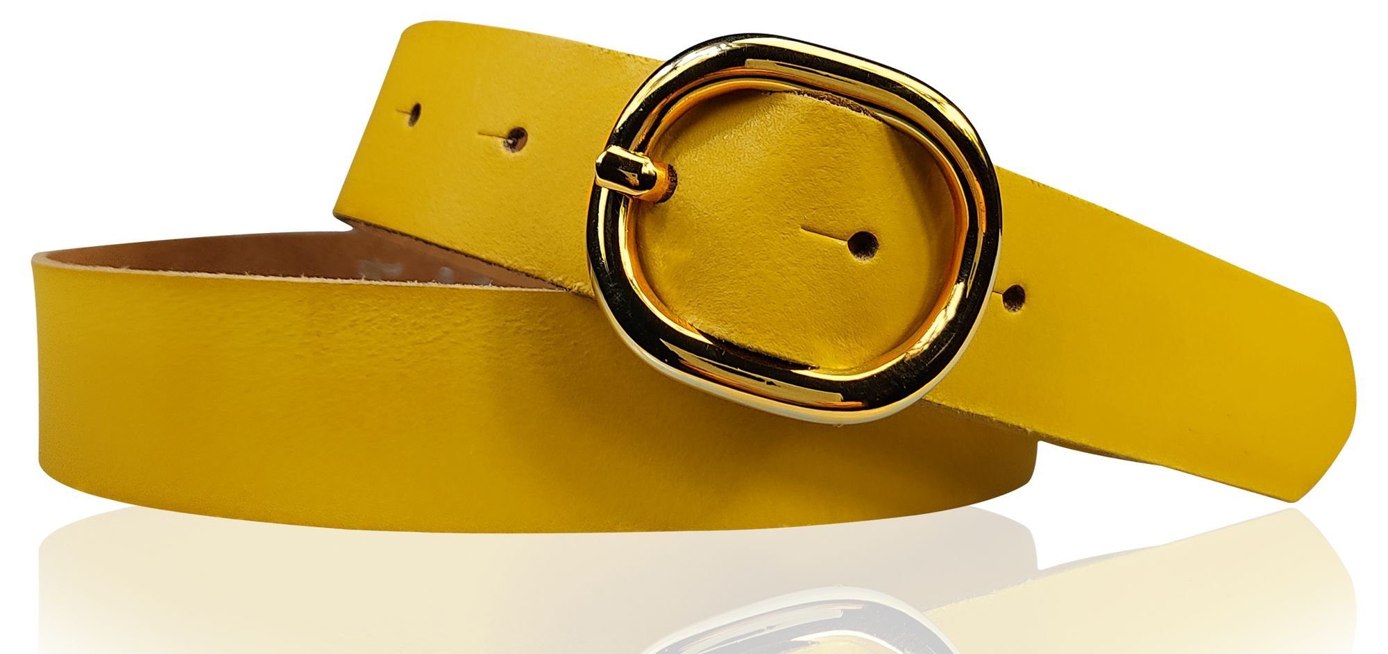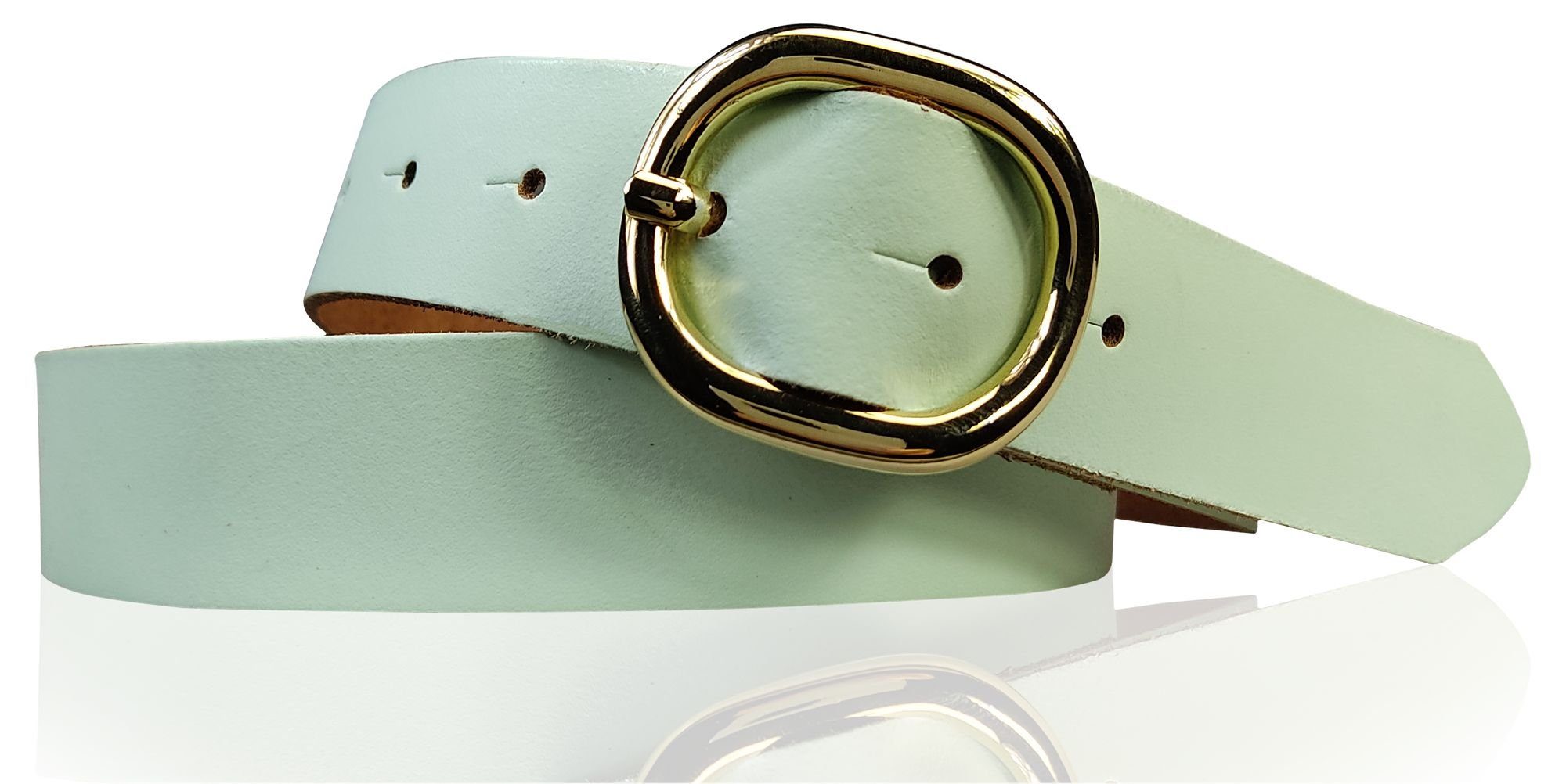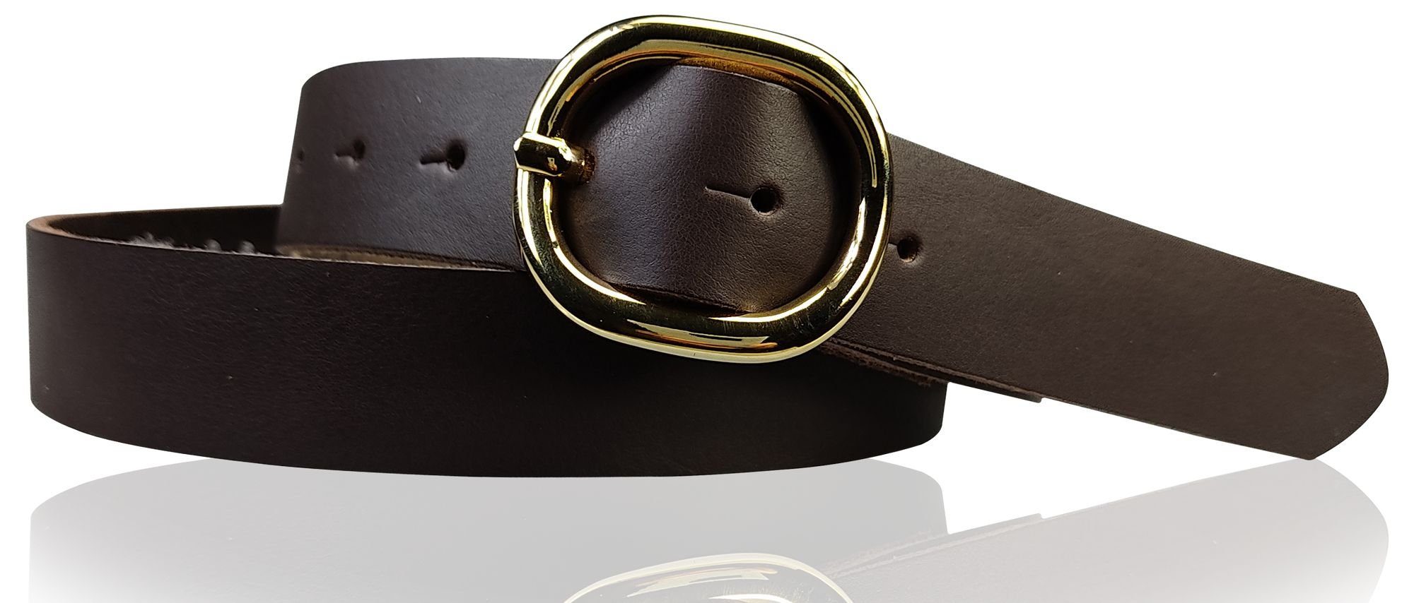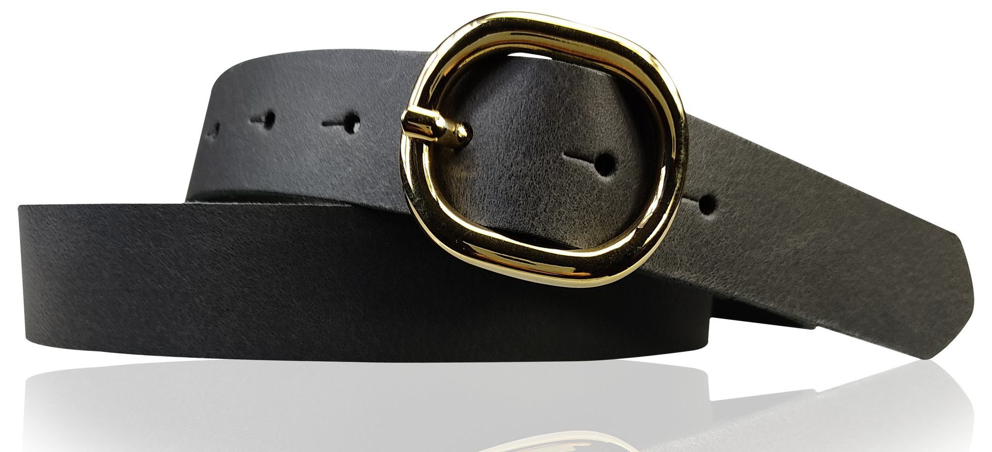 Besondere Merkmale | Damengürtel 3 cm goldene ovale Schnalle, echt Ledergürtel plastikfrei |