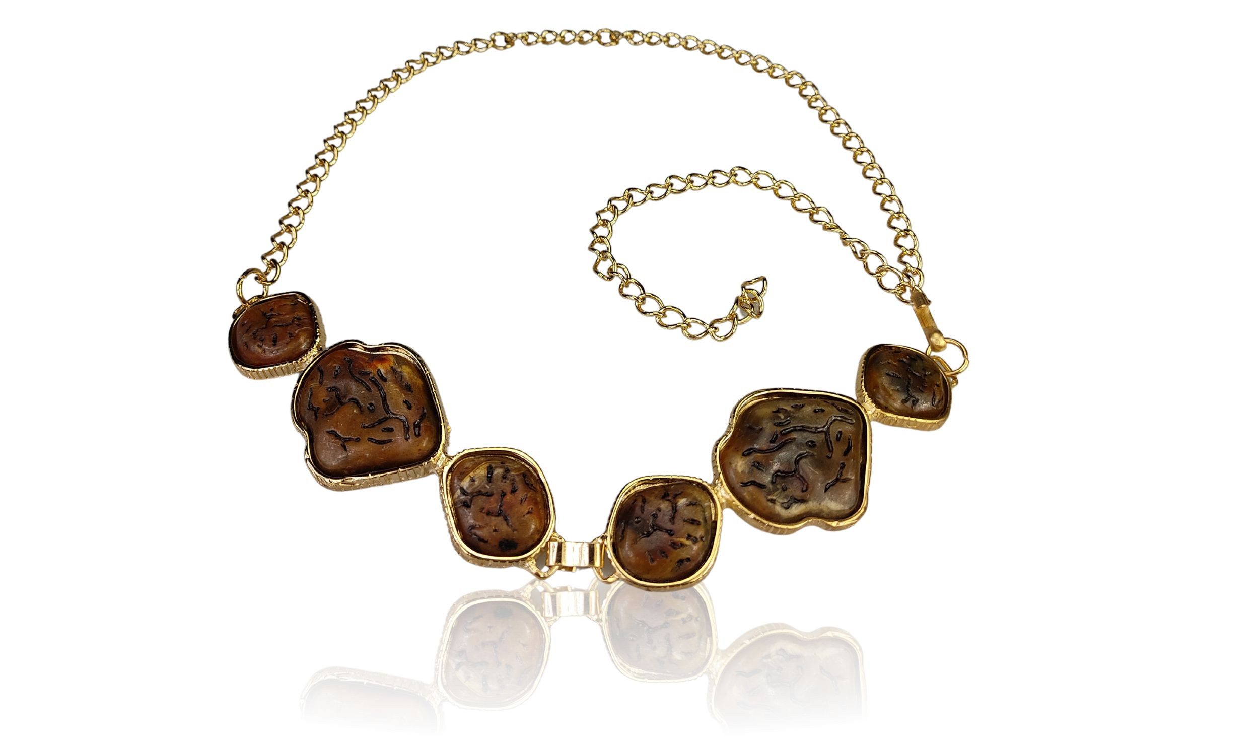 Toller Kettengürtel in gold mit großen Ziersteinen in Bernsteinoptik. Beliebig verstellbar mit einem Karabinerhaken. Gesamtlänge 110 cm, tragbar bis Размер 105 cm Körperumfang. Auch einfach kürzbar.
