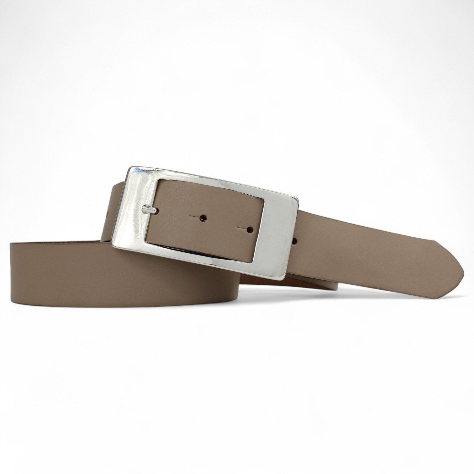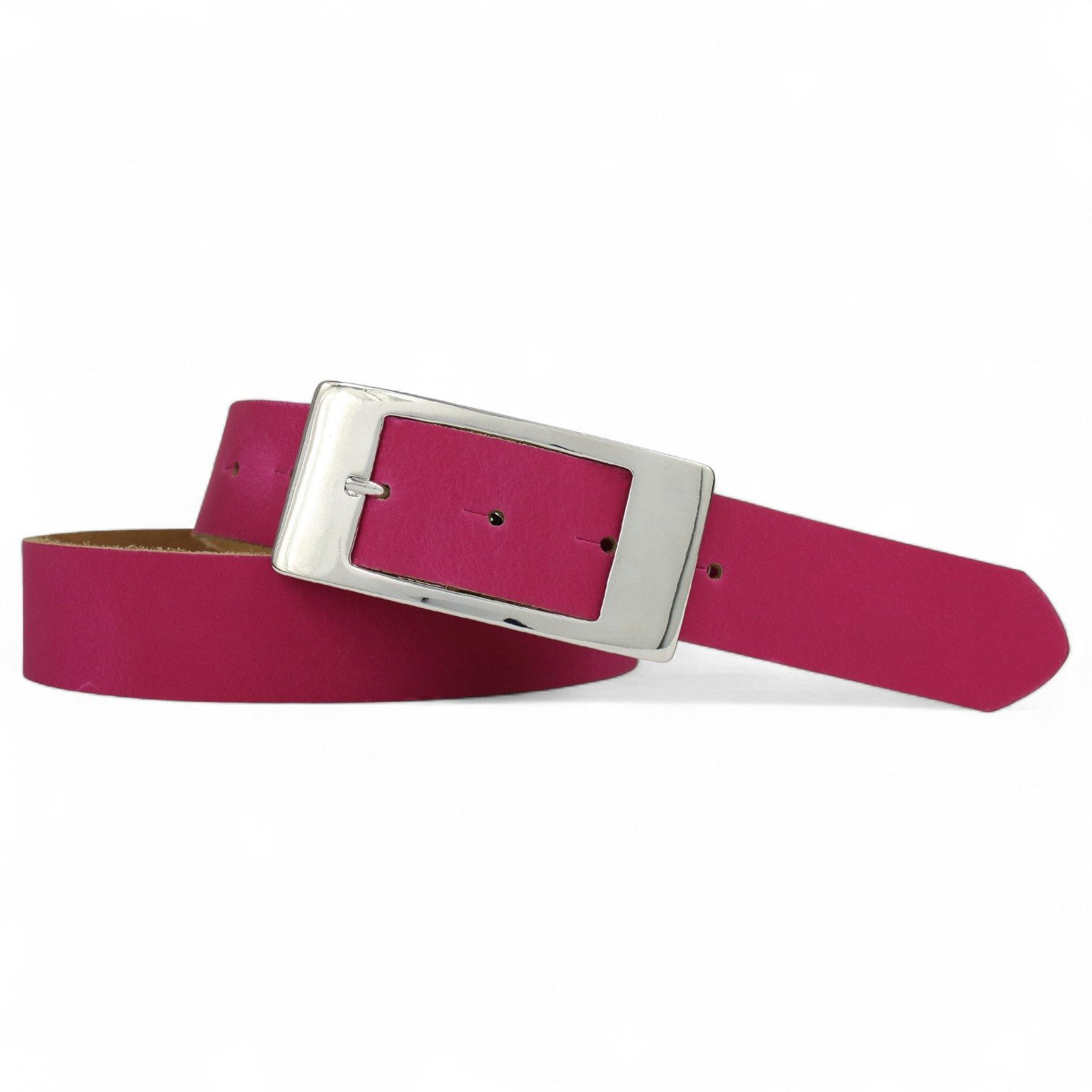 Klassischer Damengürtel aus echtem Rindsleder in vielen Farben erhältlich. Die Gürtelschnalle wirkt modisch edel im matten Silberfinish. Ein dankbarer Gürtel, gut zu kombinieren und immer stilsicher.