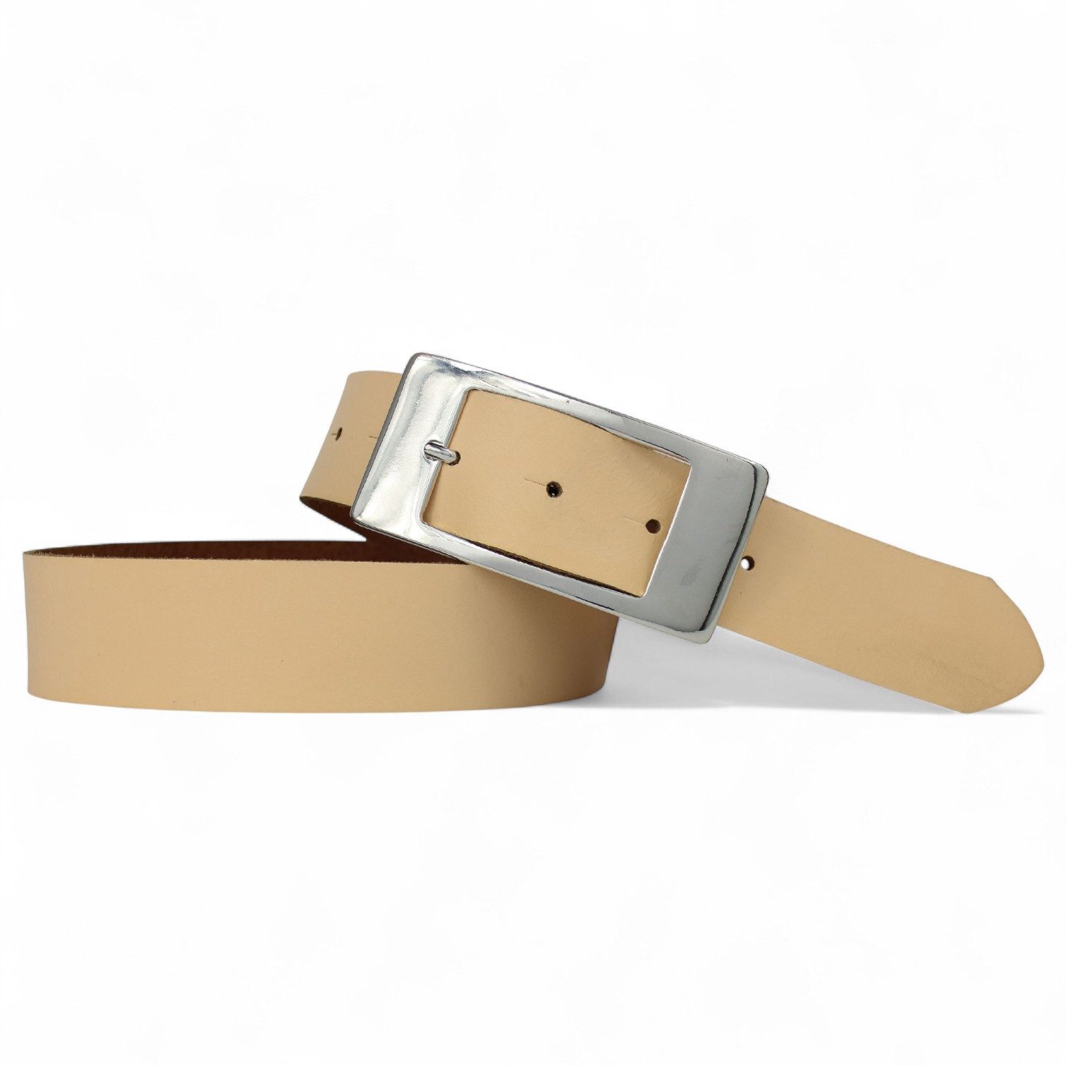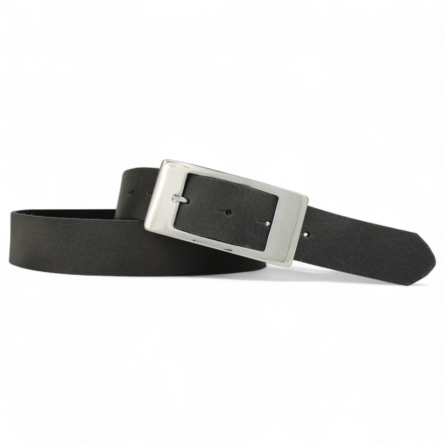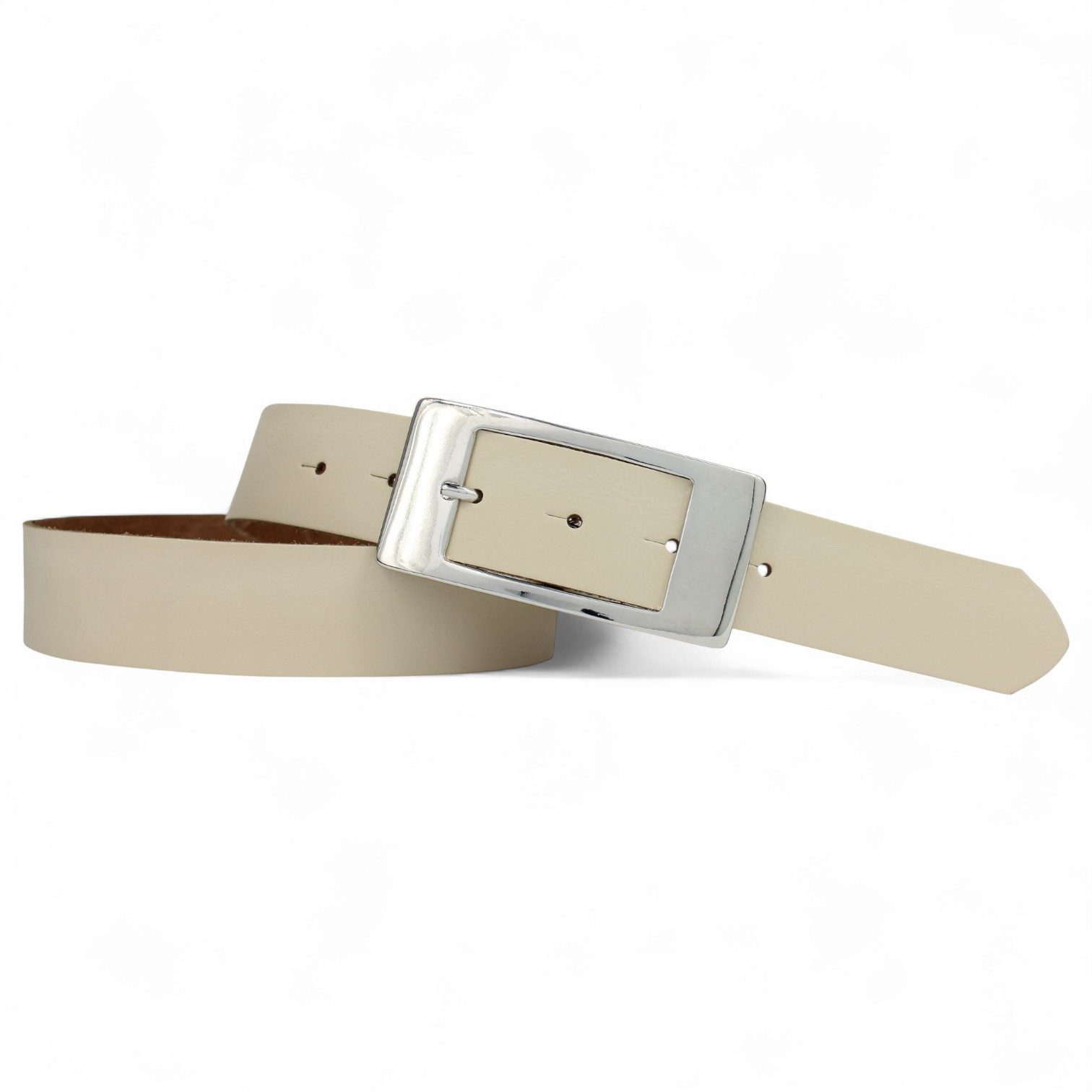 Besondere Merkmale | Damen Ledergürtel ca. 3,5 cm rechteckige glänzende Dornschnalle, Leder |