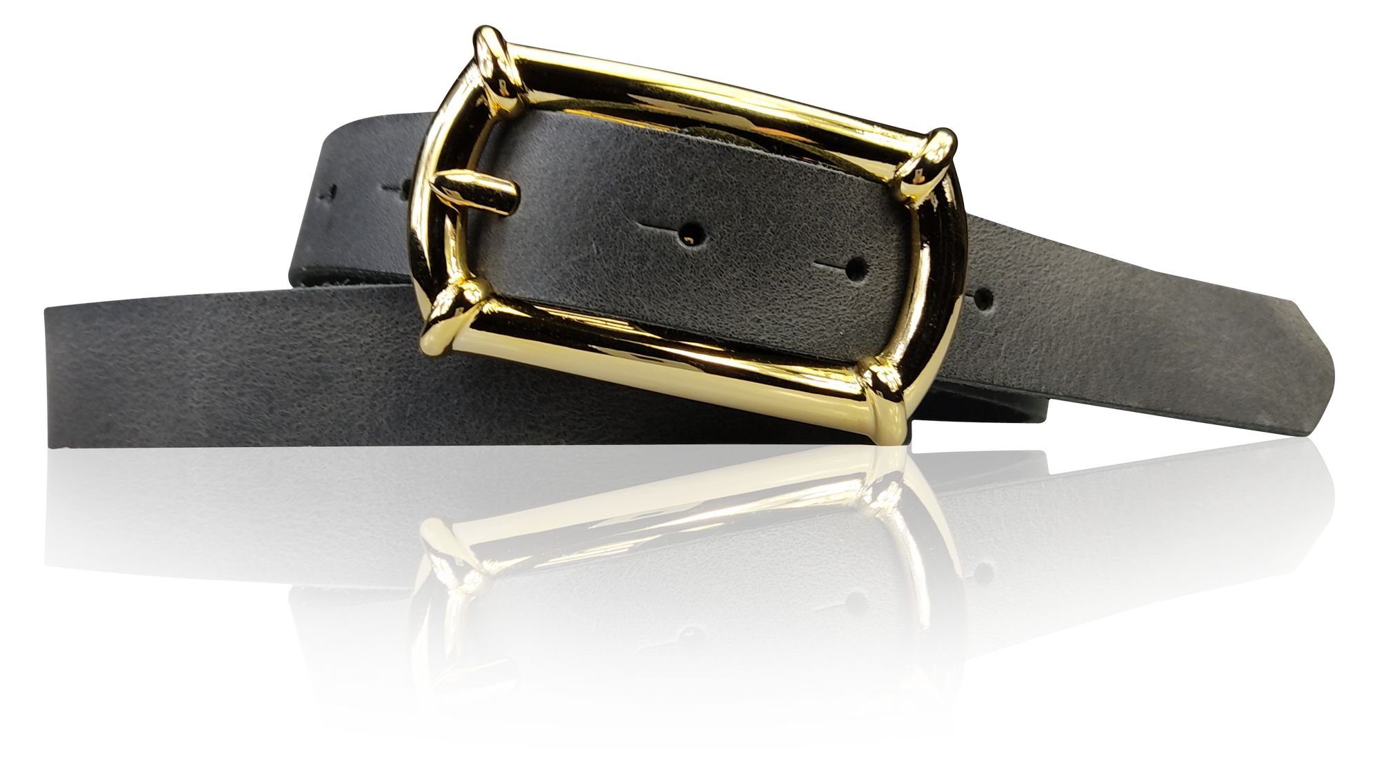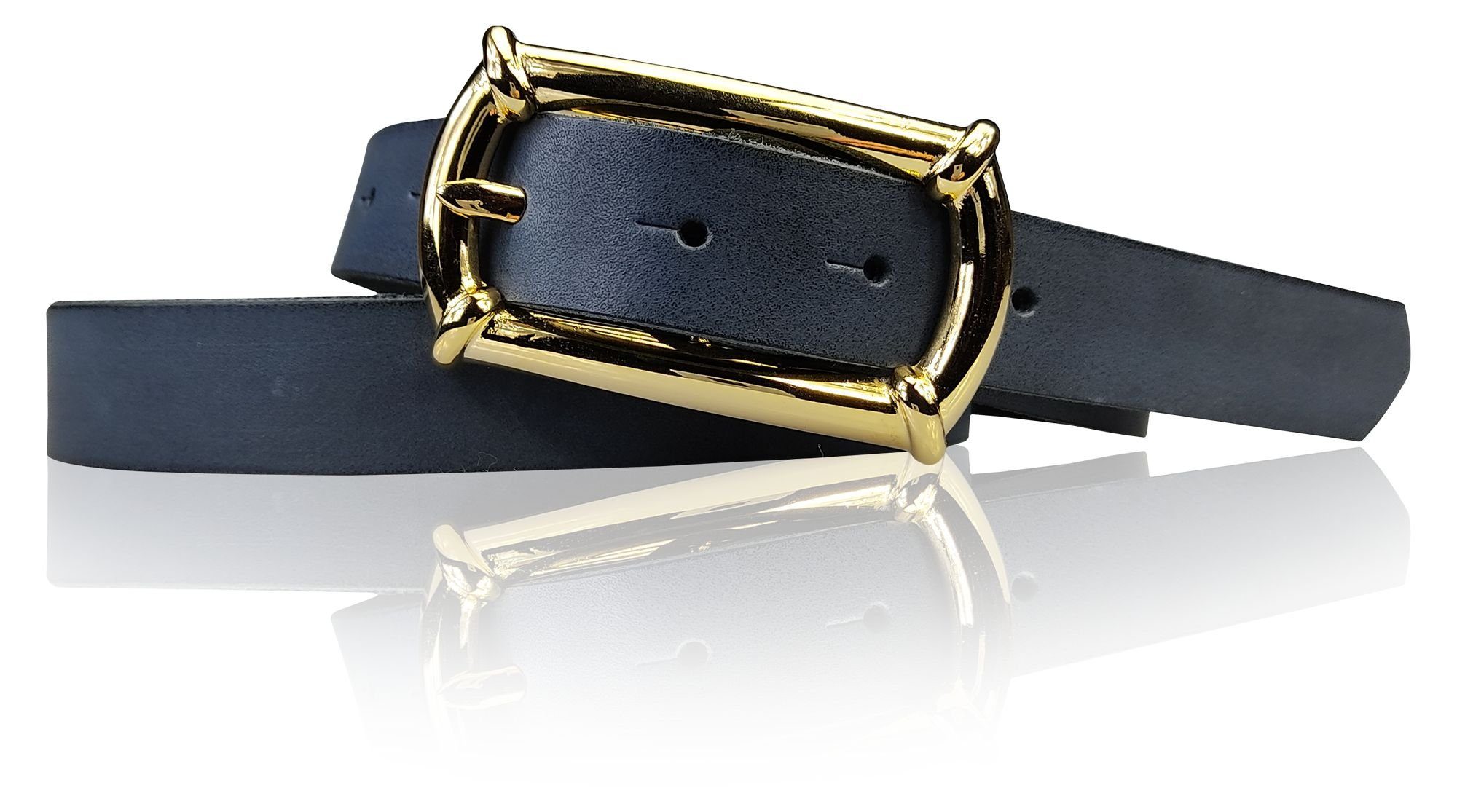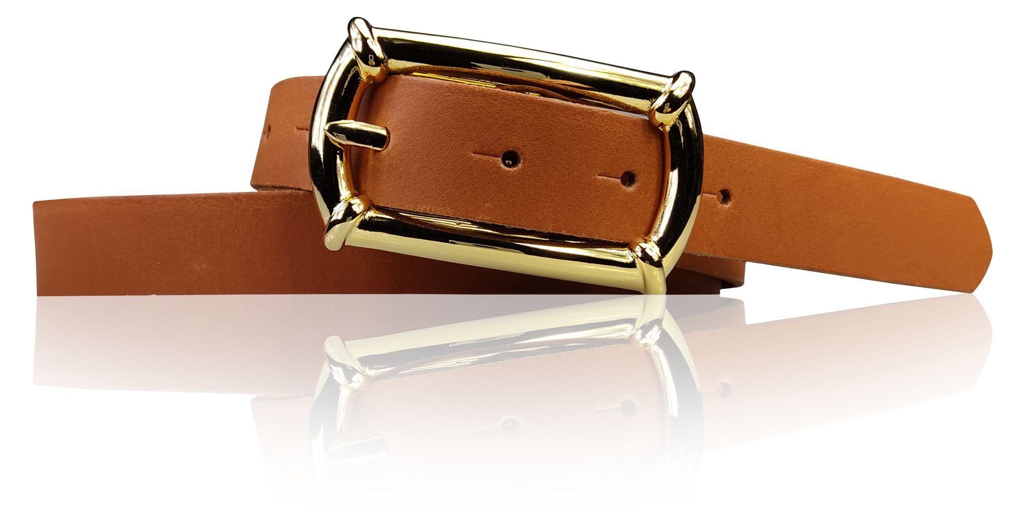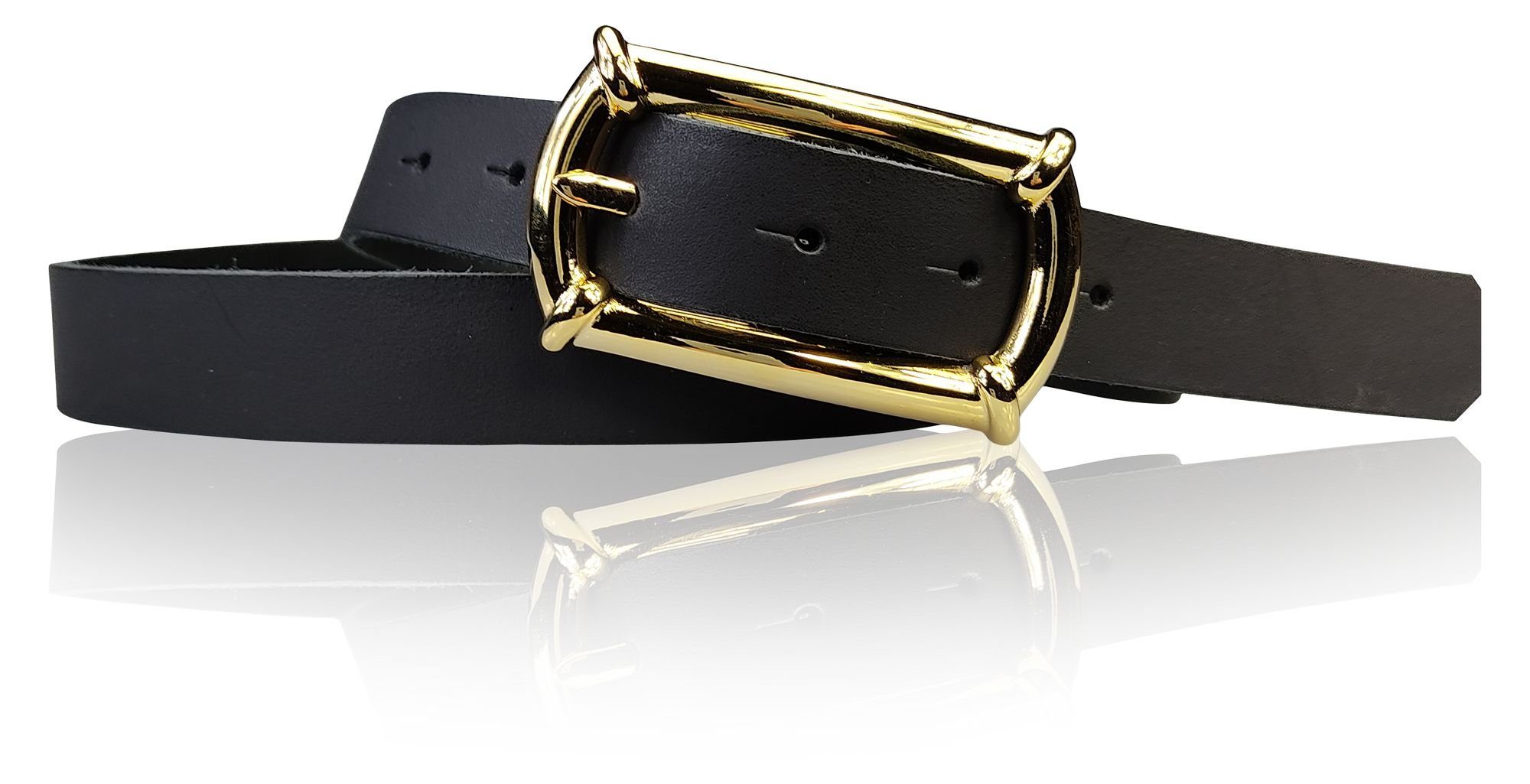 Puristisch, edler Damenledergürtel mit exklusiver, rechteckiger Goldschnalle. Ein Gürtel der zu jedem Outfit passt.