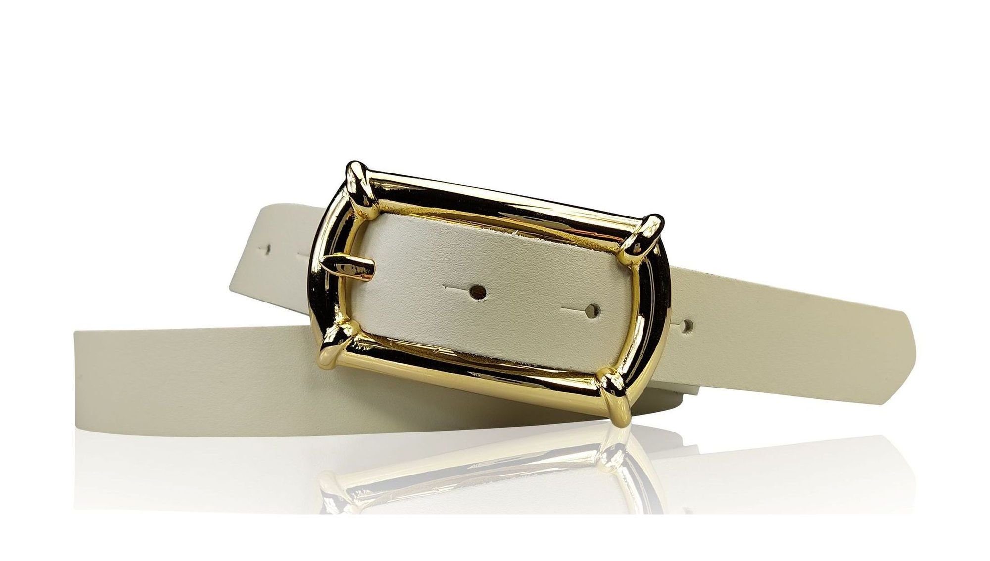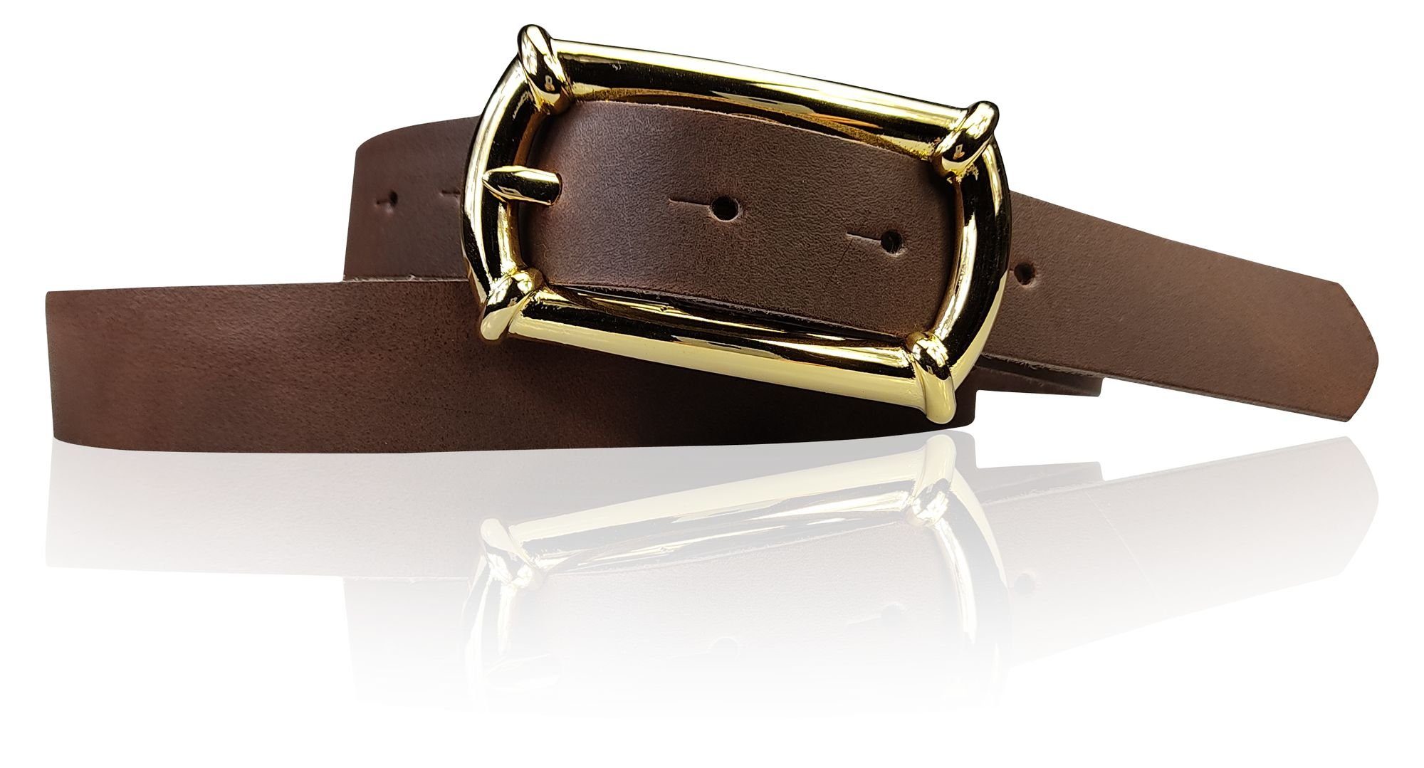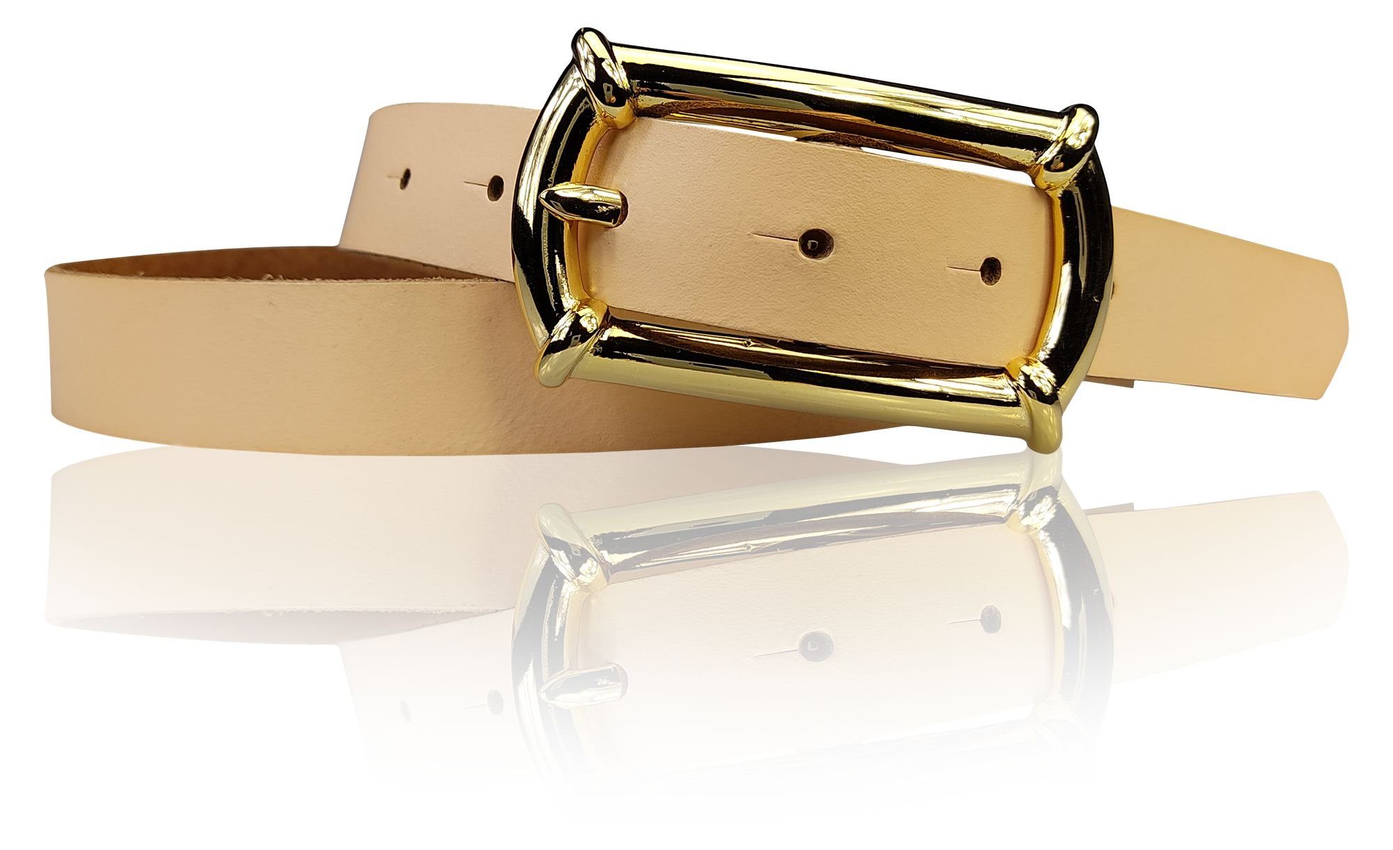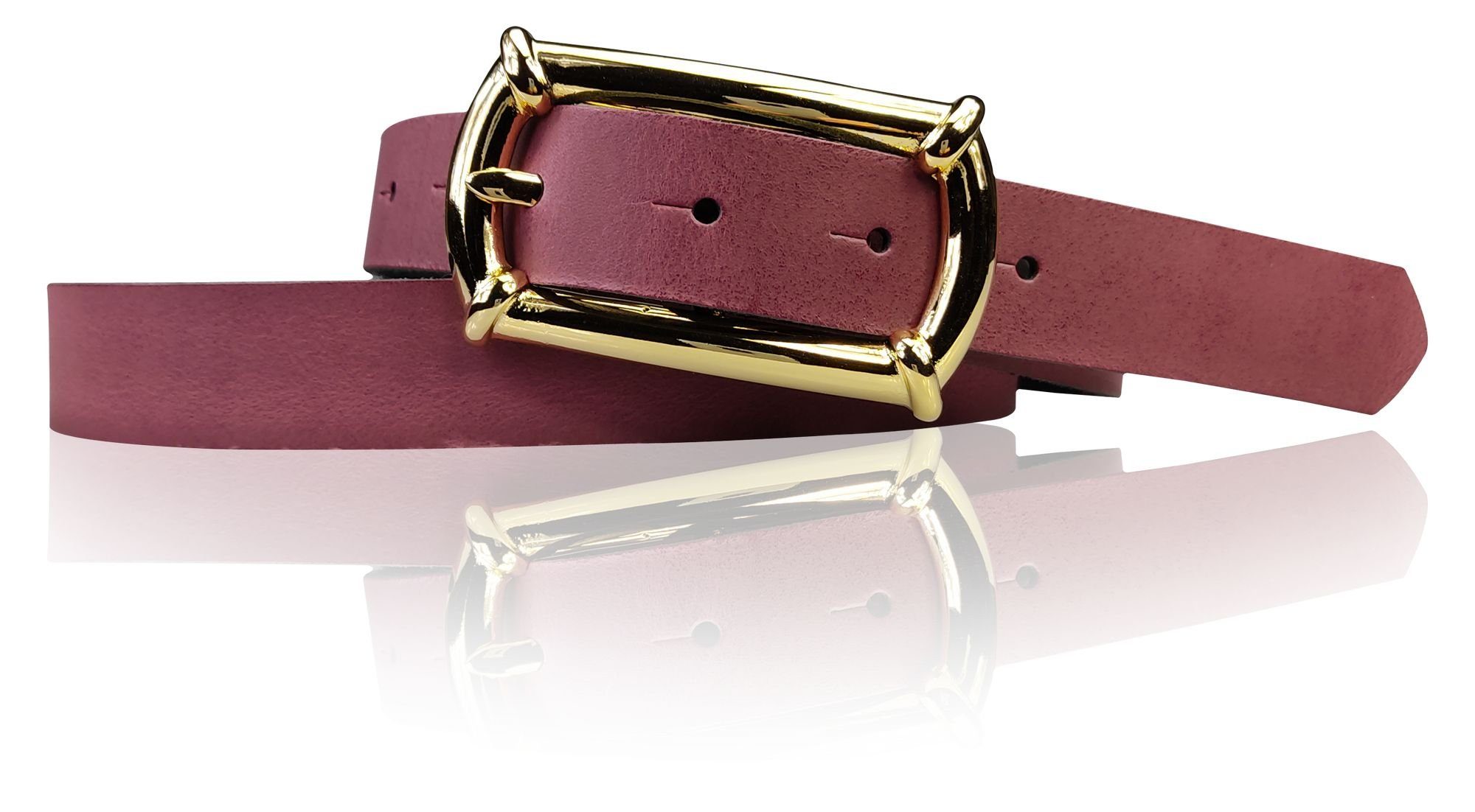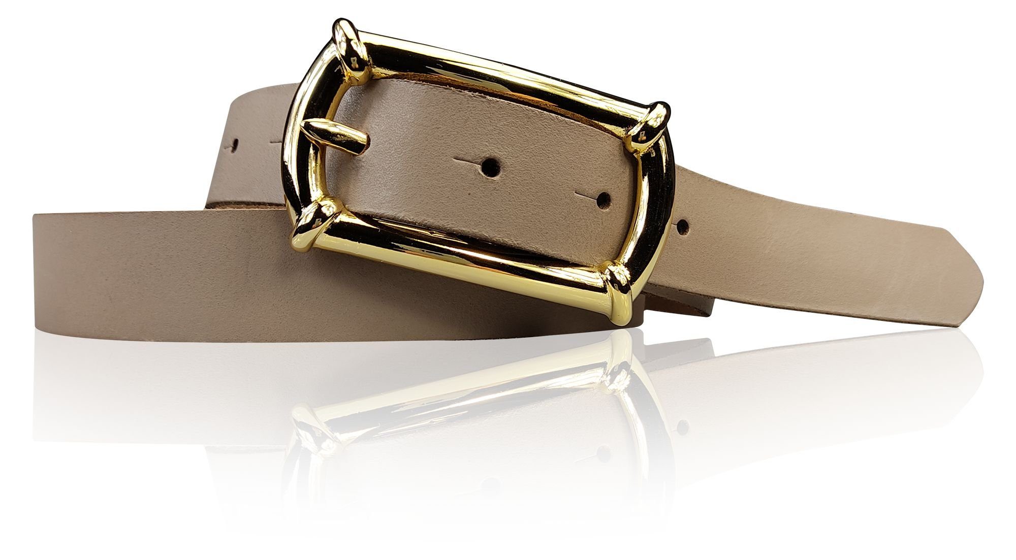 Puristisch, edler Damenledergürtel mit exklusiver, rechteckiger Goldschnalle. Ein Gürtel der zu jedem Outfit passt.