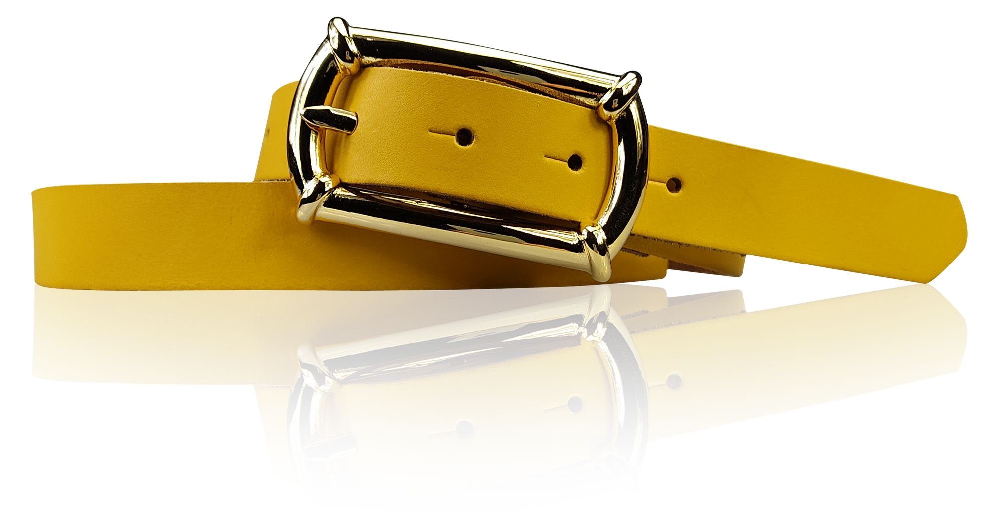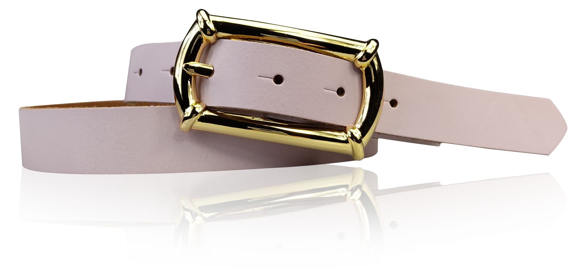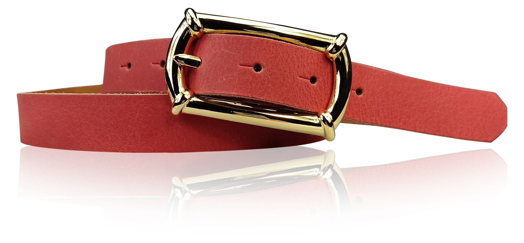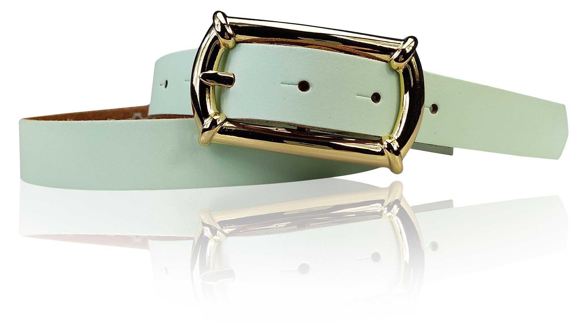 Puristisch, edler Damenledergürtel mit exklusiver, rechteckiger Goldschnalle. Ein Gürtel der zu jedem Outfit passt.