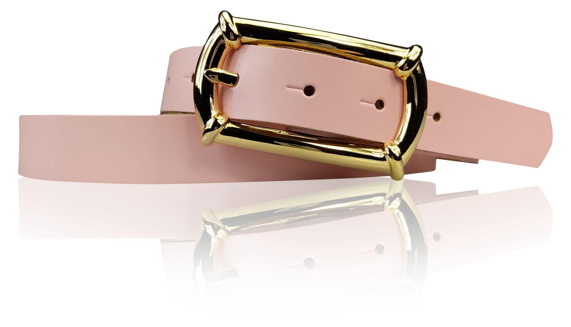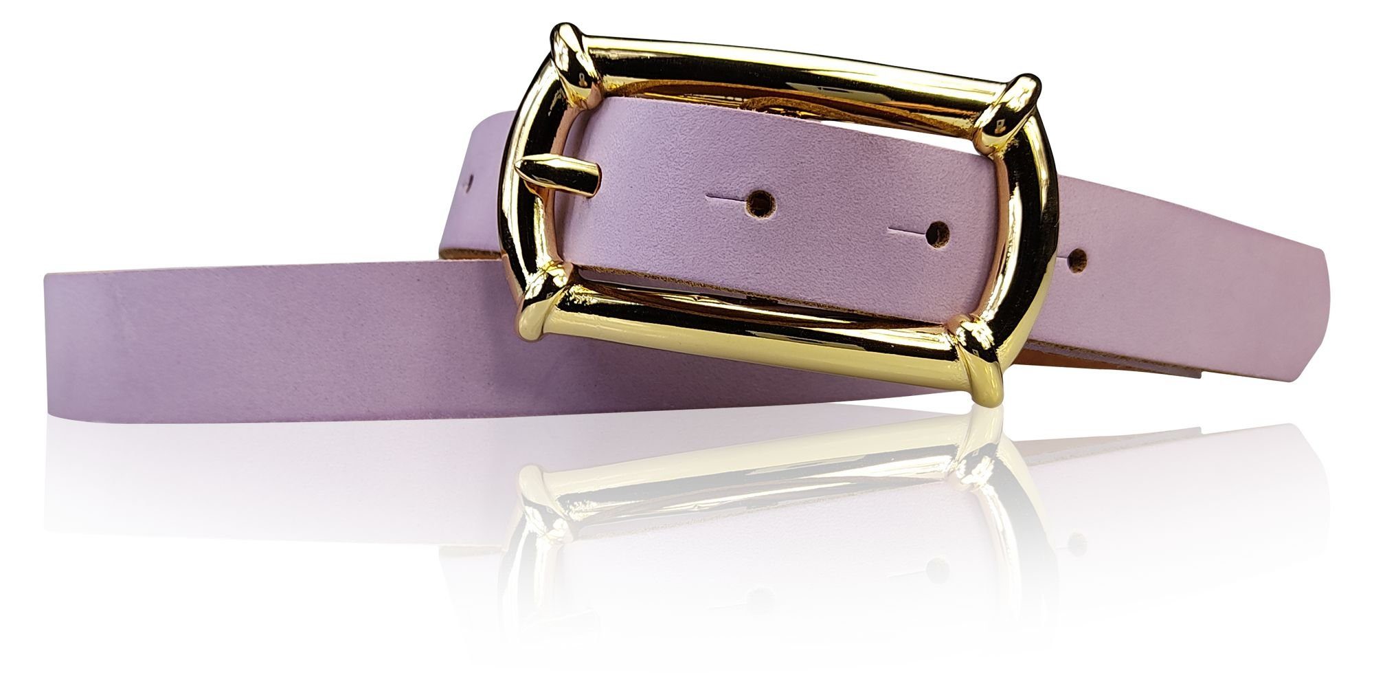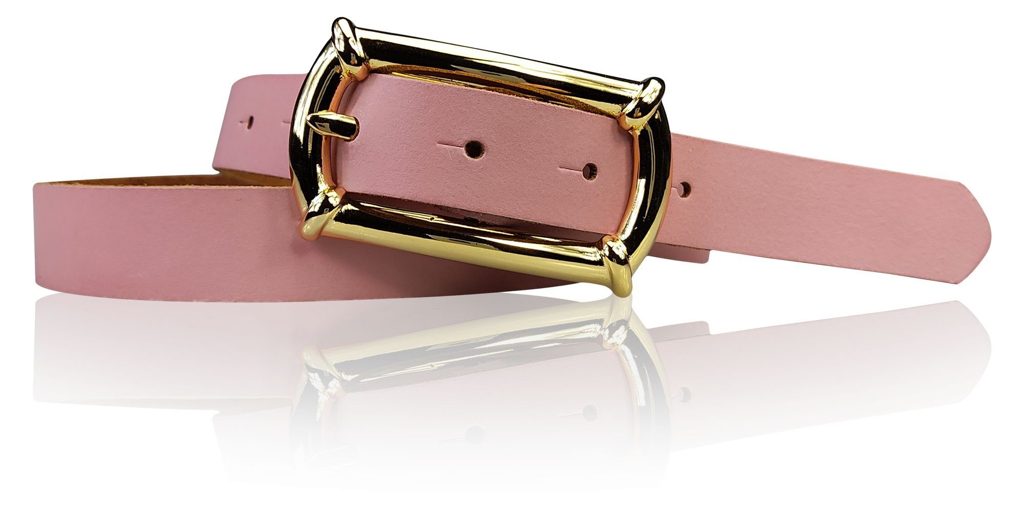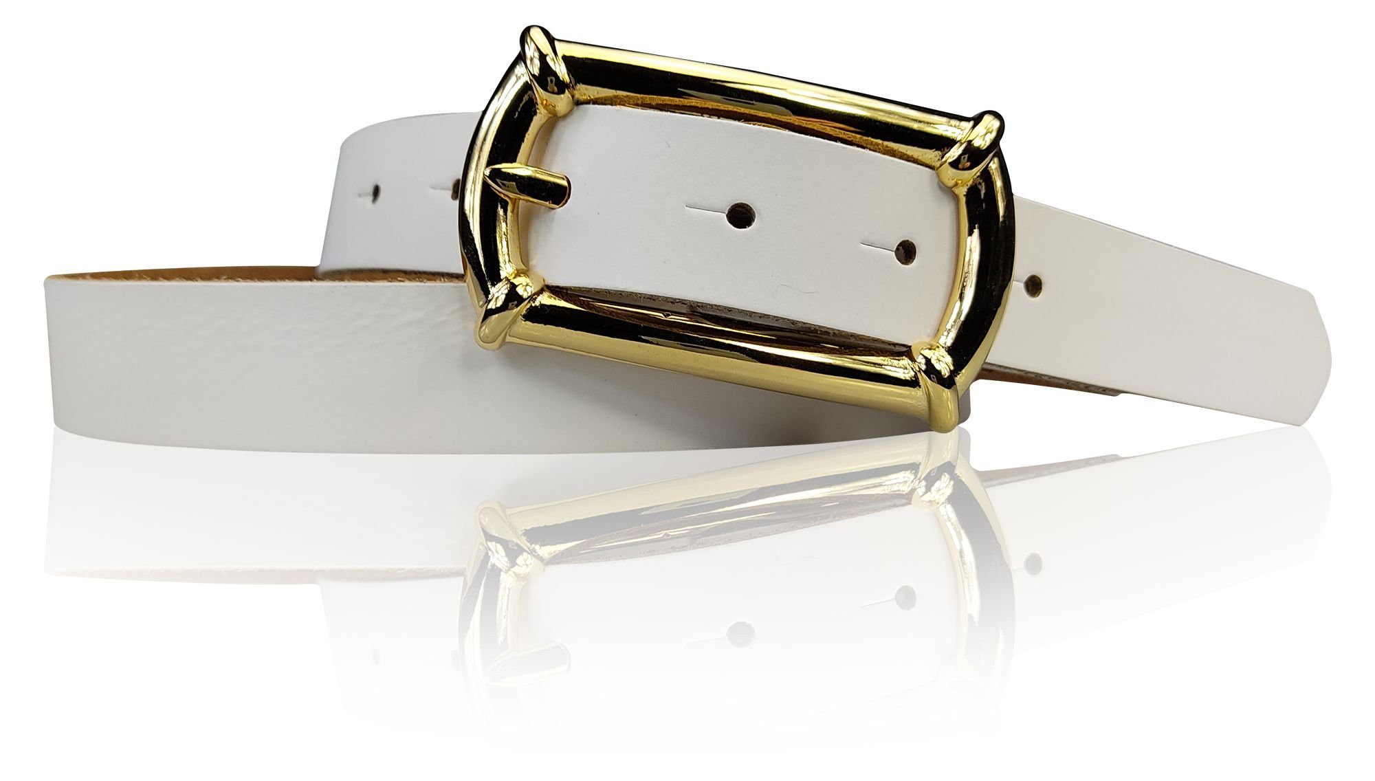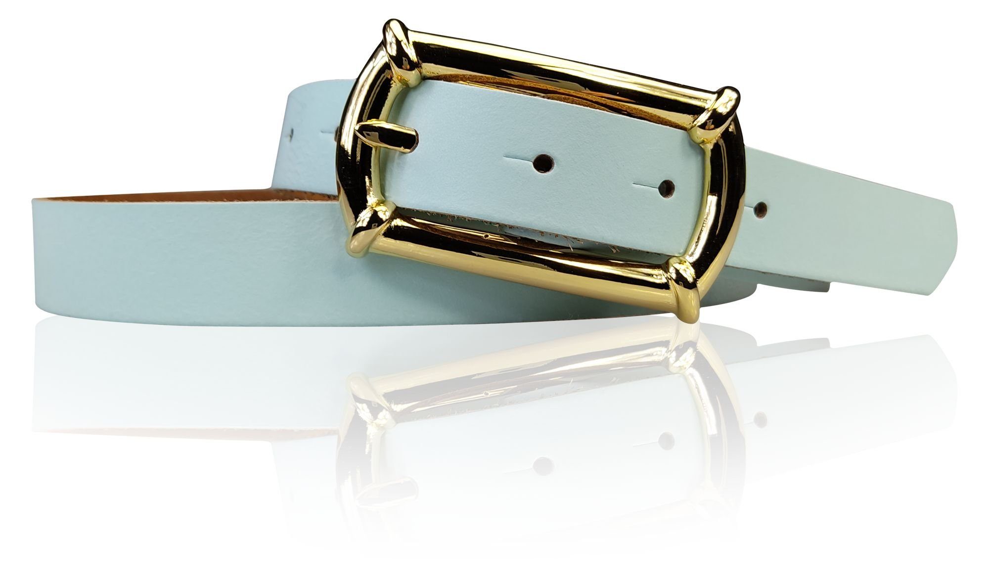Puristisch, edler Damenledergürtel mit exklusiver, rechteckiger Goldschnalle. Ein Gürtel der zu jedem Outfit passt.