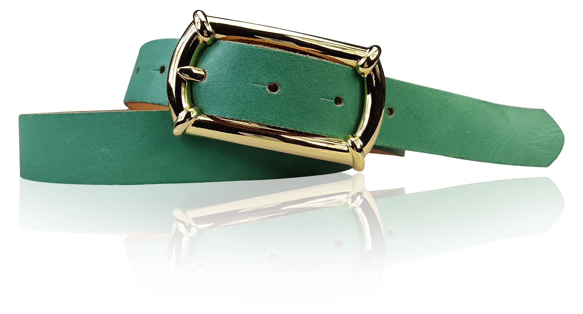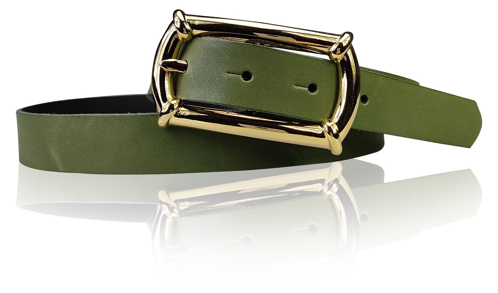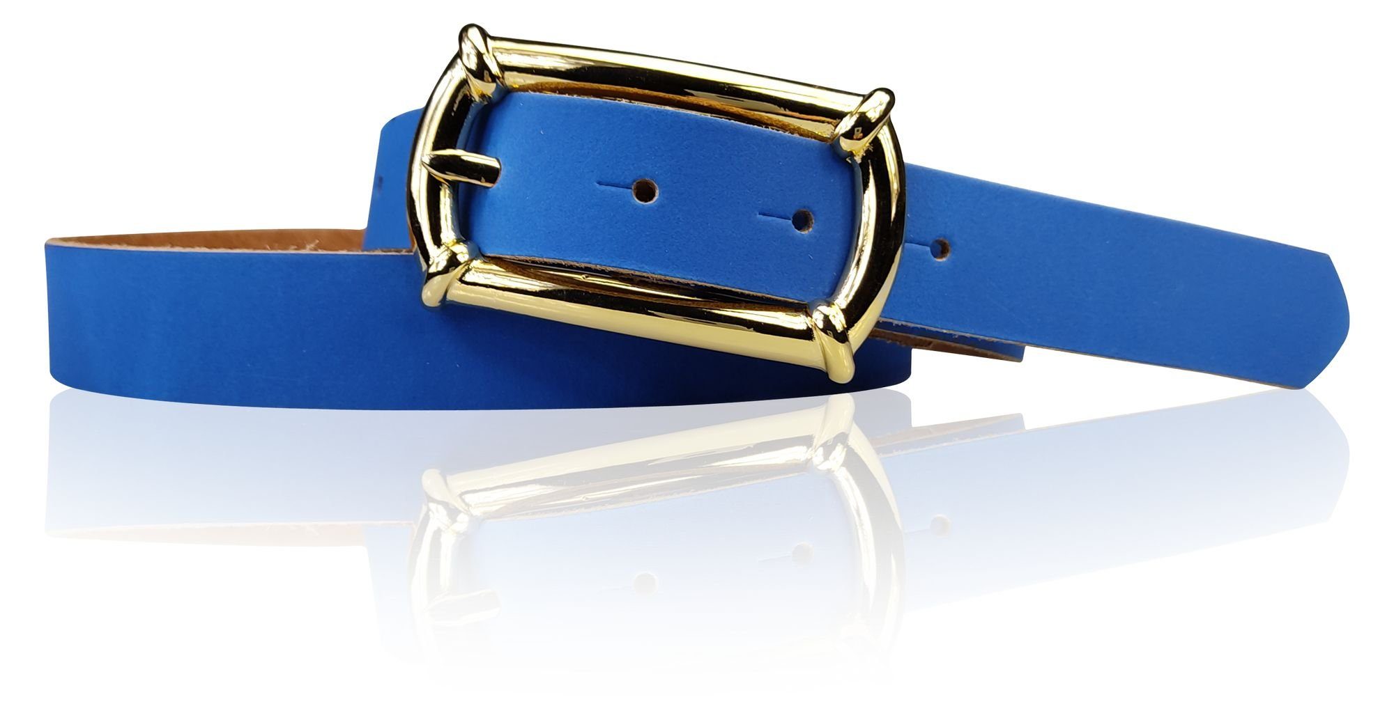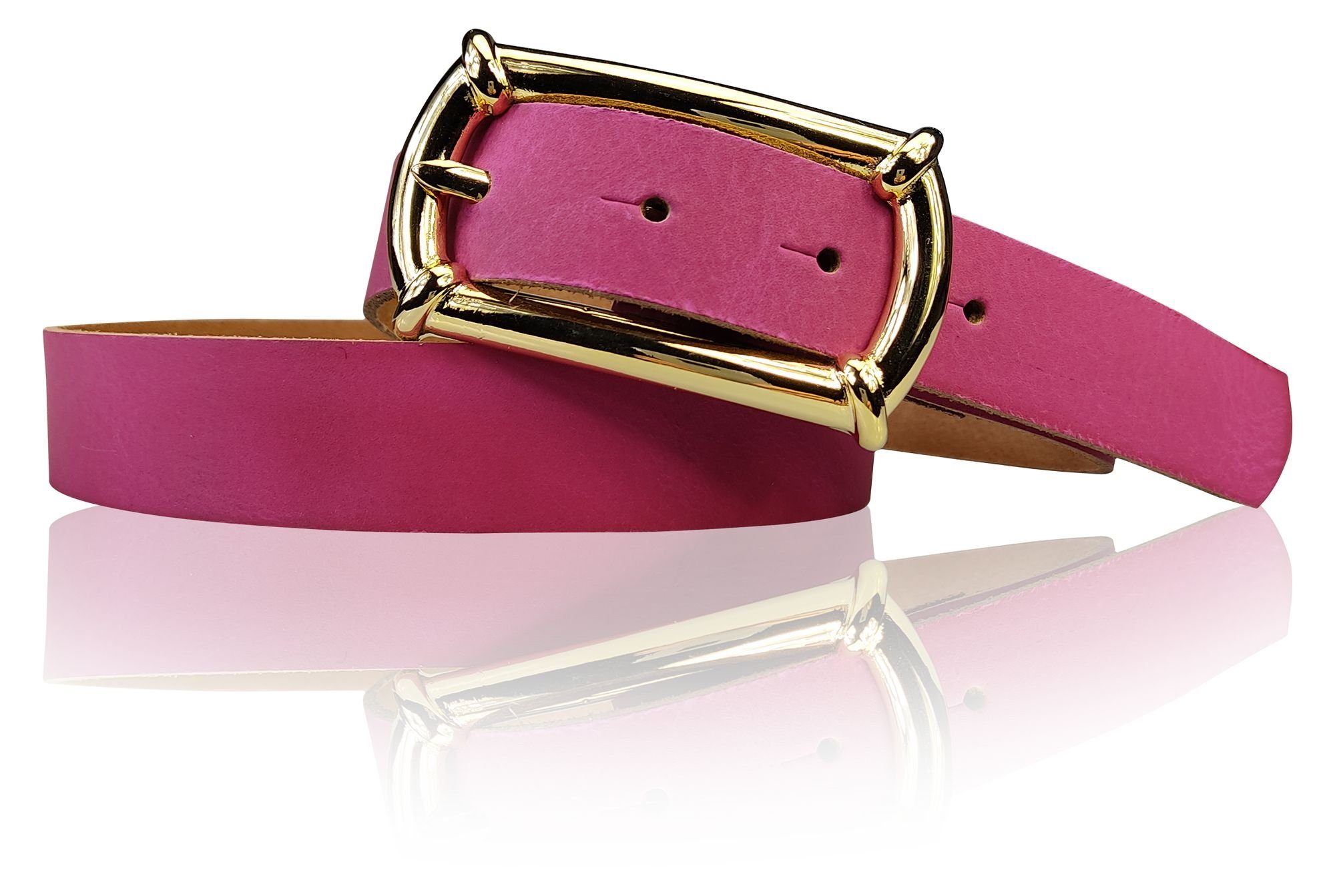 Puristisch, edler Damenledergürtel mit exklusiver, rechteckiger Goldschnalle. Ein Gürtel der zu jedem Outfit passt.