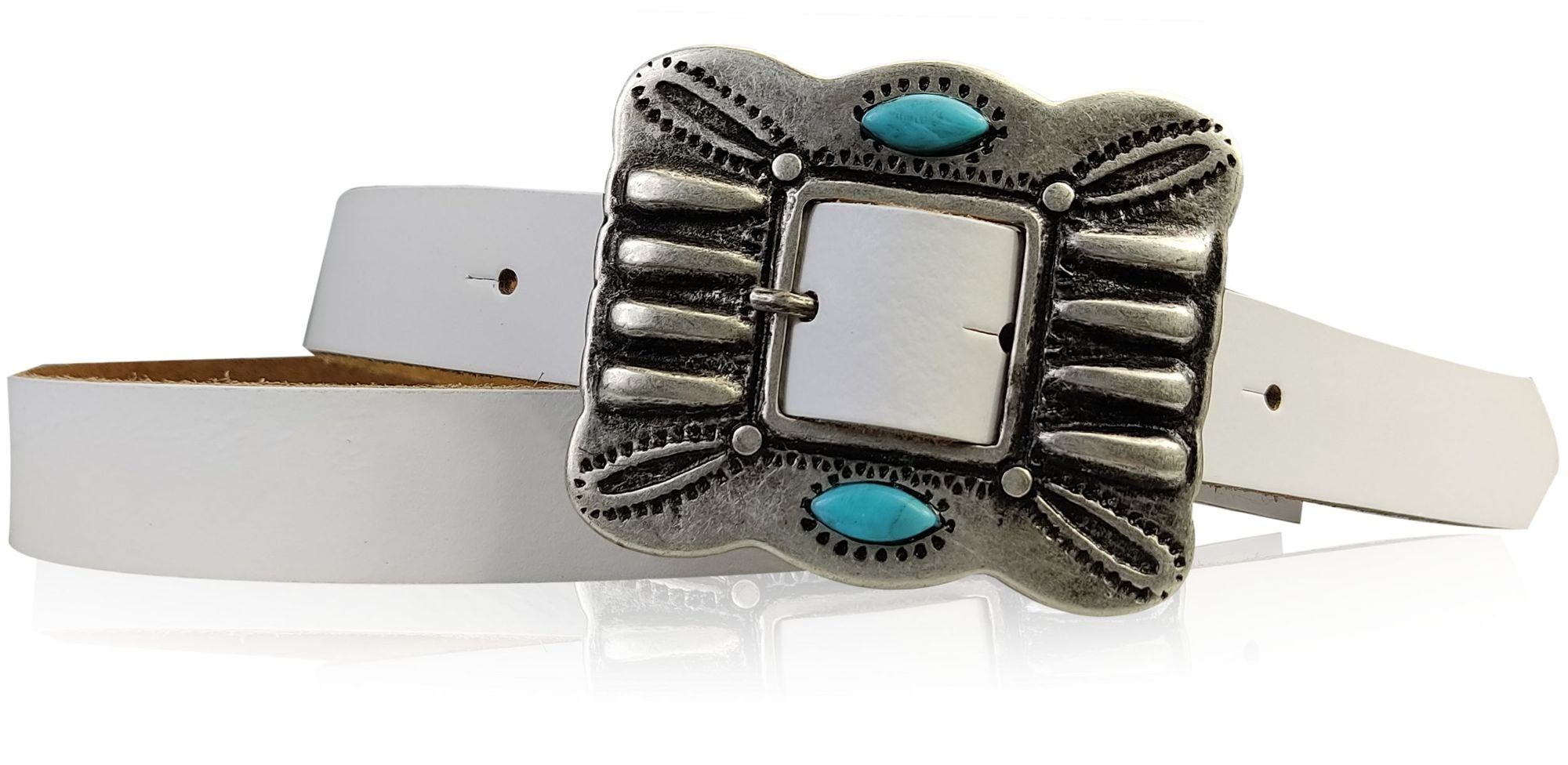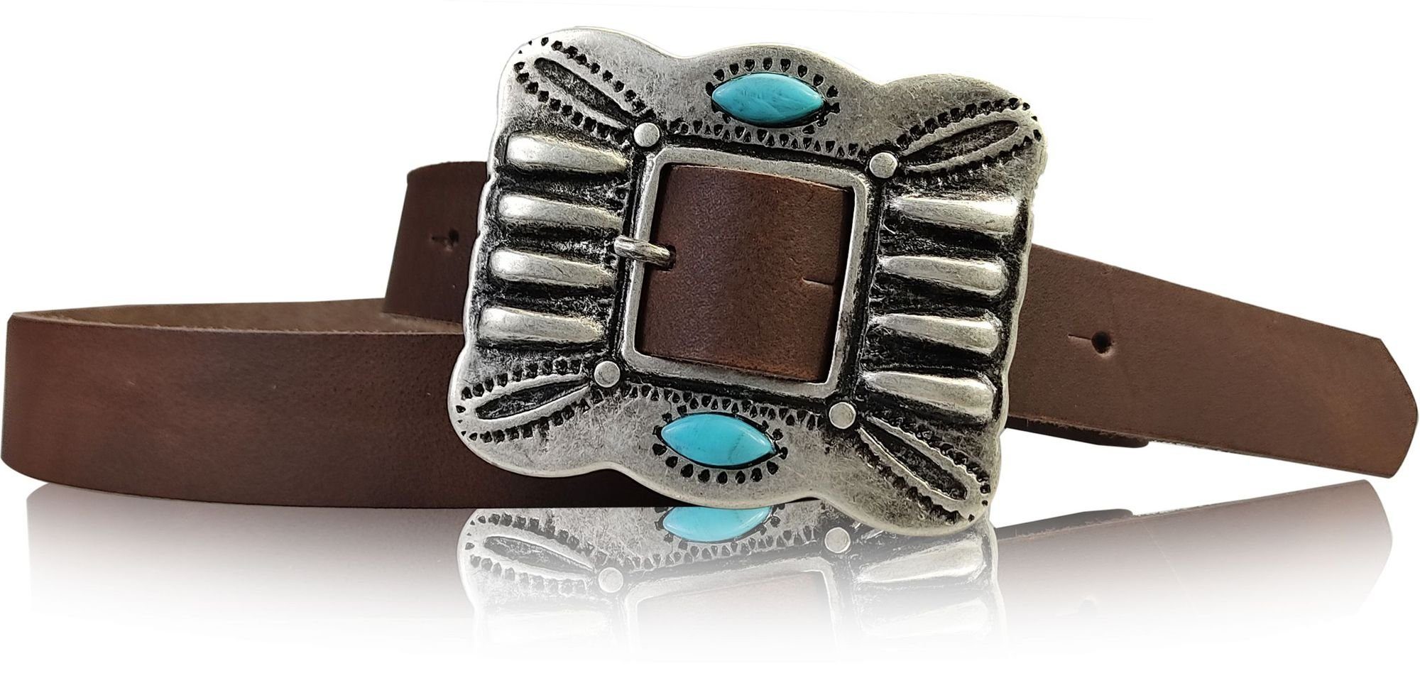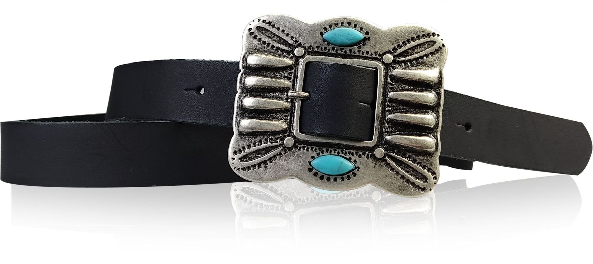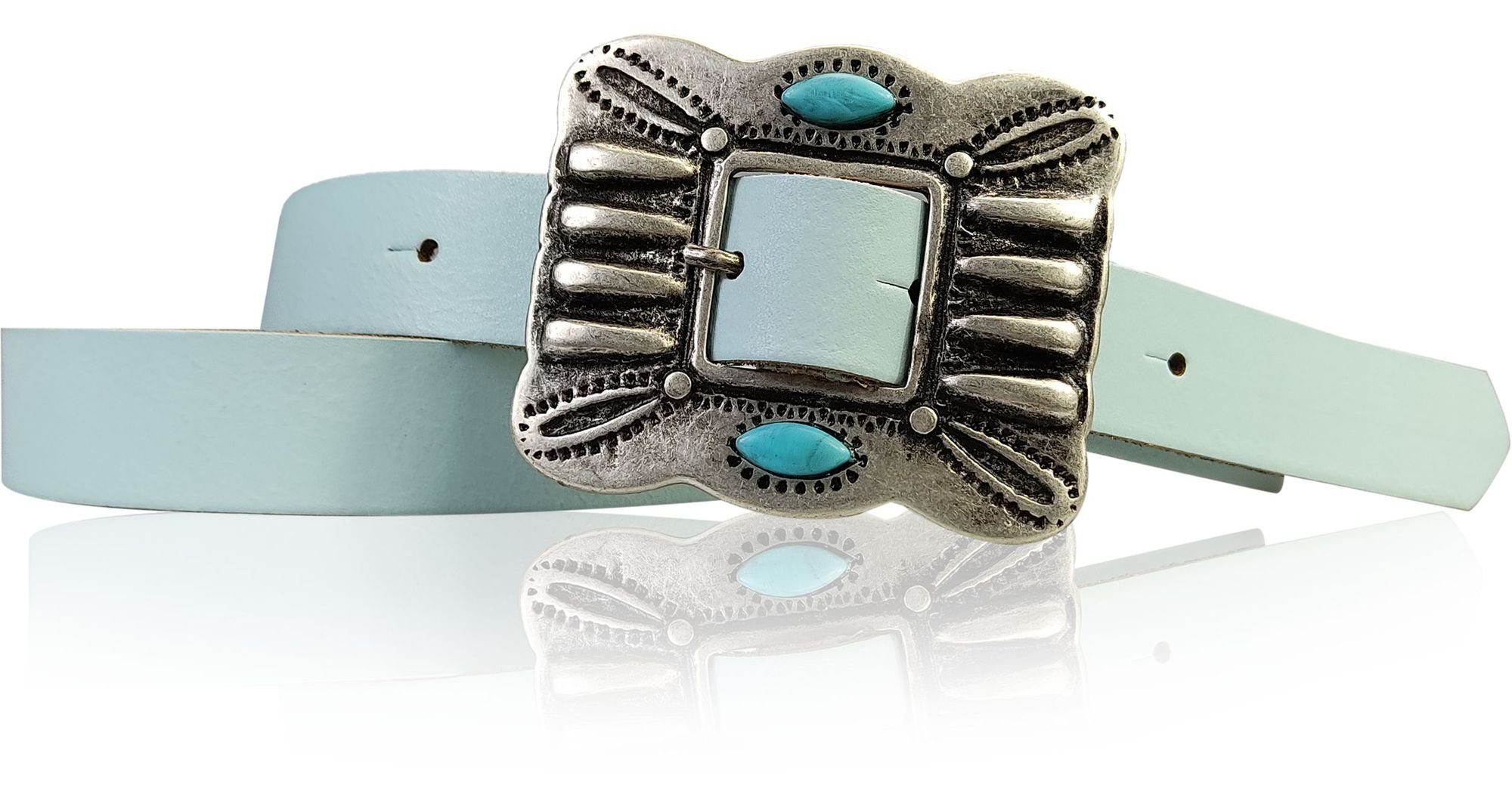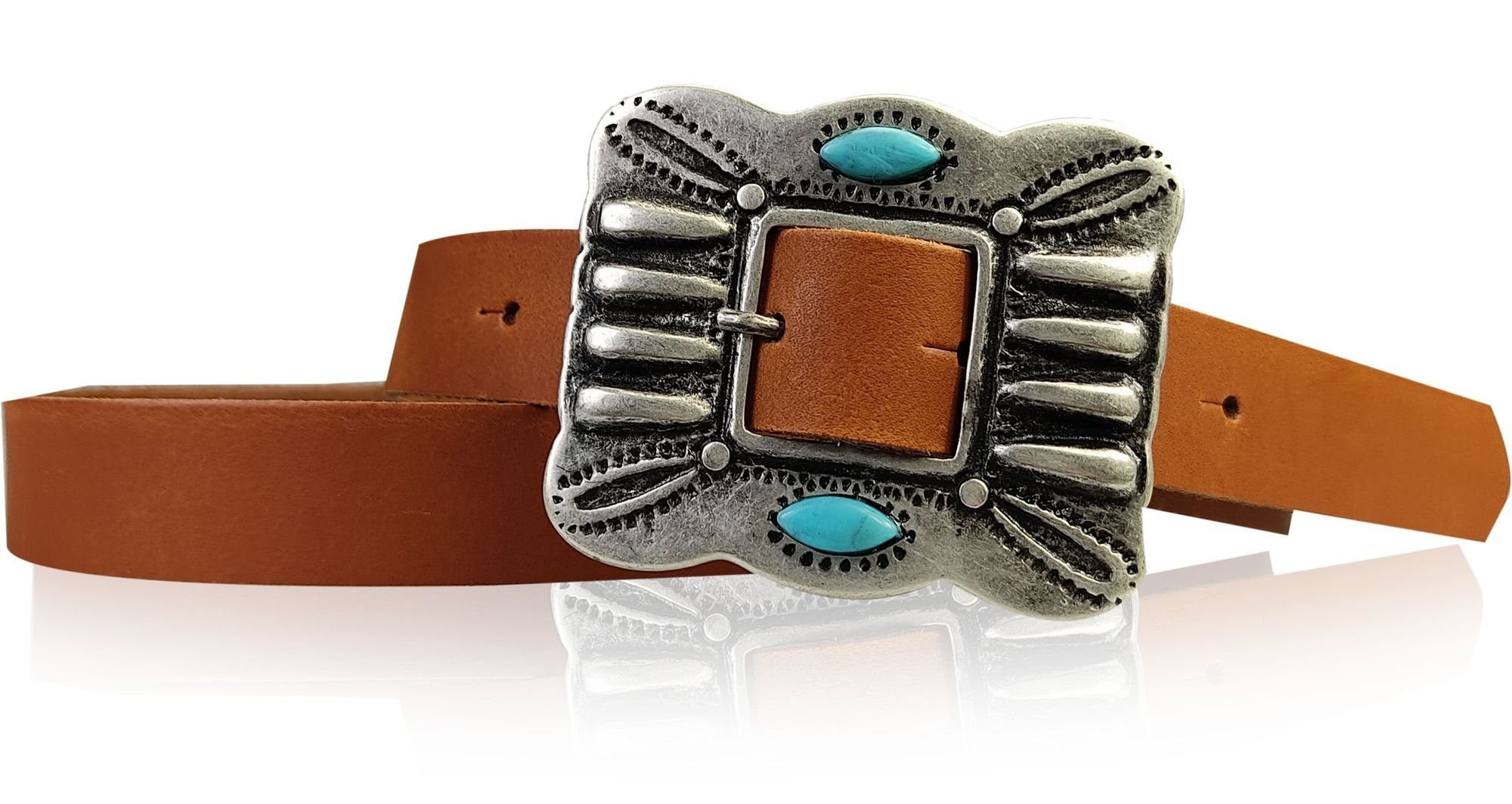 Besondere Merkmale | Damengürtel 2 cm, große Ethno Schnalle mit türkisen Steinen |