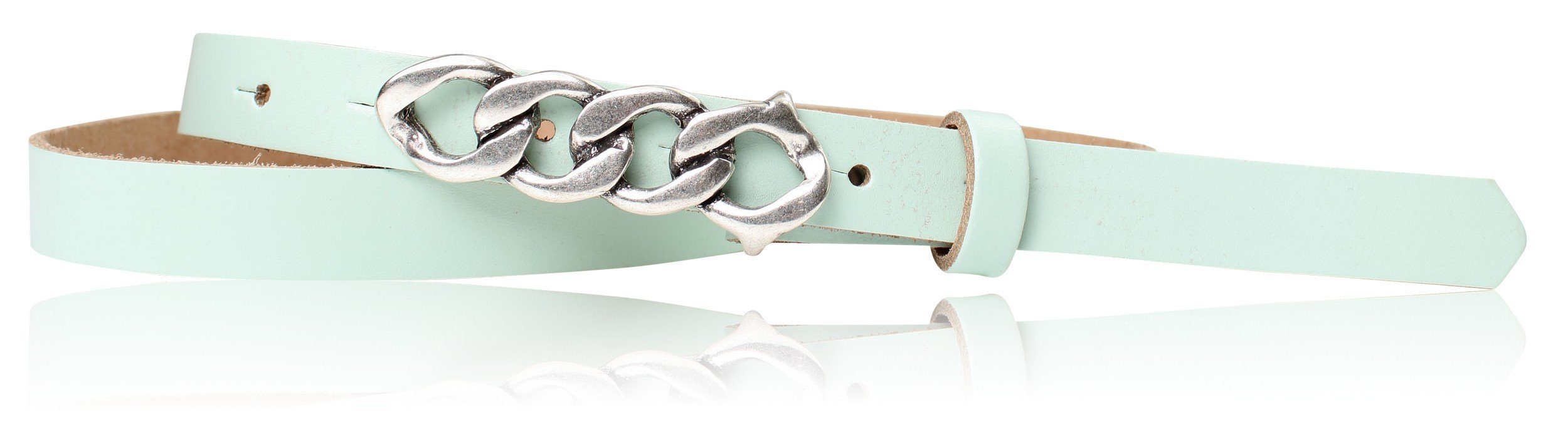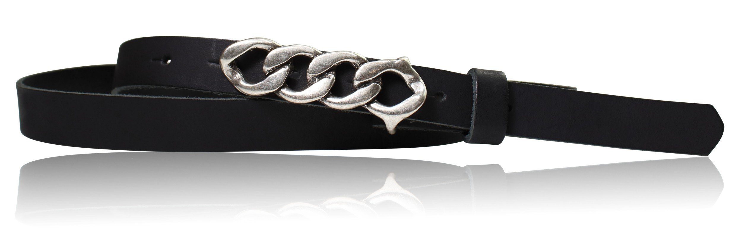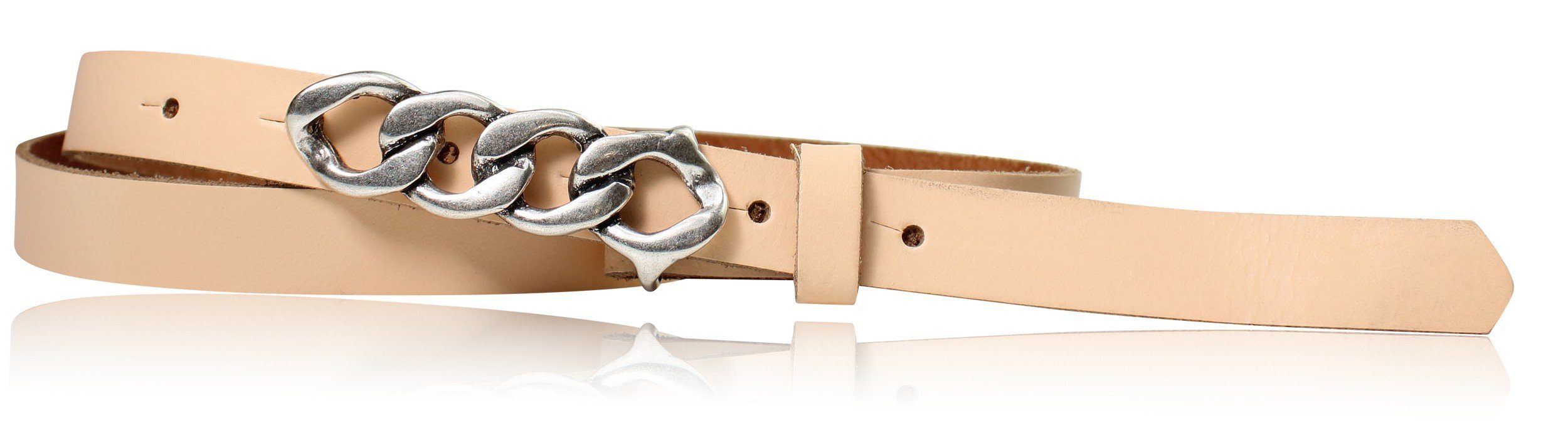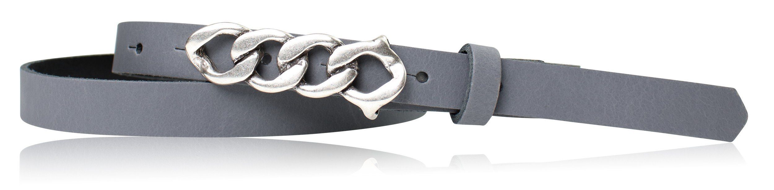 Besondere Merkmale | schmaler Damengürtel 2 cm, Schnalle im Kettendesign silber |