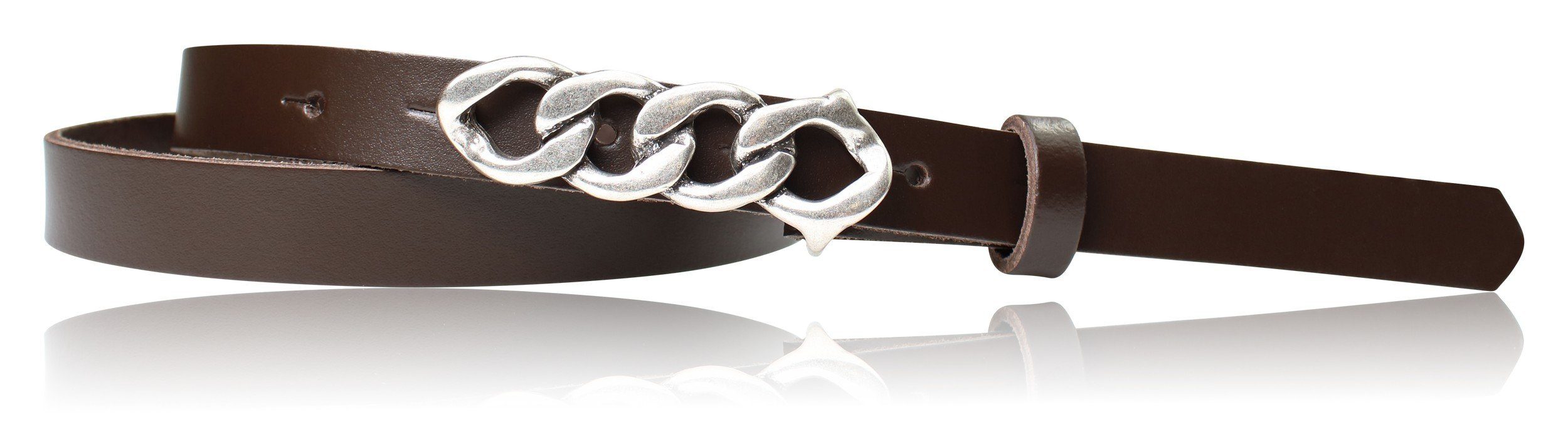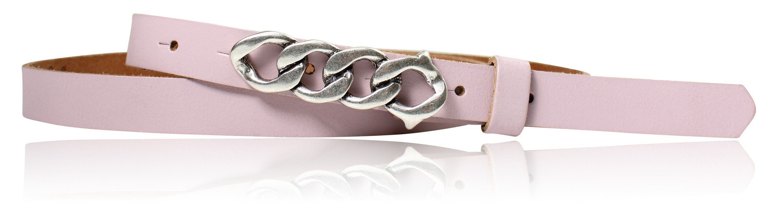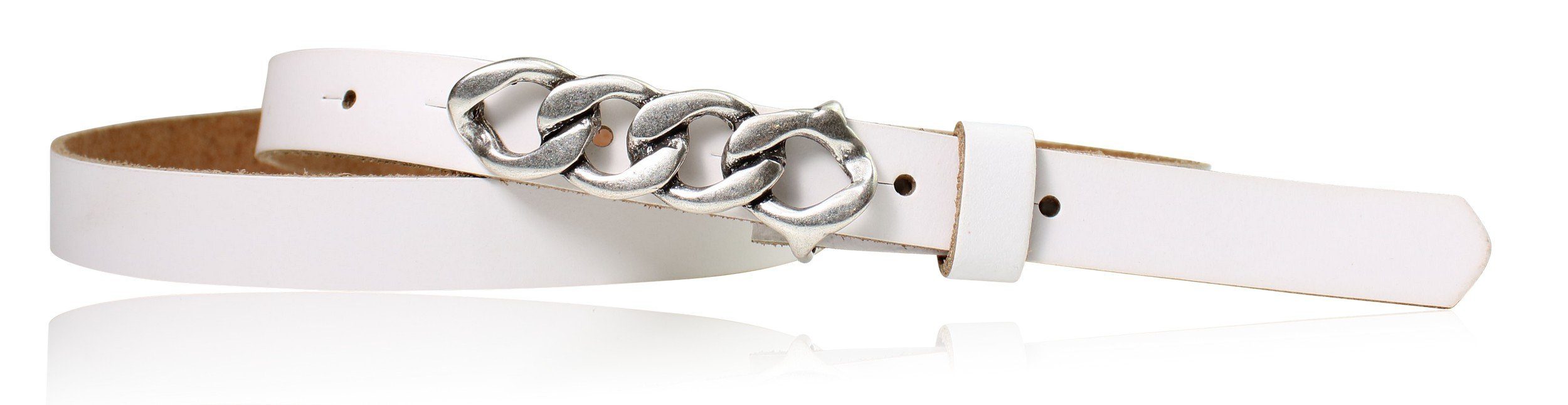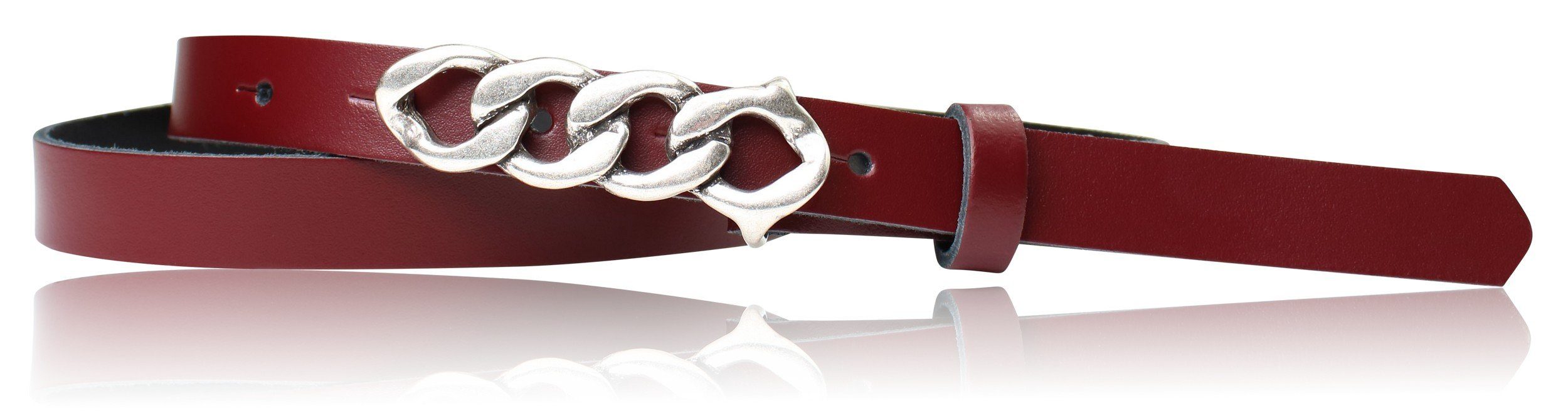 Besondere Merkmale | schmaler Damengürtel 2 cm, Schnalle im Kettendesign silber |