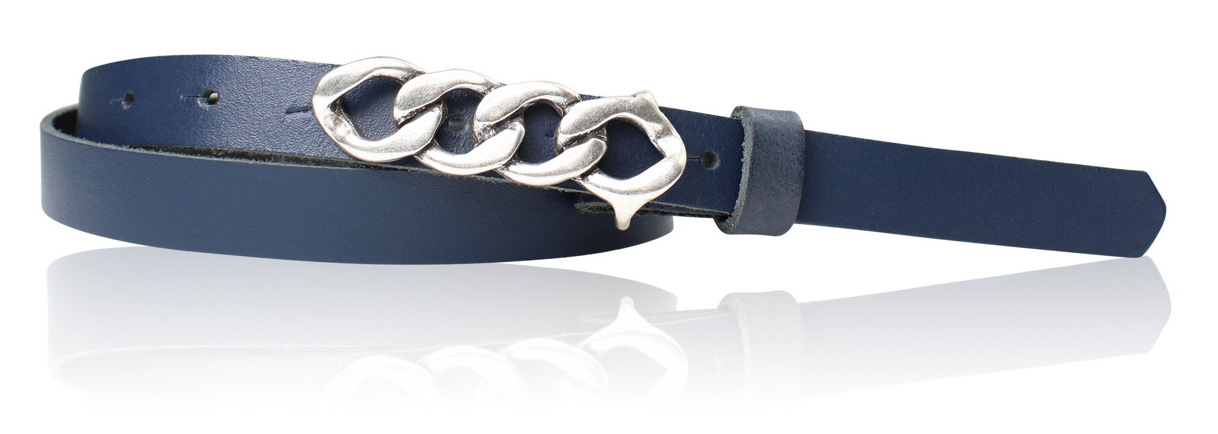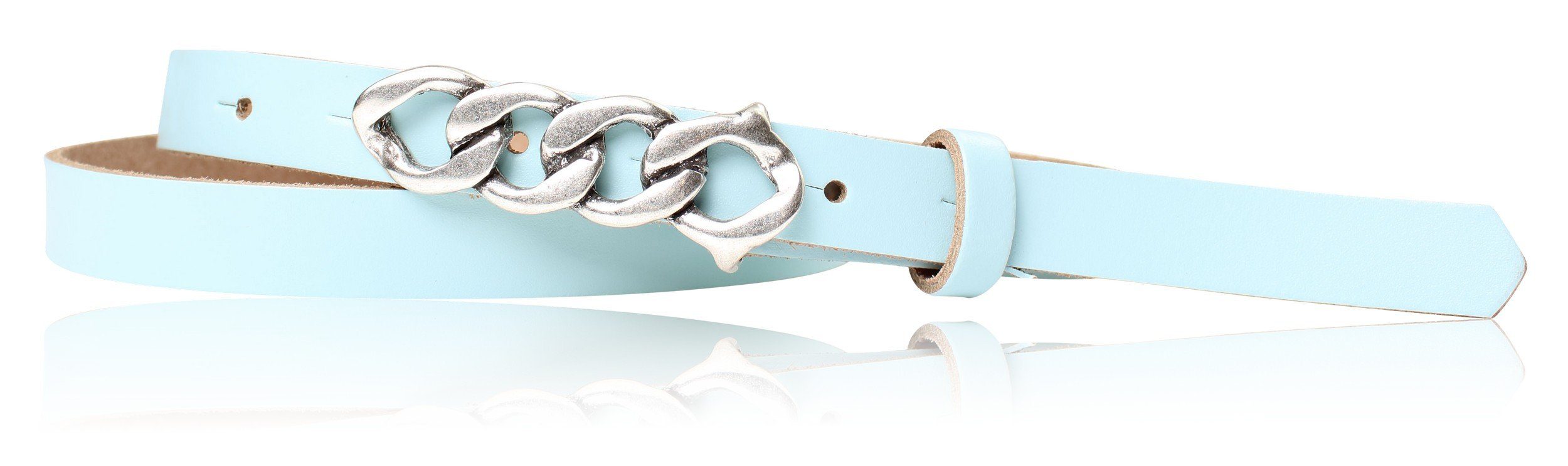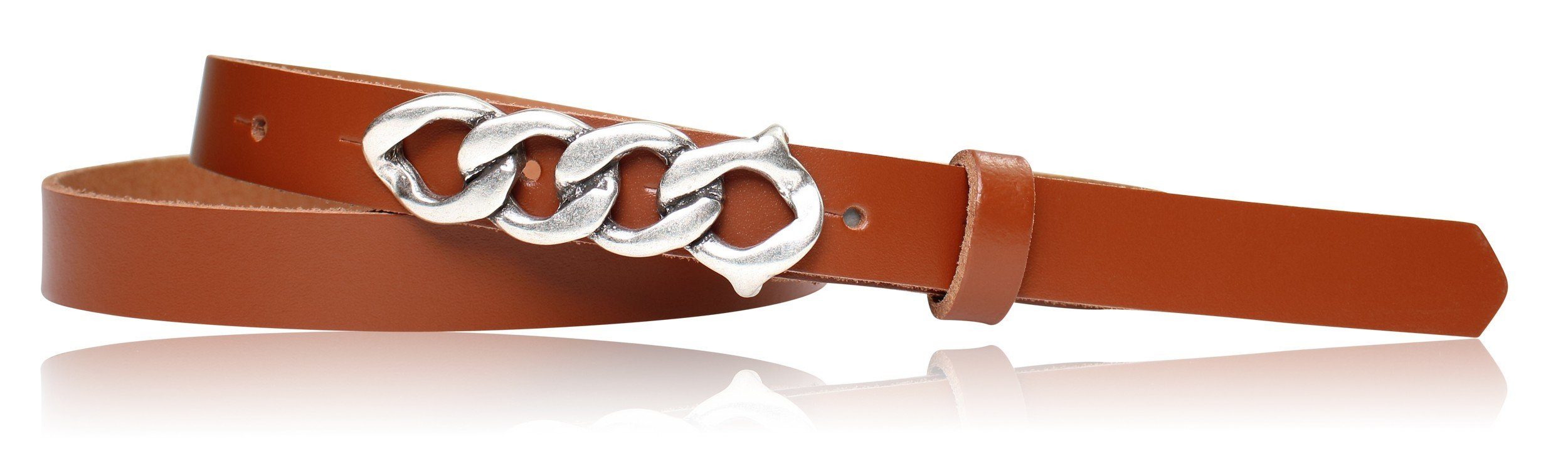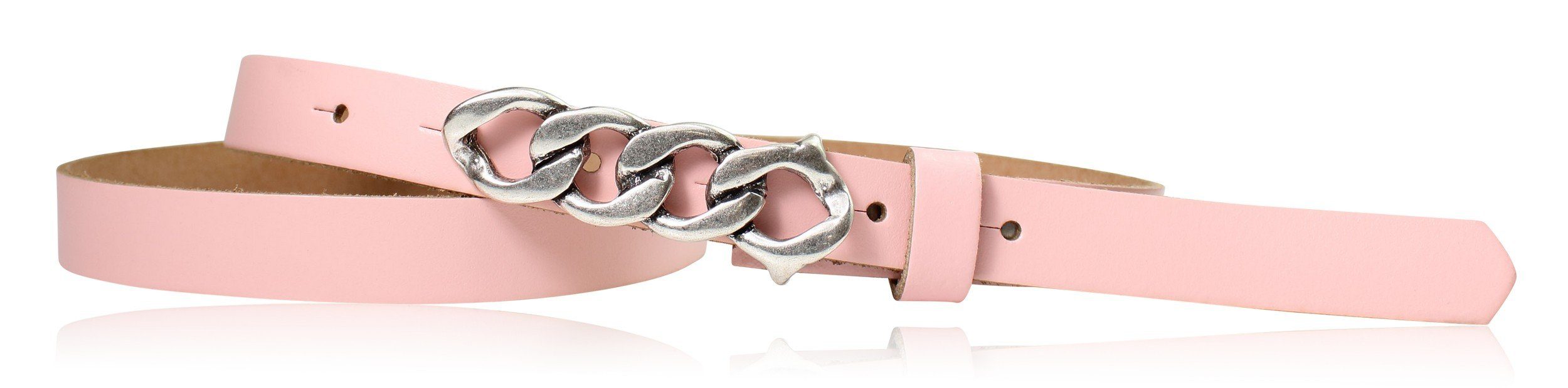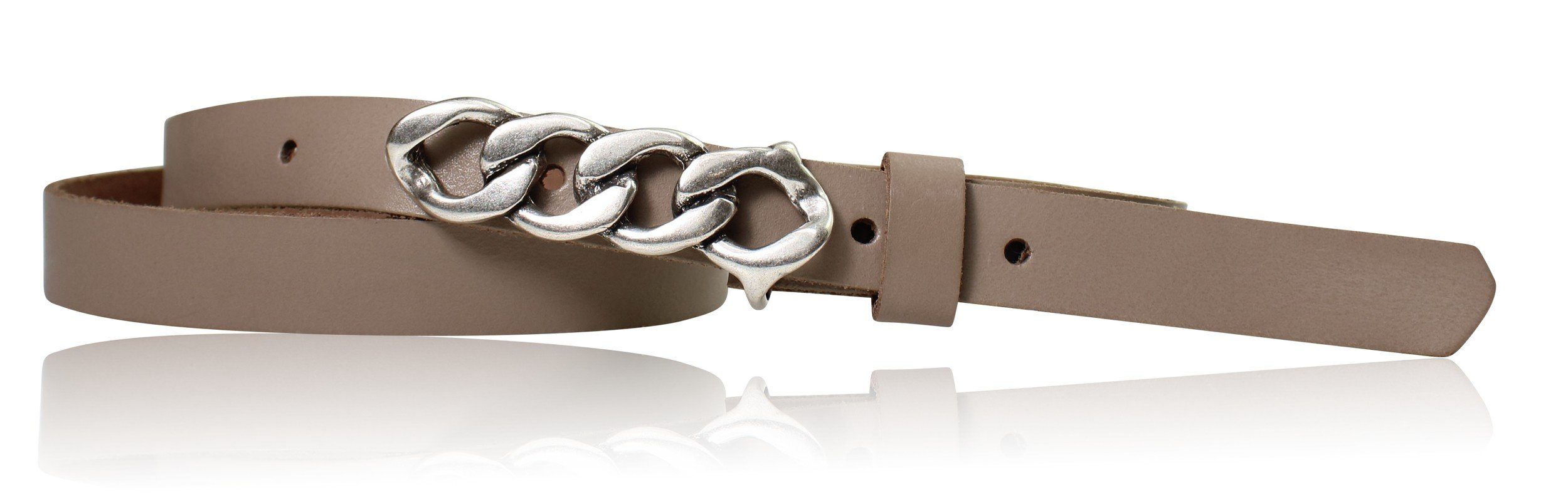 Besondere Merkmale | schmaler Damengürtel 2 cm, Schnalle im Kettendesign silber |