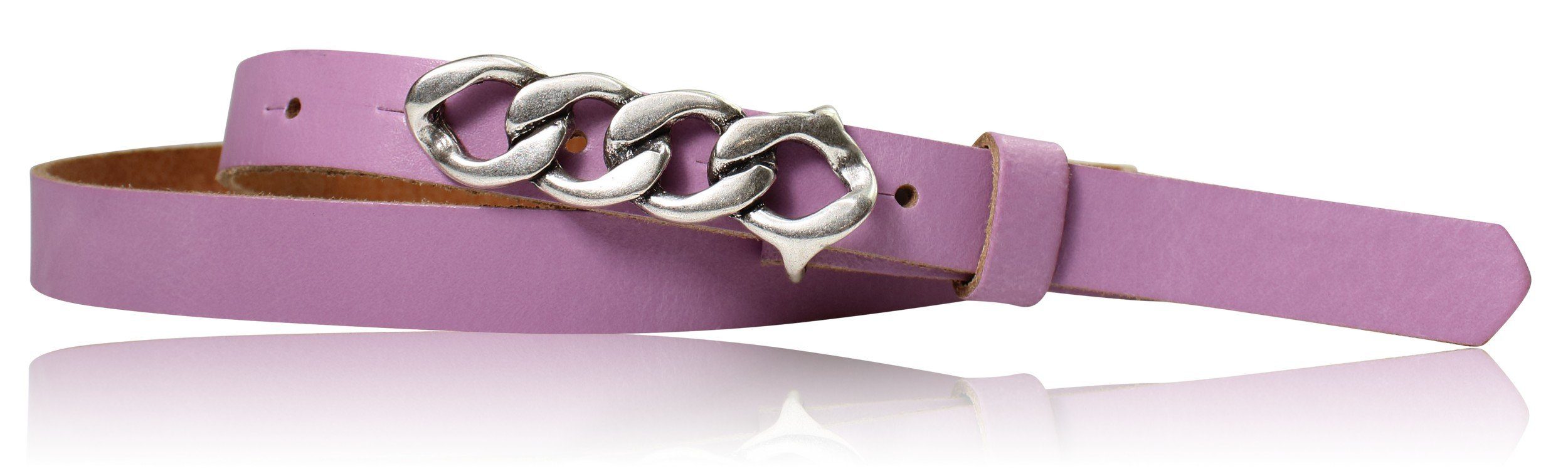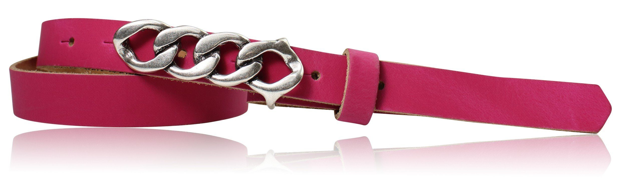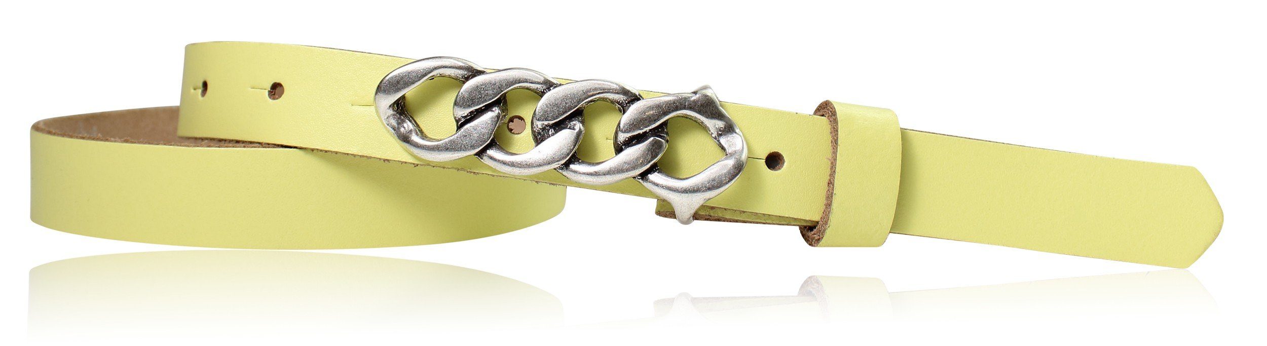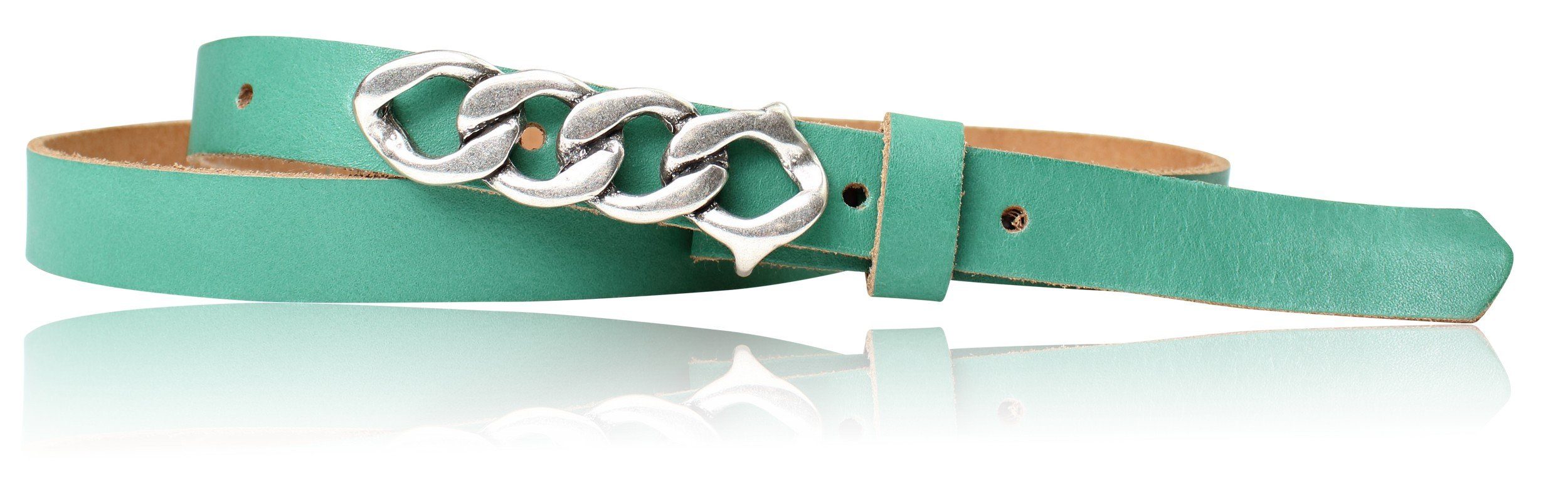 Besondere Merkmale | schmaler Damengürtel 2 cm, Schnalle im Kettendesign silber |