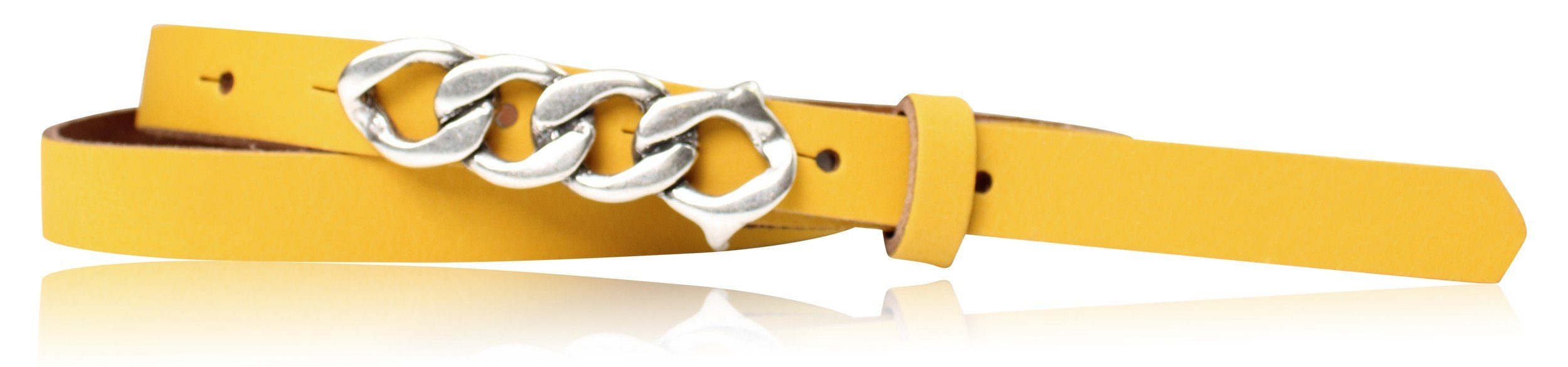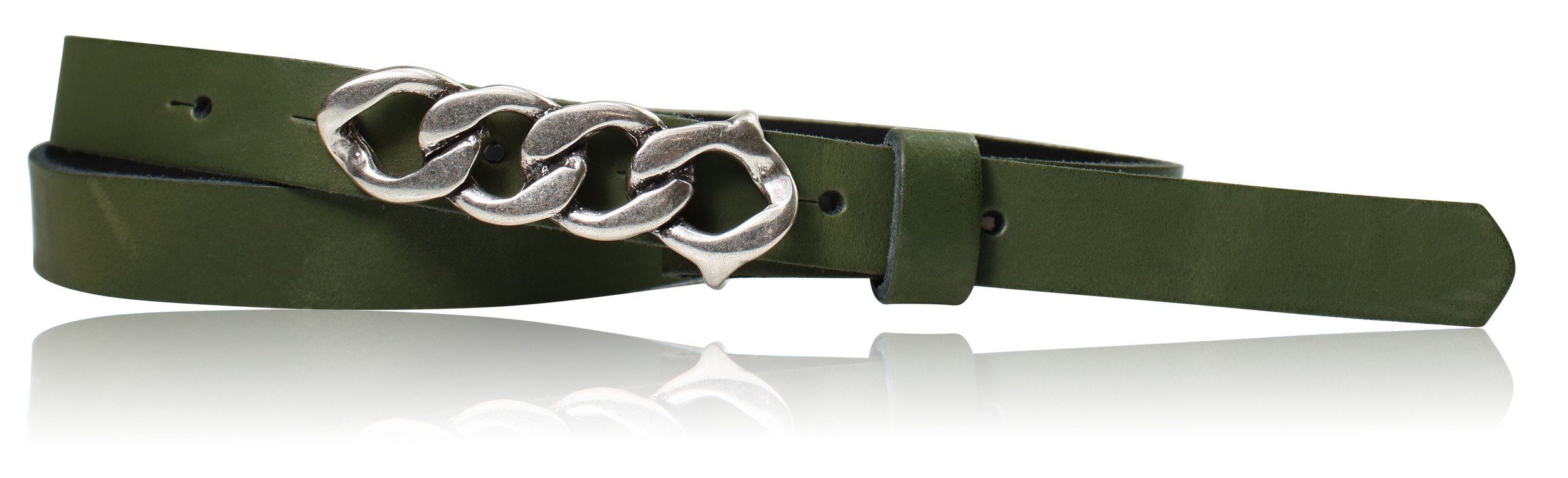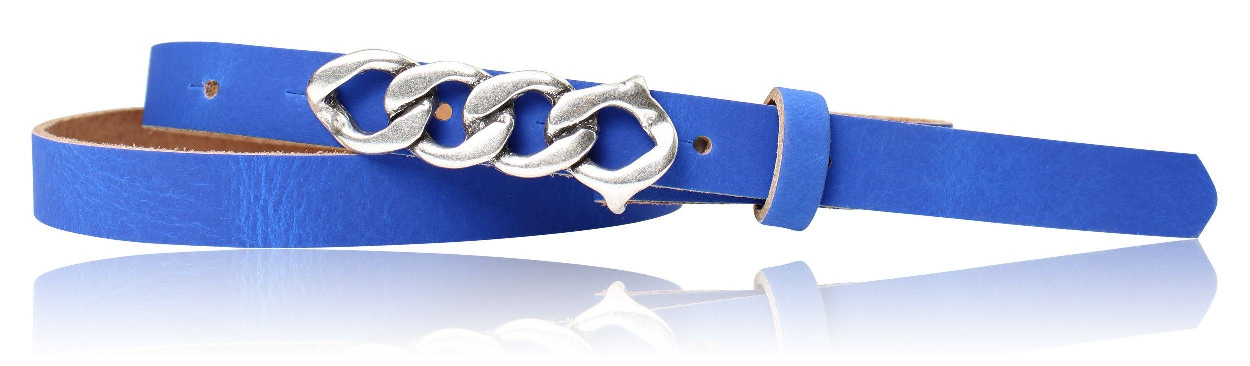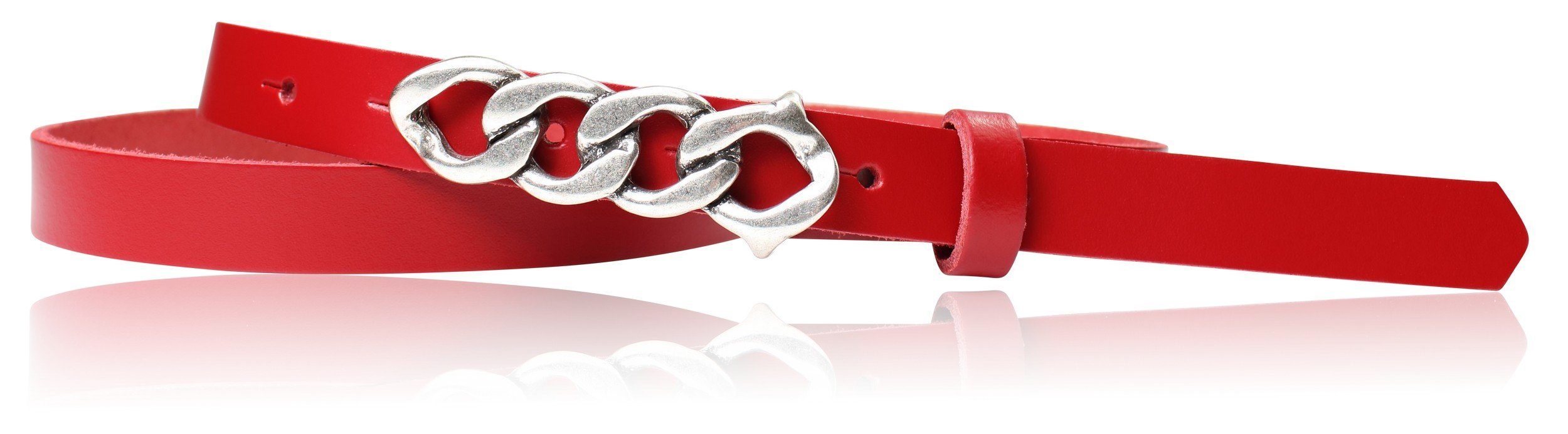 Besondere Merkmale | schmaler Damengürtel 2 cm, Schnalle im Kettendesign silber |