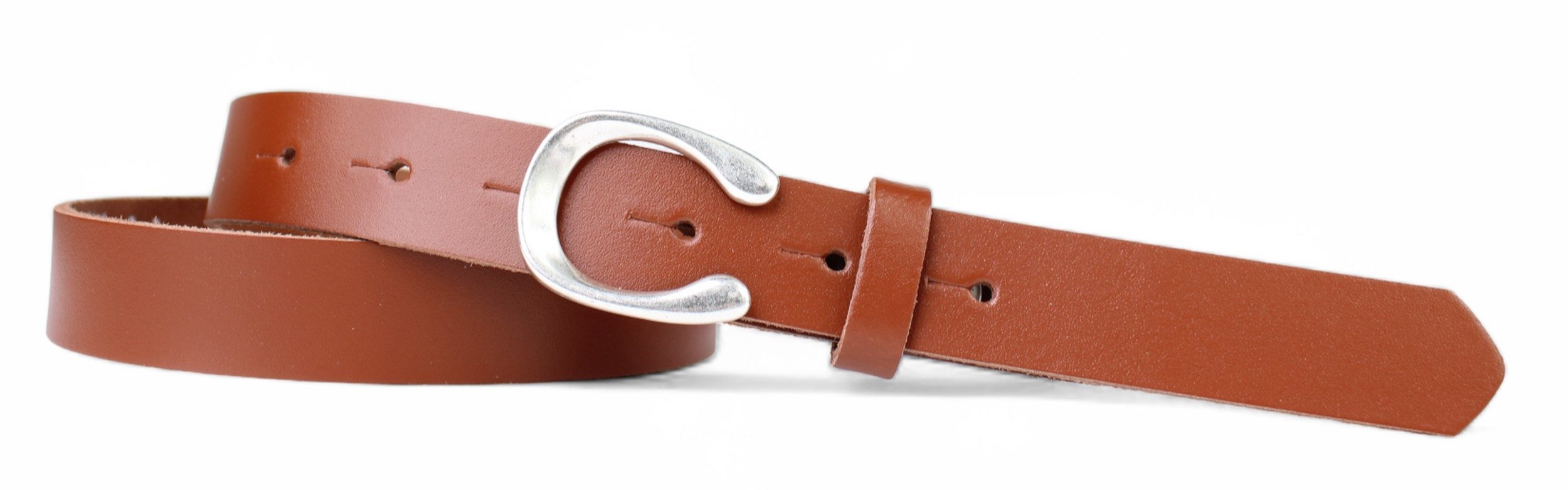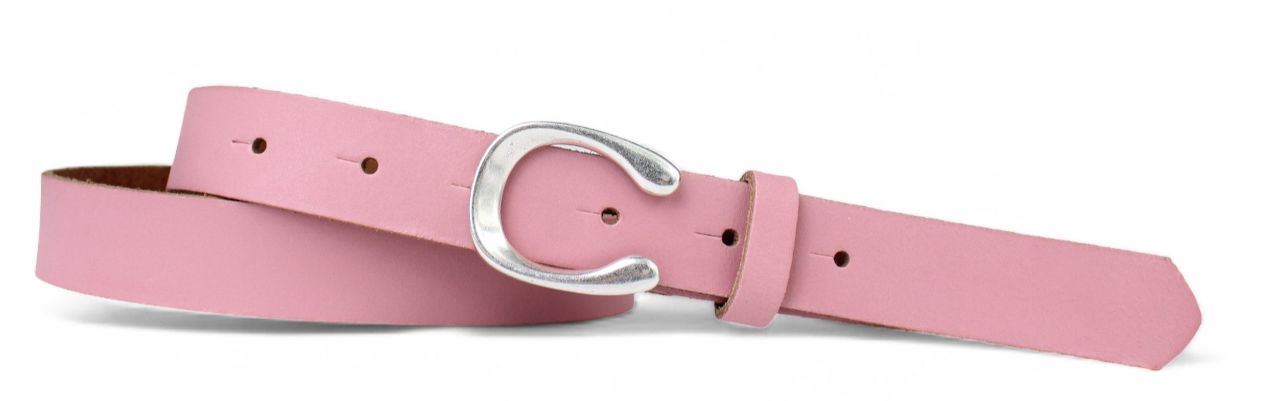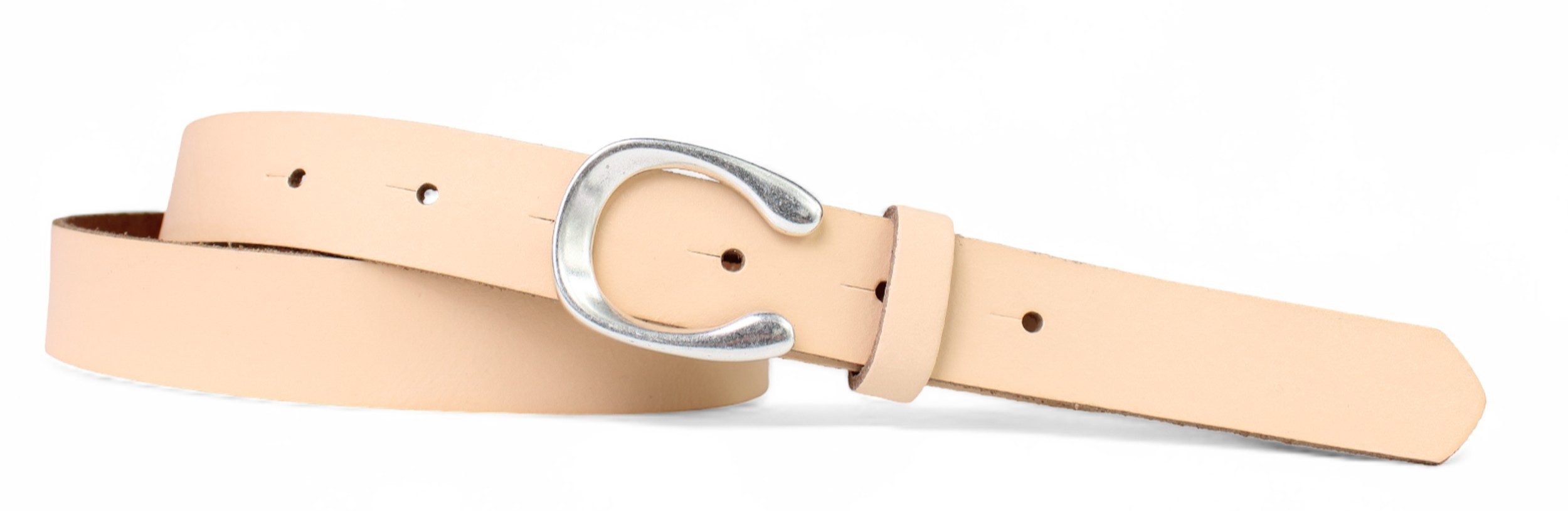 Damengürtel mit mattsilberner Gürtelschnalle in Hufeisenform und einem Gürtelriemen aus echtem Leder. Ein zeitloser und vielseitig tragbarer Gürtel in klassischen und modischen Farben zur Auswahl.