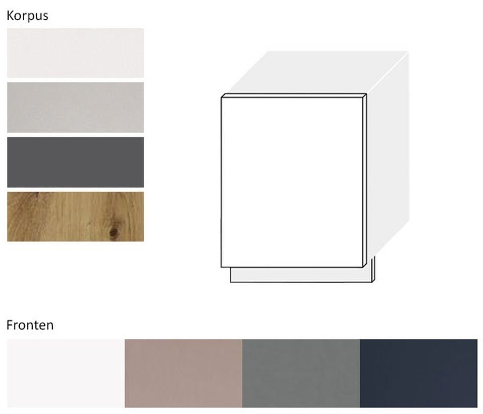 Farbe | Sockel weiß matt / Front dust grey matt |