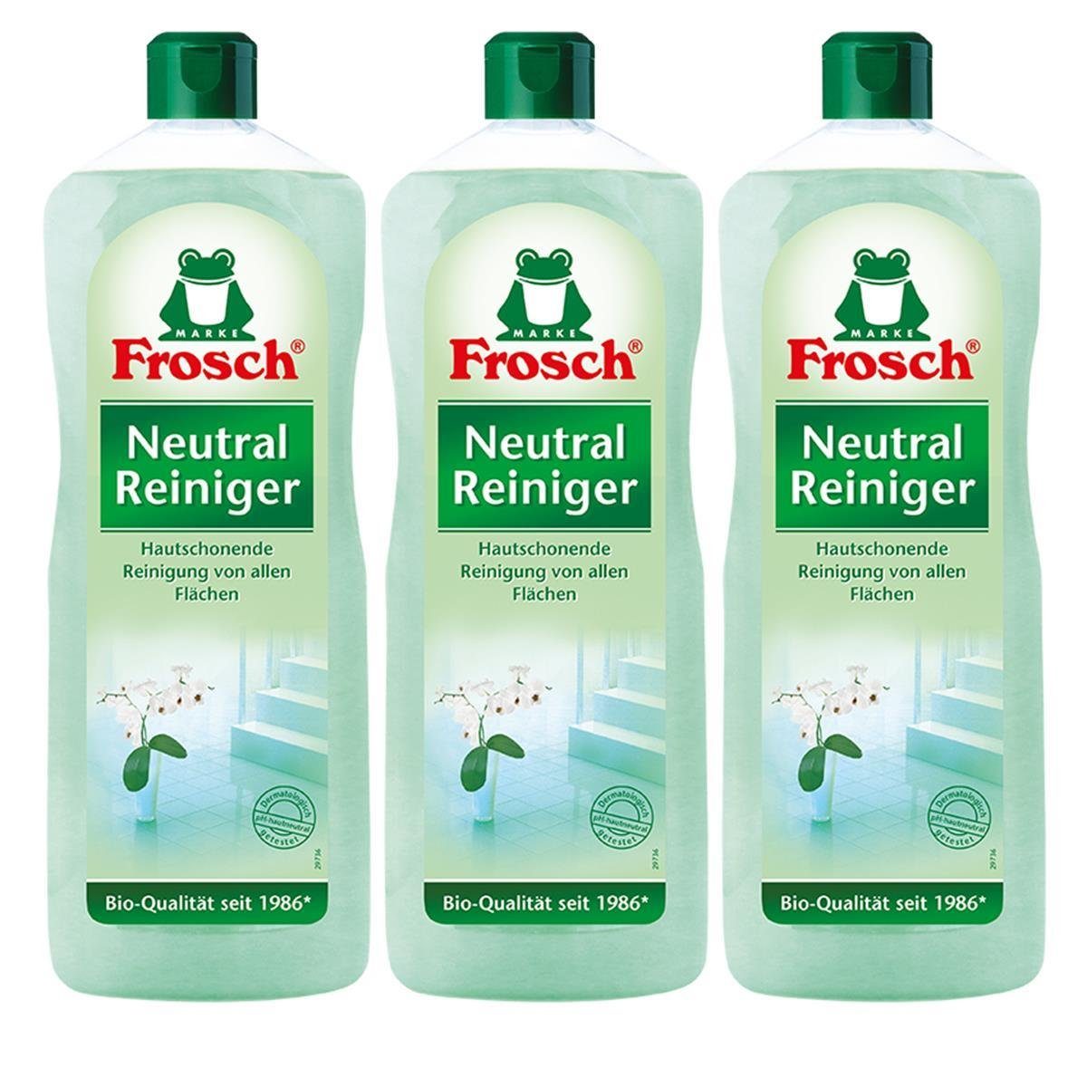 Der Frosch Neutral Reiniger - vielseitig anwendbar in Ihrem ZuhauseDer Frosch Neutral Reiniger kommt in der praktischen Flasche mit einem Inhalt von einem Liter direkt zu Ihnen nach Hause. Die Rezeptur besteht aus 100% pflanzlich basierten Wirkstoffen und die Materialien werden auch bei häufiger Verwendung geschont. Die pH-hautneutrale Rezeptur macht den Neutralreiniger zudem ideal für die Handwäsche. Die Menge von zwei Esslöffeln ist für fünf Liter Wasser vollkommen ausreichend. Die sparsame Anwendung sorgt dafür, dass Sie für viele Wochen für Sauberkeit in Ihrem Zuhause sorgen können. Bei besonders hartnäckigen Verschmutzungen können Sie den Frosch Neutral Reiniger auch unverdünnt auftragen und für einige Minuten einwirken lassen.