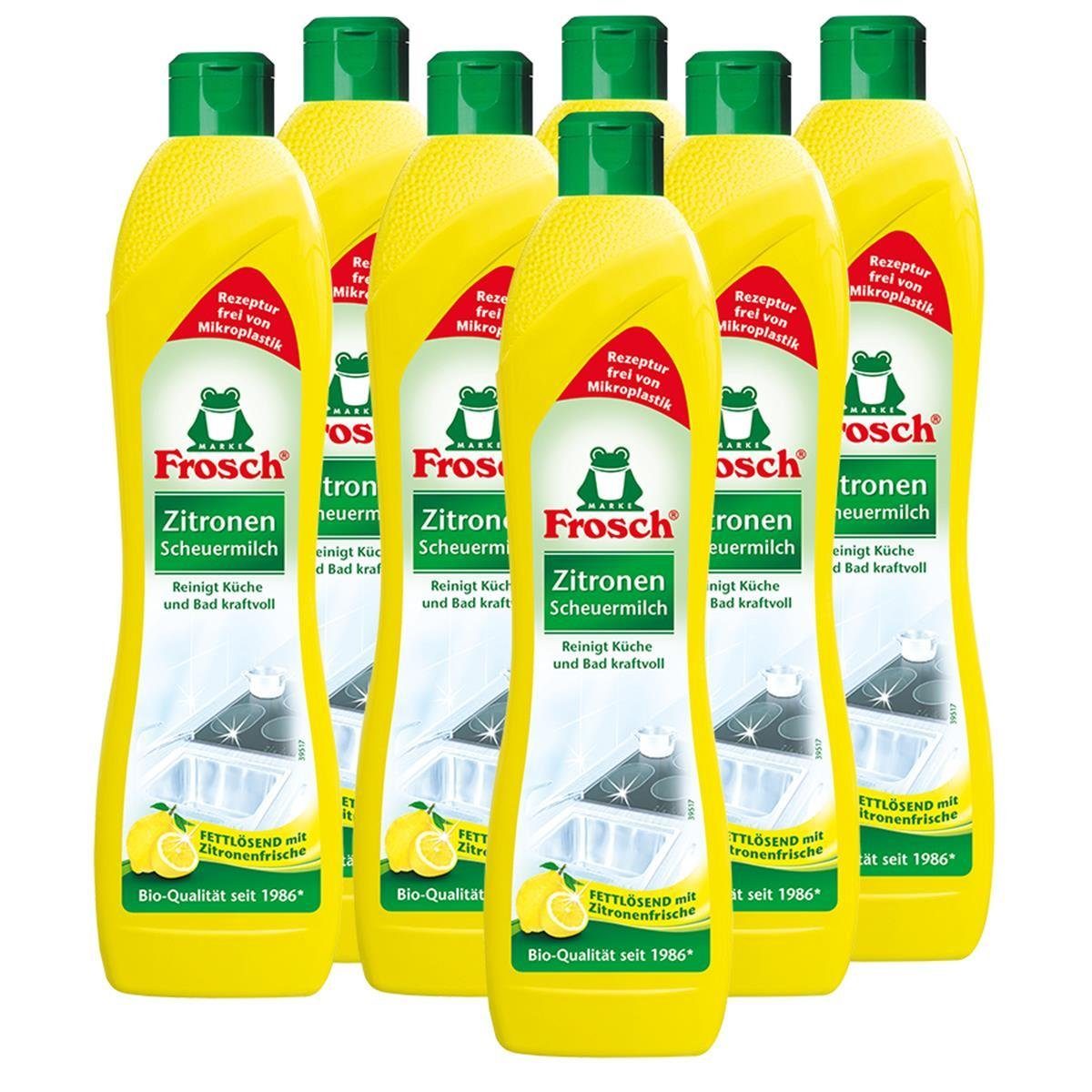 Im Lieferumfang enthalten: Frosch Zitronen Scheuermilch 500 ml 7er PackInhaltsstoffe | <5% nichtionische Tenside, Konservierungsmittel (Phenoxyethanol), Duftstoffe, Marmormehl, Citrusextrakt. |