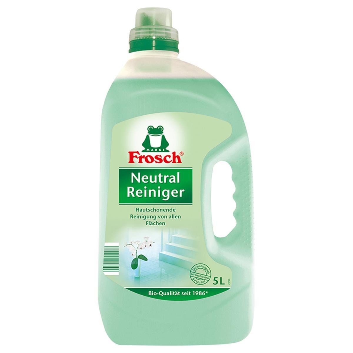 Der Frosch Neutral Reiniger - vielseitig anwendbar in Ihrem ZuhauseDer Frosch Neutral Reiniger kommt in der praktischen Flasche mit einem Inhalt von einem Liter direkt zu Ihnen nach Hause. Die Rezeptur besteht aus 100% pflanzlich basierten Wirkstoffen und die Materialien werden auch bei häufiger Verwendung geschont. Die pH-hautneutrale Rezeptur macht den Neutralreiniger zudem ideal für die Handwäsche. Die Menge von zwei Esslöffeln ist für fünf Liter Wasser vollkommen ausreichend. Die sparsame Anwendung in Kombination mit den ergiebigen 5 Litern Inhalt;sorgt dafür, dass Sie für viele Wochen oder sogar Monate;für Sauberkeit in Ihrem Zuhause sorgen können. Bei besonders hartnäckigen Verschmutzungen können Sie den Frosch Neutral Reiniger auch unverdünnt auftragen und für einige Minuten einwirken lassen.