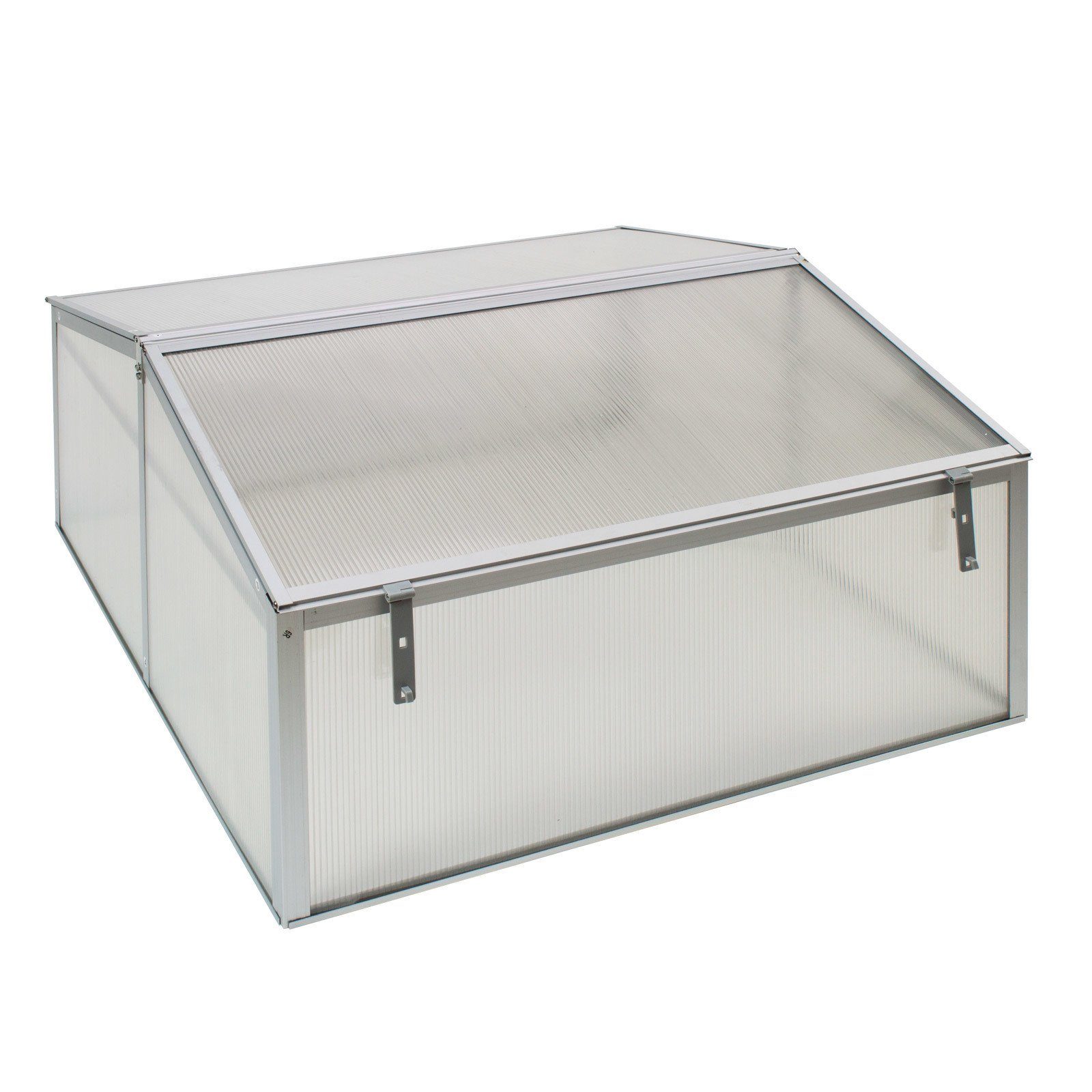 Stabiles und hochwertiges kleines Gewächshaus - das DEMA Frühbeet mit Aluprofil FB1000! Ideal für den kleineren Garten, super auch auf jedem Balkon. Hochwertige Aluständer, welche miteinander verschraubt werden, bilden ein solides und langlebiges Grundgestell. Die komplette Gebäudehülle ist aus speziellen Hohlkammerplatten hergestellt. Dies sichert, neben einer sehr guten Wärmedämmung, auch ein überdurchschnittlich gutes Wachstum Ihrer Pflanzen, da sich die Sonnenstrahlen durch den Aufbau brechen und so keine schädliche Punktbestrahlung entstehen kann. Ausstattung Material: Alugestell / Hohlkammerplatten (Polycarbonat) Hoher UV Schutz Gute Wärmedämmung Keine Punktbeleuchtung, sondern Brechung der Sonnenstrahlen - dadurch ideales Wachstum Beidseitig ausklappbare Dachflächen Bodenverankerung durch das gut verschraubte Alugestell möglich (nicht im Lieferumfang enthalten) Verwendung mit Hochbeet 47044 möglich Ausführliche Bedienungsanleitung Lieferung erfolgt komplett zerlegt Technische Daten 4 mm Hohlkammerplatten für Wand und Dach Komplett-Außenmaße LxBxH: 100x100x48 cm Grund-Innenmaße ca. LxB: 98x98 cm Materialstärke: 1mm Gewicht: ca. 4 kg