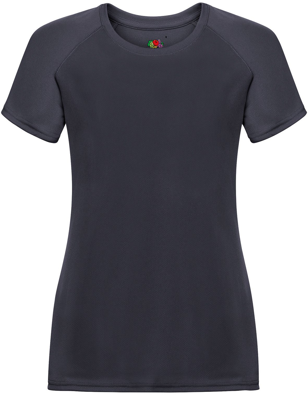 Feinstrukturiert für optimalen Feuchtigkeitstransport und für schnelle Trocknung, sportliche Raglanärmel mit sichtbaren Nähten, feminine Passform mit Seitennähten, eingedrucktes Nackenlabel für erhöhten Tragekomfort, gleichfarbiges Nackenband, 100% Polyester