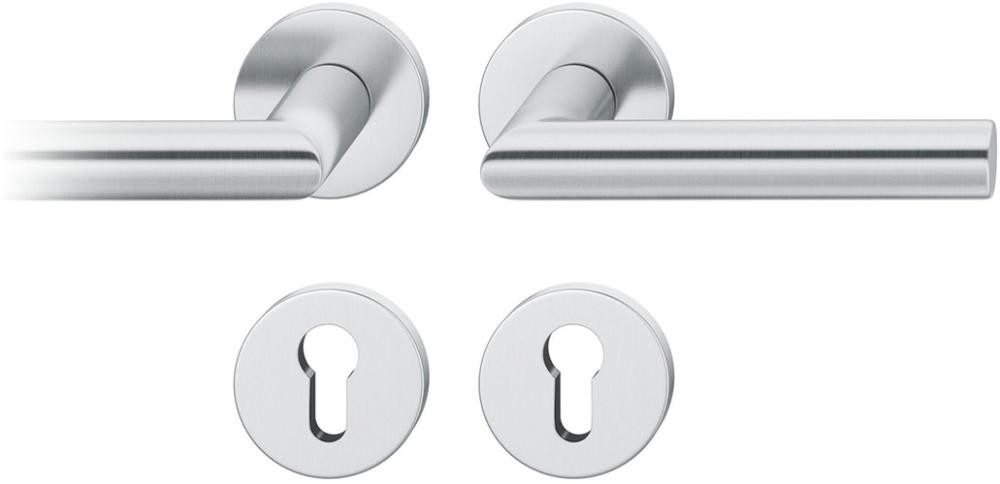 "Rosetten-Garnitur 12 1076• ASL®-Edelstahl-Drückergarnitur • DIN links und DIN rechts verwendbar • Wechselgarnitur mit Knopf 0829 max. 45°"